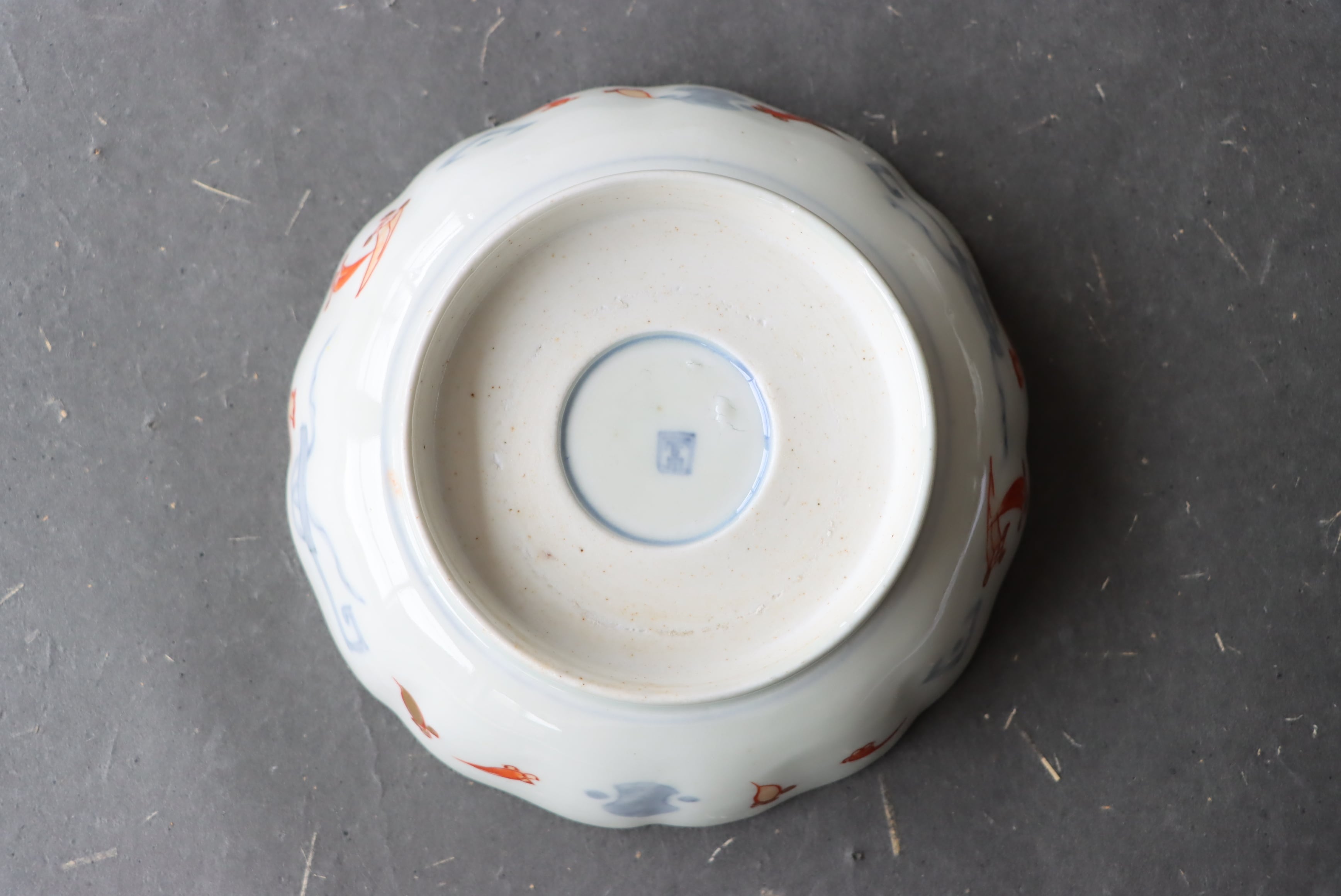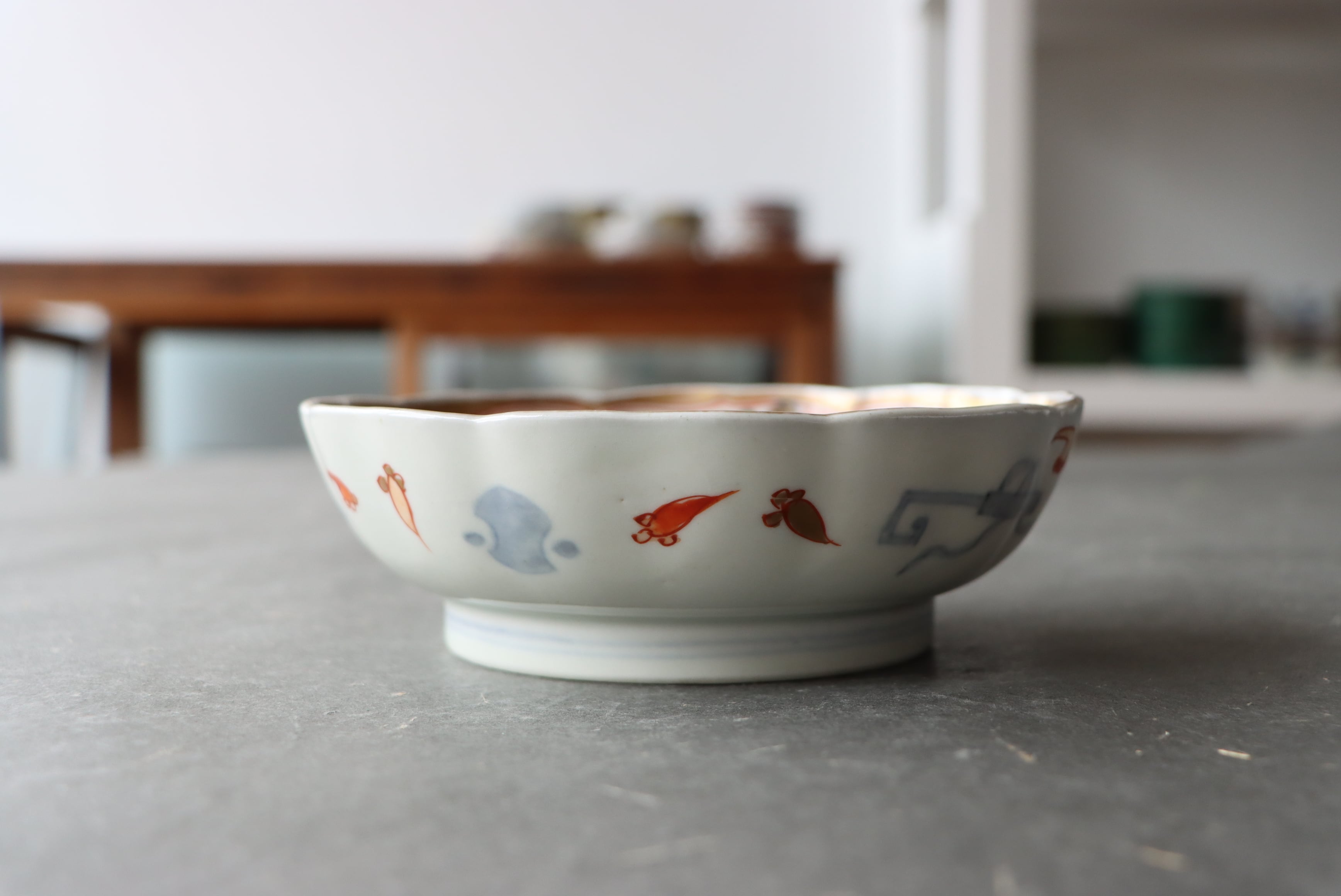 伊万里焼 色絵 鶴亀花鳥文 膾皿 通りもの/Imari "Namasu" bowl