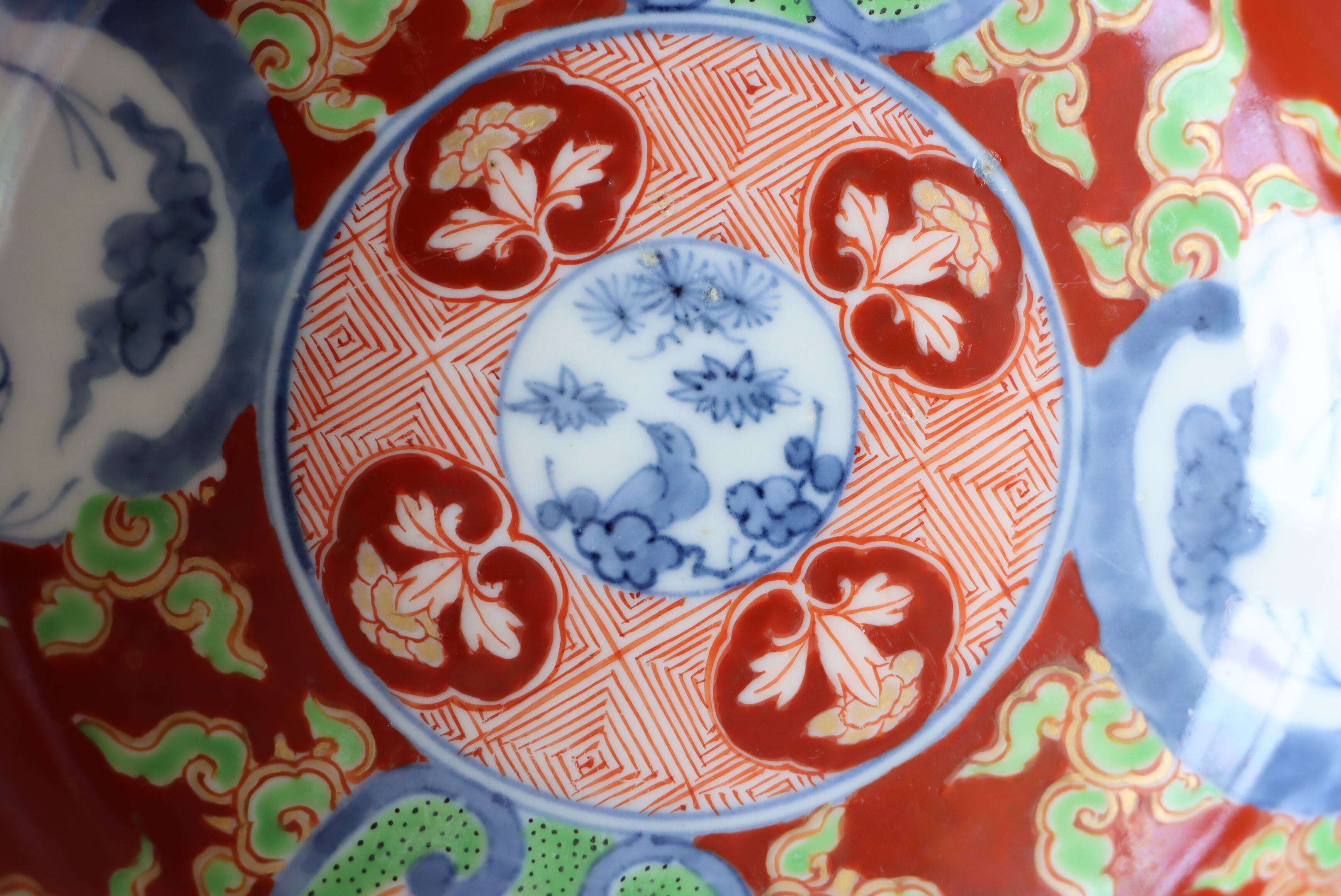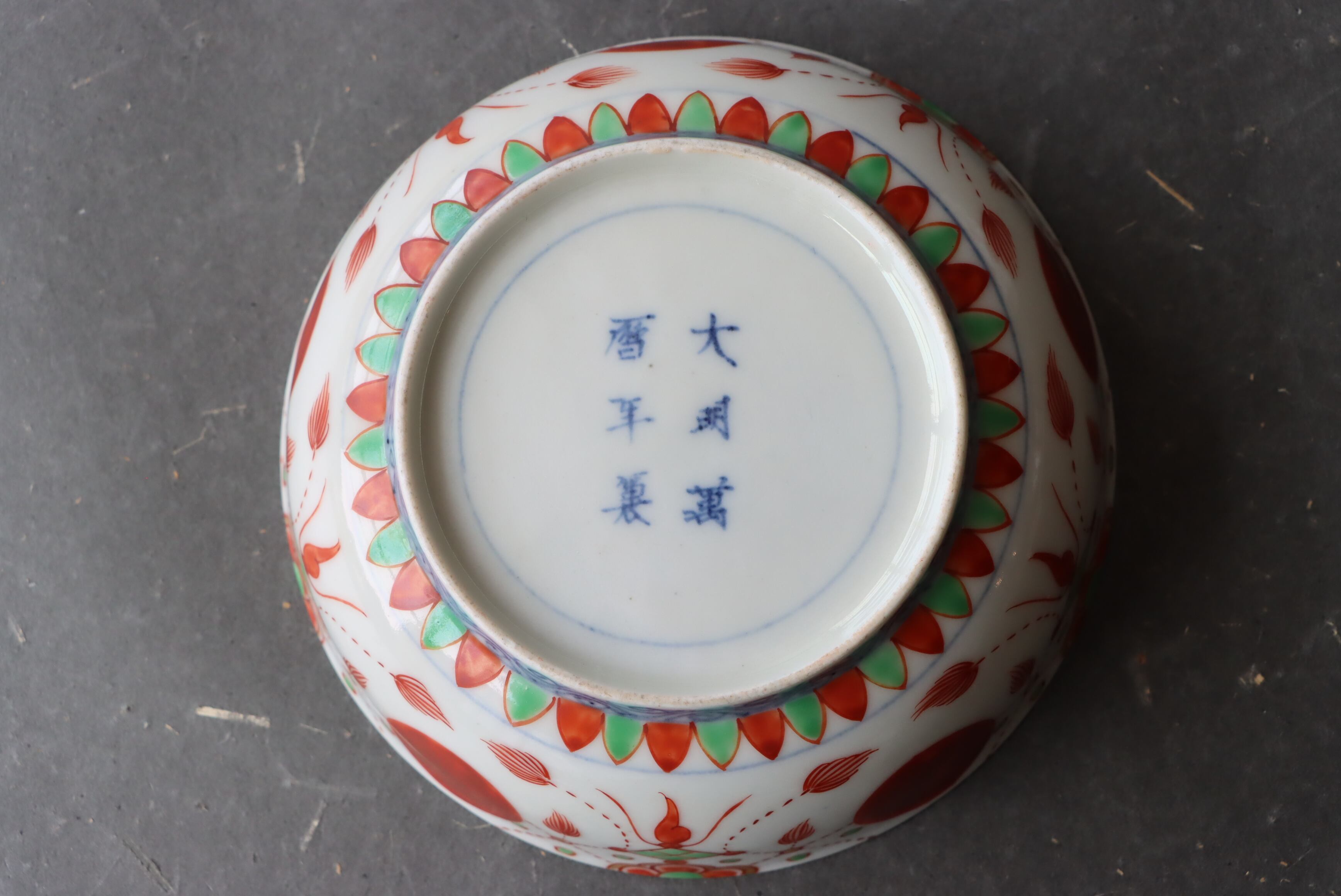 焼成時に窯の中でできる鉄分、くっつき、かまきず、ピンホール、経年による釉薬の薄れがございます。また、一枚一枚手描き、手作りですので器のサイズ(ミリ)、色味、描かれている文様の大きさなど個体差があり、ひとつとして同じものはございません。そういった時代感、個性をご理解いただき、楽しんでくだされば幸いです。電子レンジや食器洗い乾燥機のご使用はお控えください。