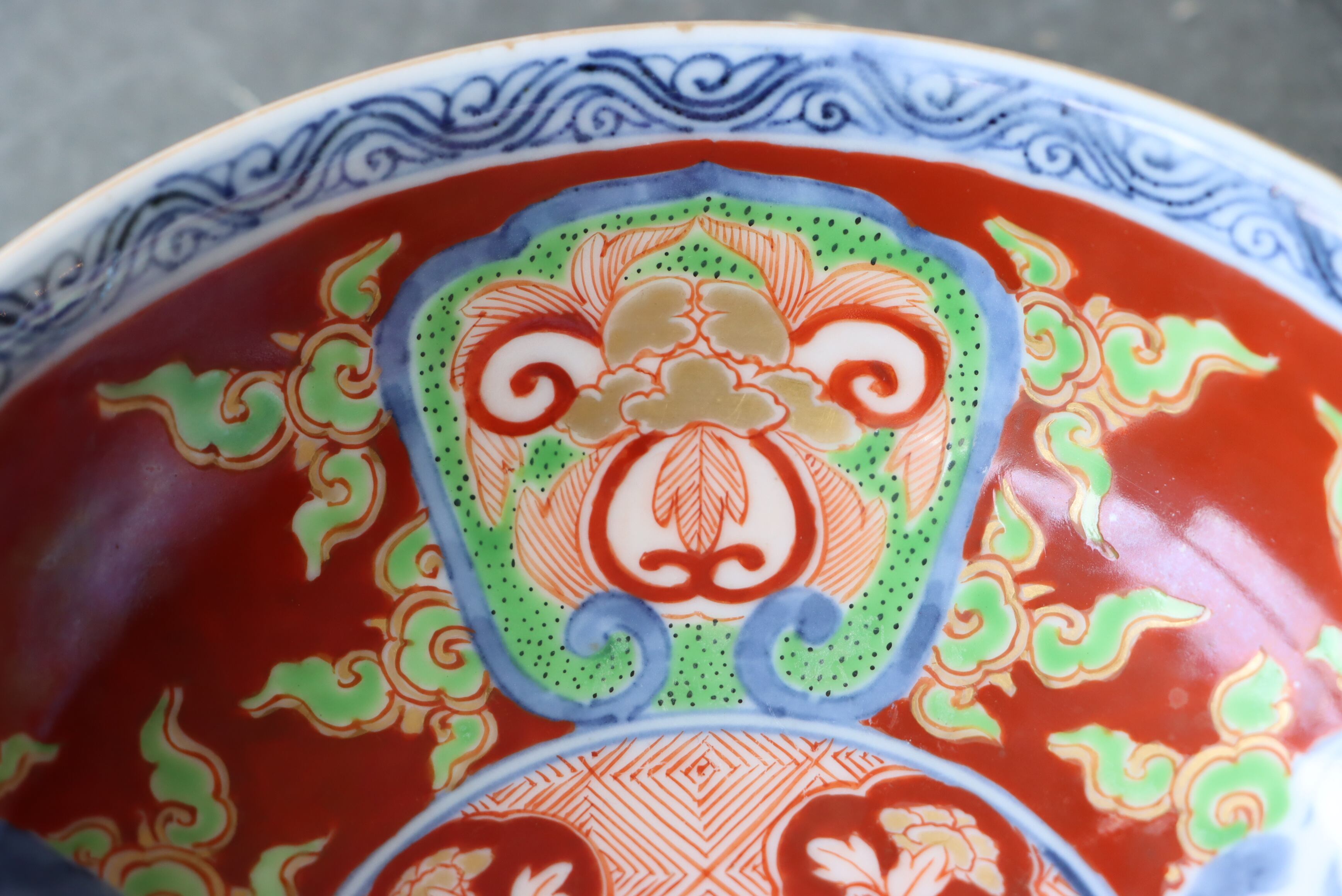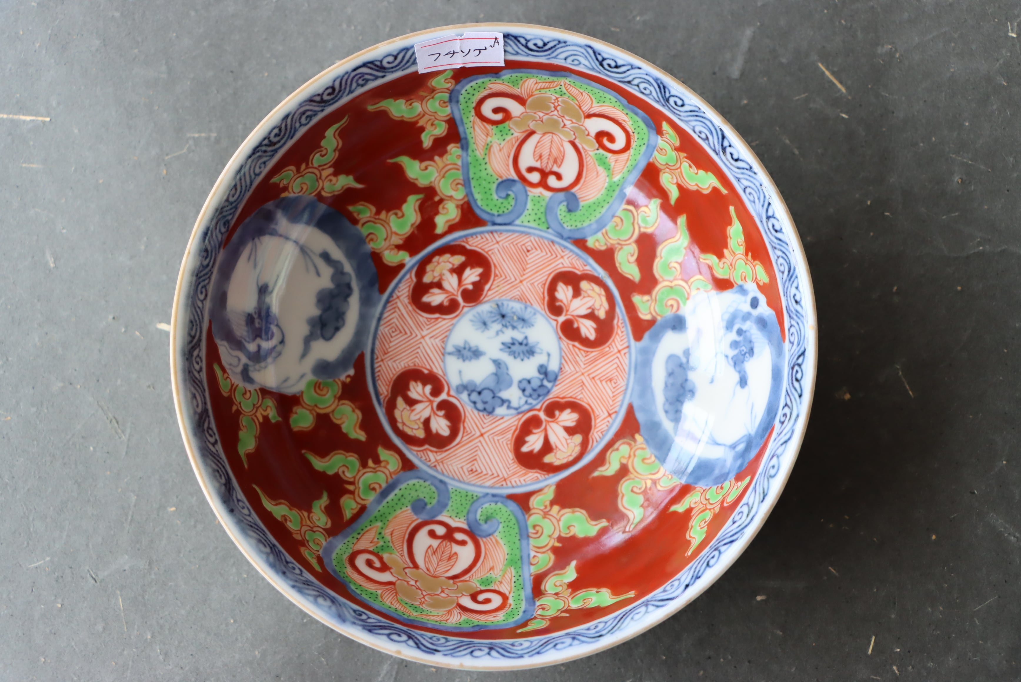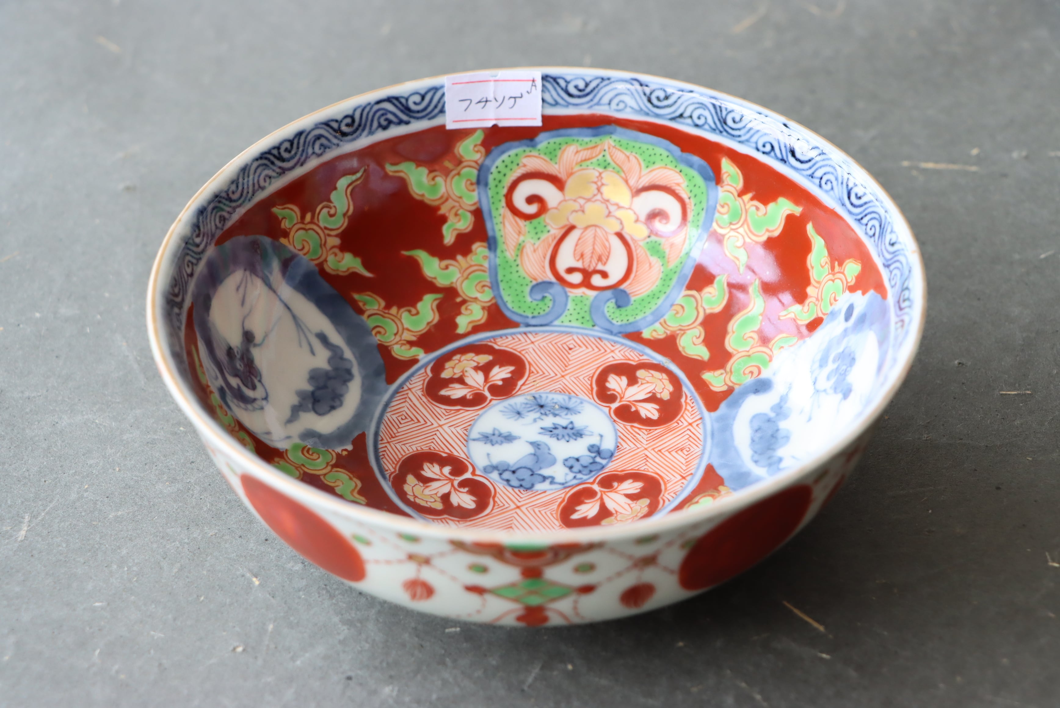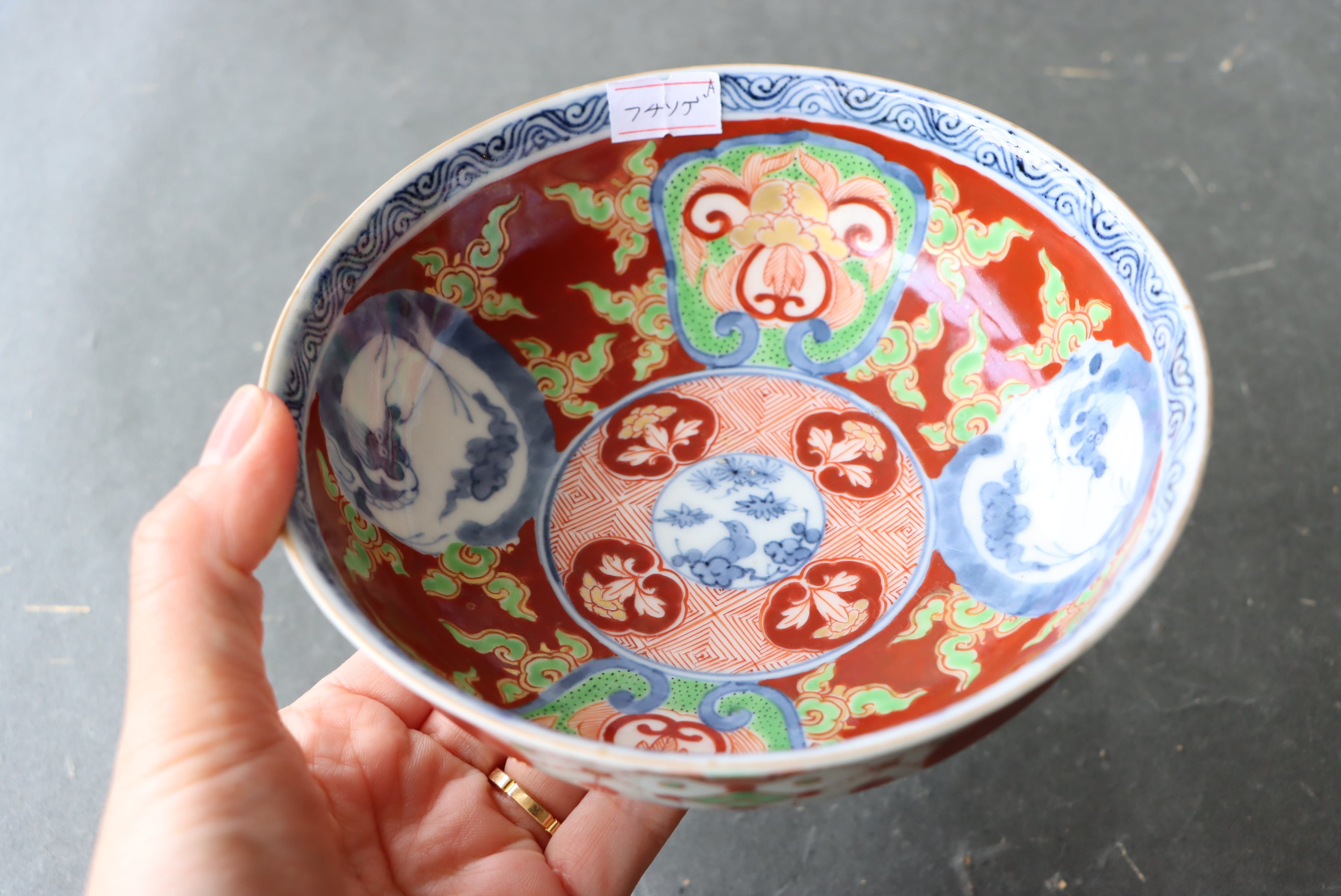 フチソゲ 伊万里焼 色絵 赤玉瓔珞龍文 膾皿 A アウトレット