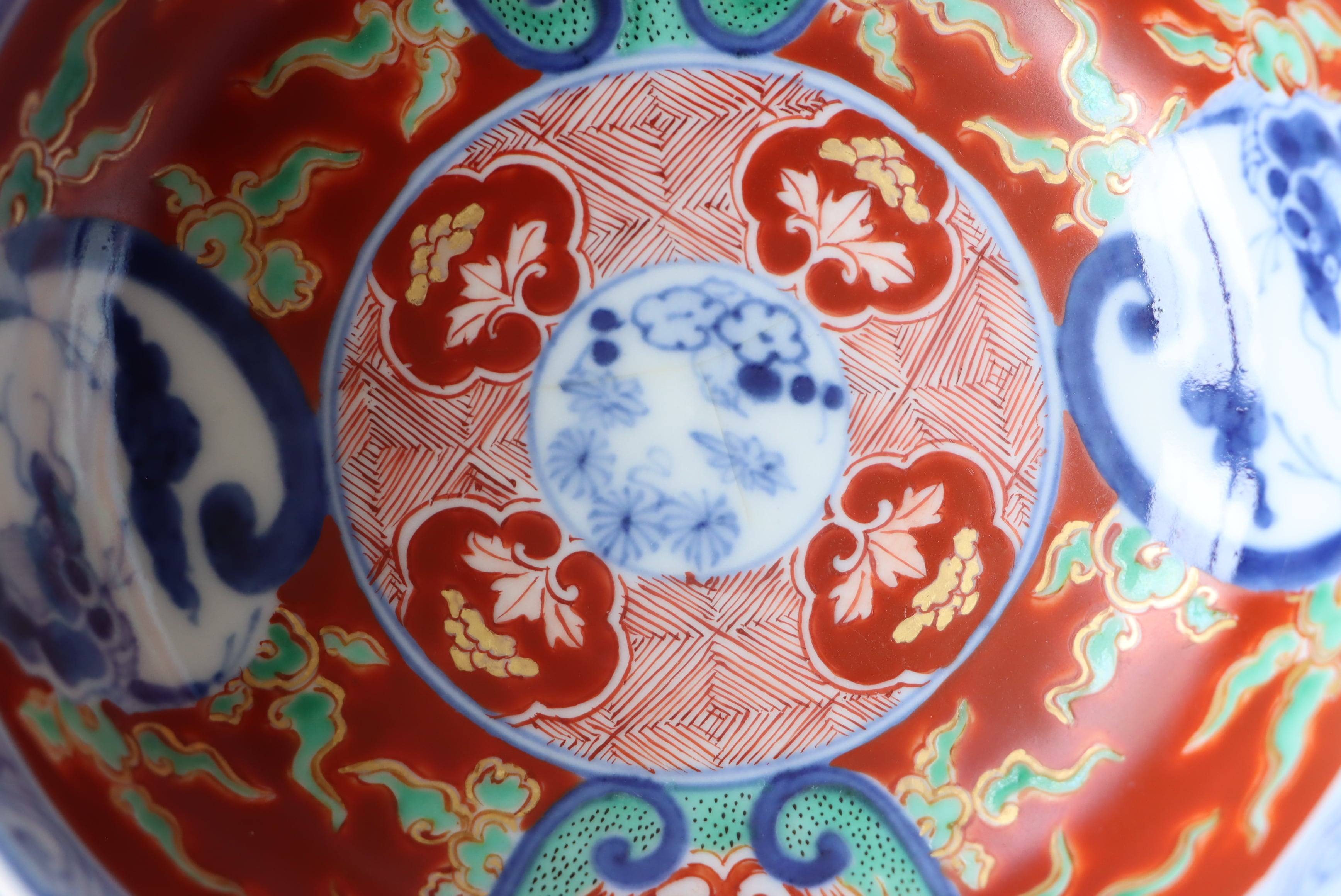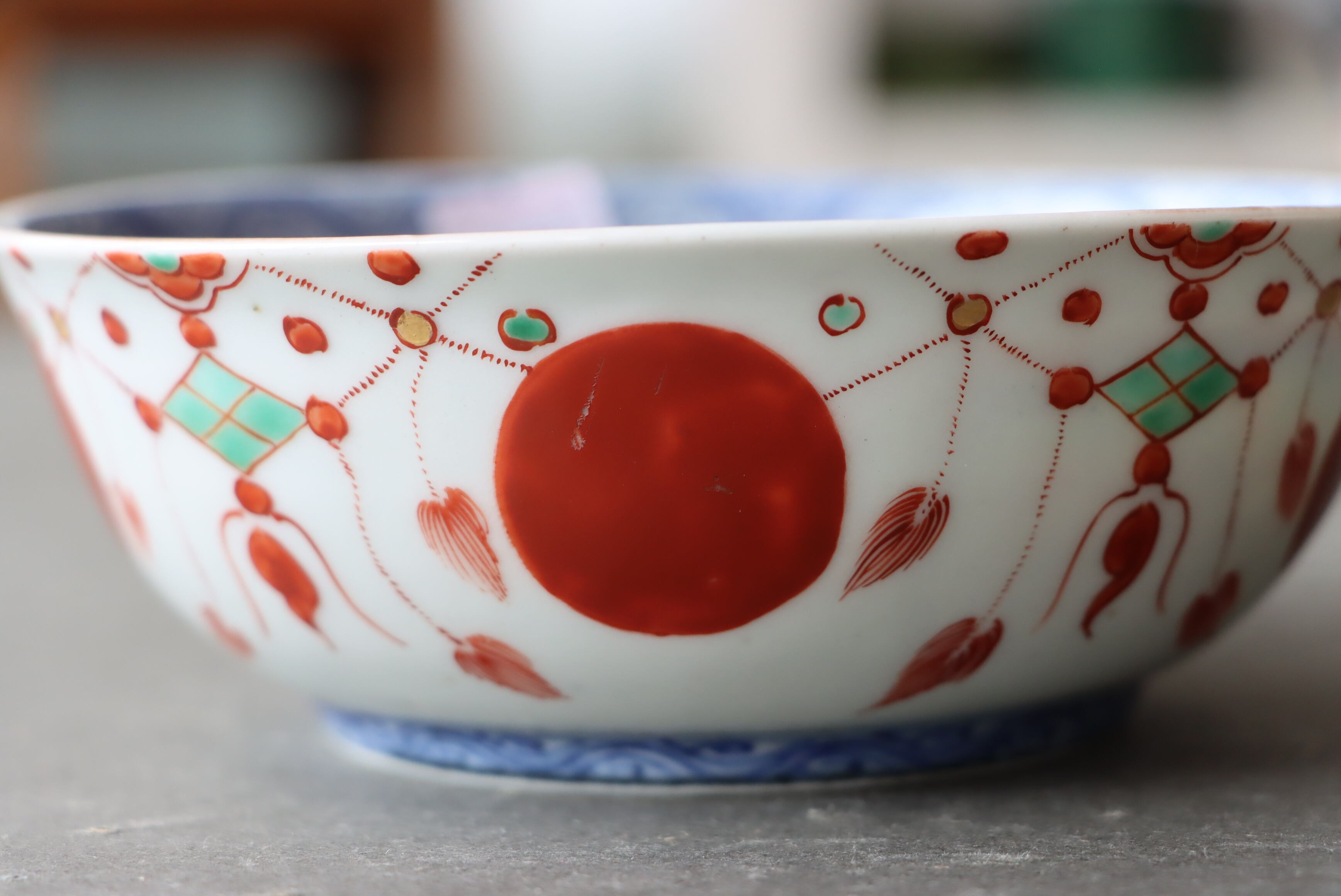 焼成時に窯の中でできる鉄分、くっつき、かまきず、ピンホール、経年による釉薬の薄れがございます。また、一枚一枚手描き、手作りですので器のサイズ(ミリ)、色味、描かれている文様の大きさなど個体差があり、ひとつとして同じものはございません。そういった時代感、個性をご理解いただき、楽しんでくだされば幸いです。電子レンジや食器洗い乾燥機のご使用はお控えください。