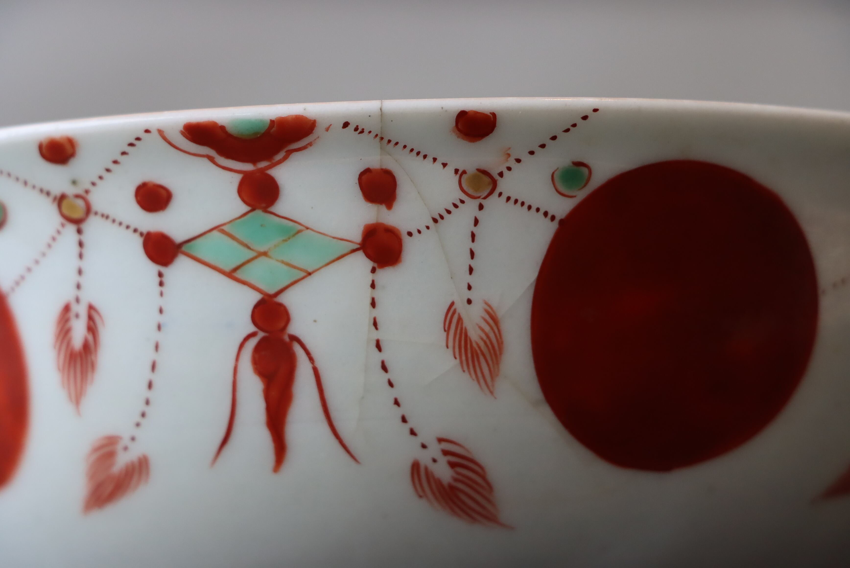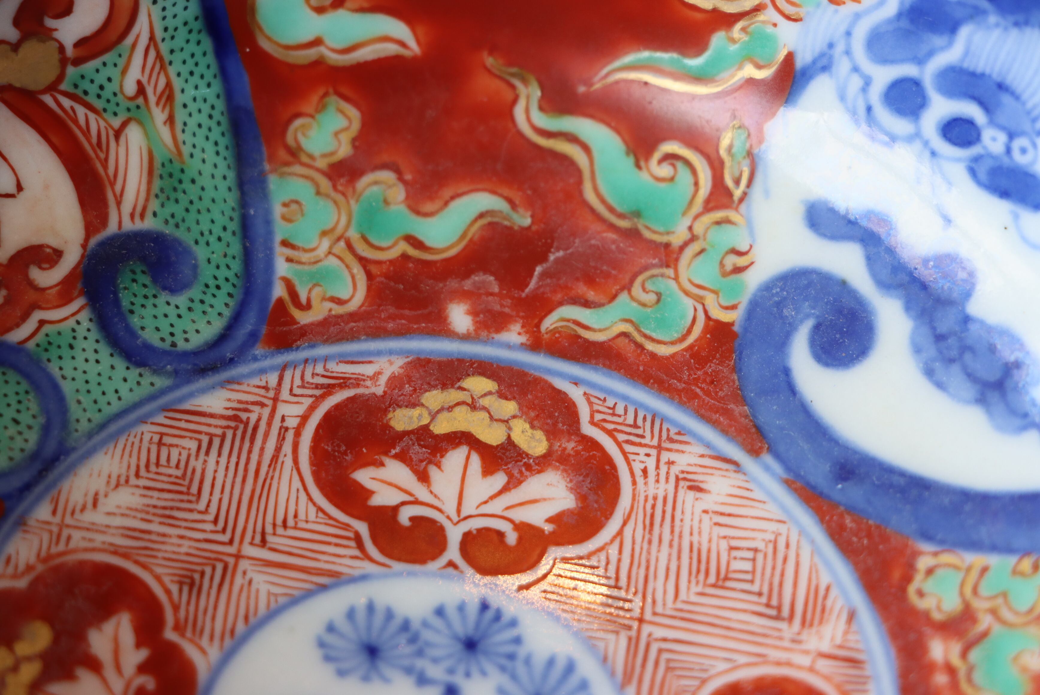 焼成時に窯の中でできる鉄分、くっつき、かまきず、ピンホール、経年による釉薬の薄れがございます。また、一枚一枚手描き、手作りですので器のサイズ(ミリ)、色味、描かれている文様の大きさなど個体差があり、ひとつとして同じものはございません。そういった時代感、個性をご理解いただき、楽しんでくだされば幸いです。電子レンジや食器洗い乾燥機のご使用はお控えください。
