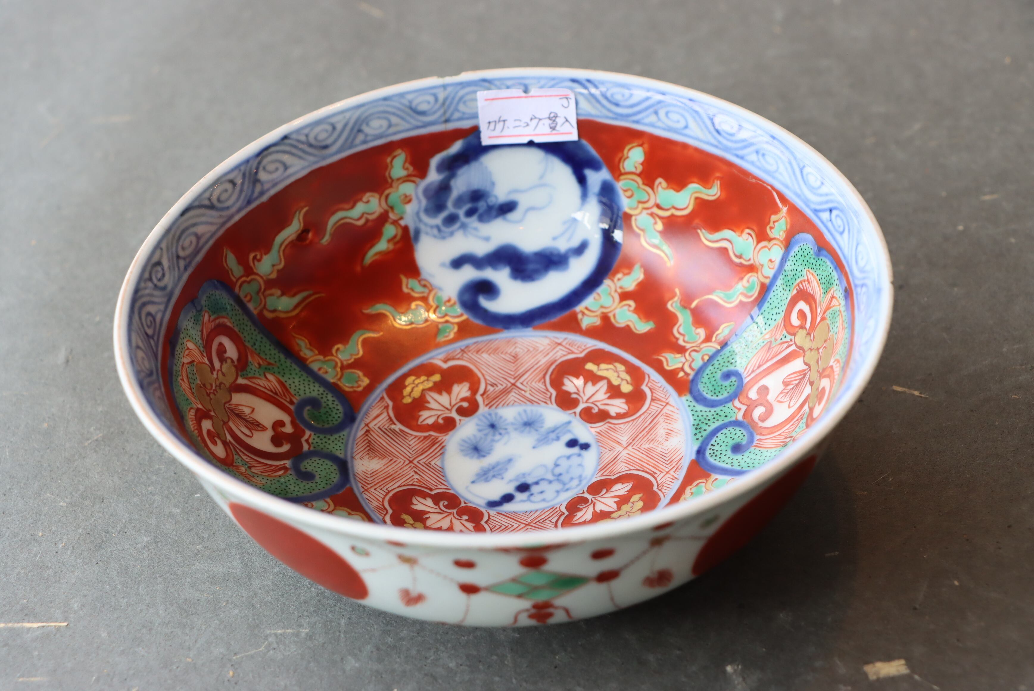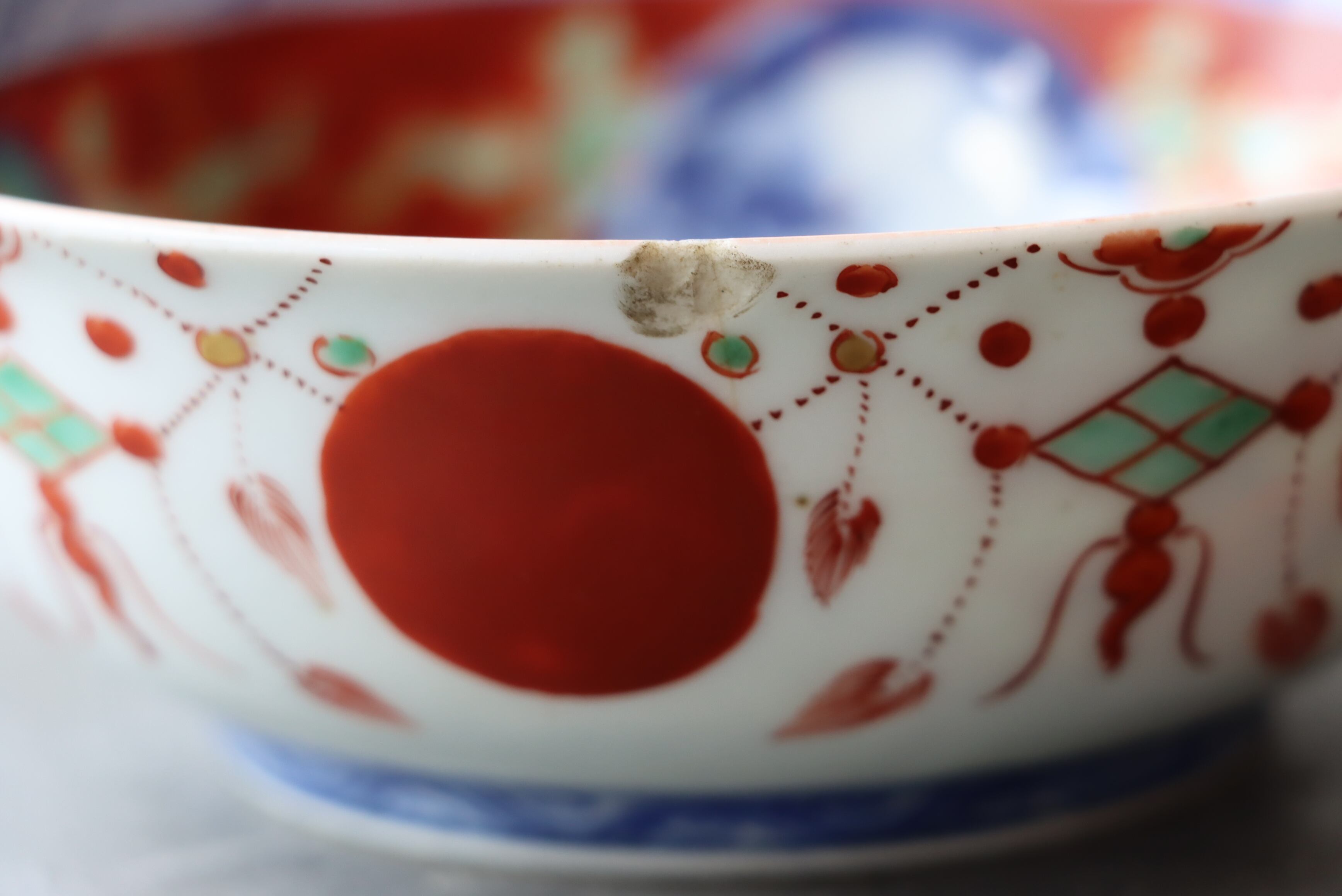 状態:カケ×2(約0.5、約1センチ)、ニュウ×2(約3センチ)、高台裏に貫入(最大約5センチ)あり。お写真にて状態をご確認ください。