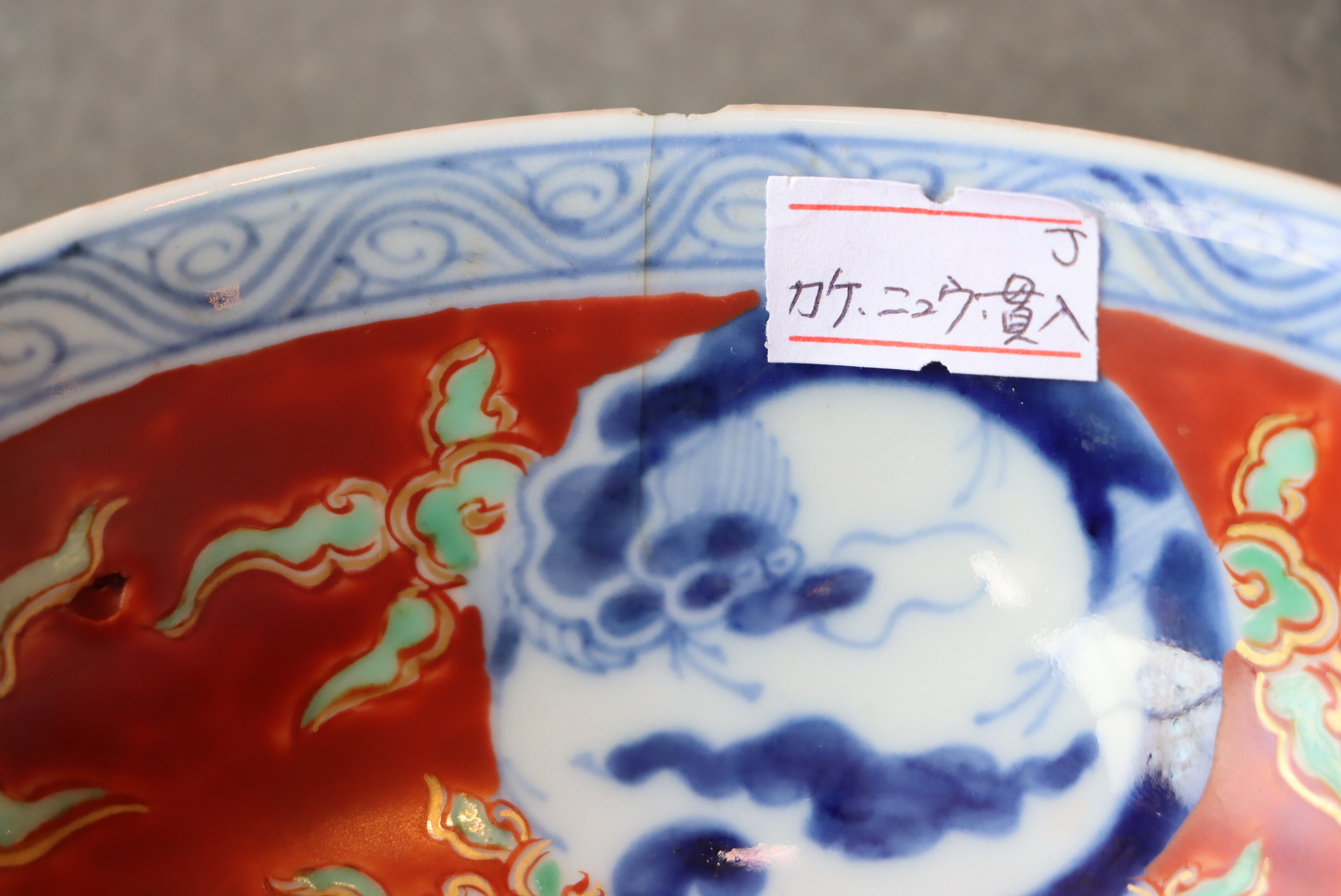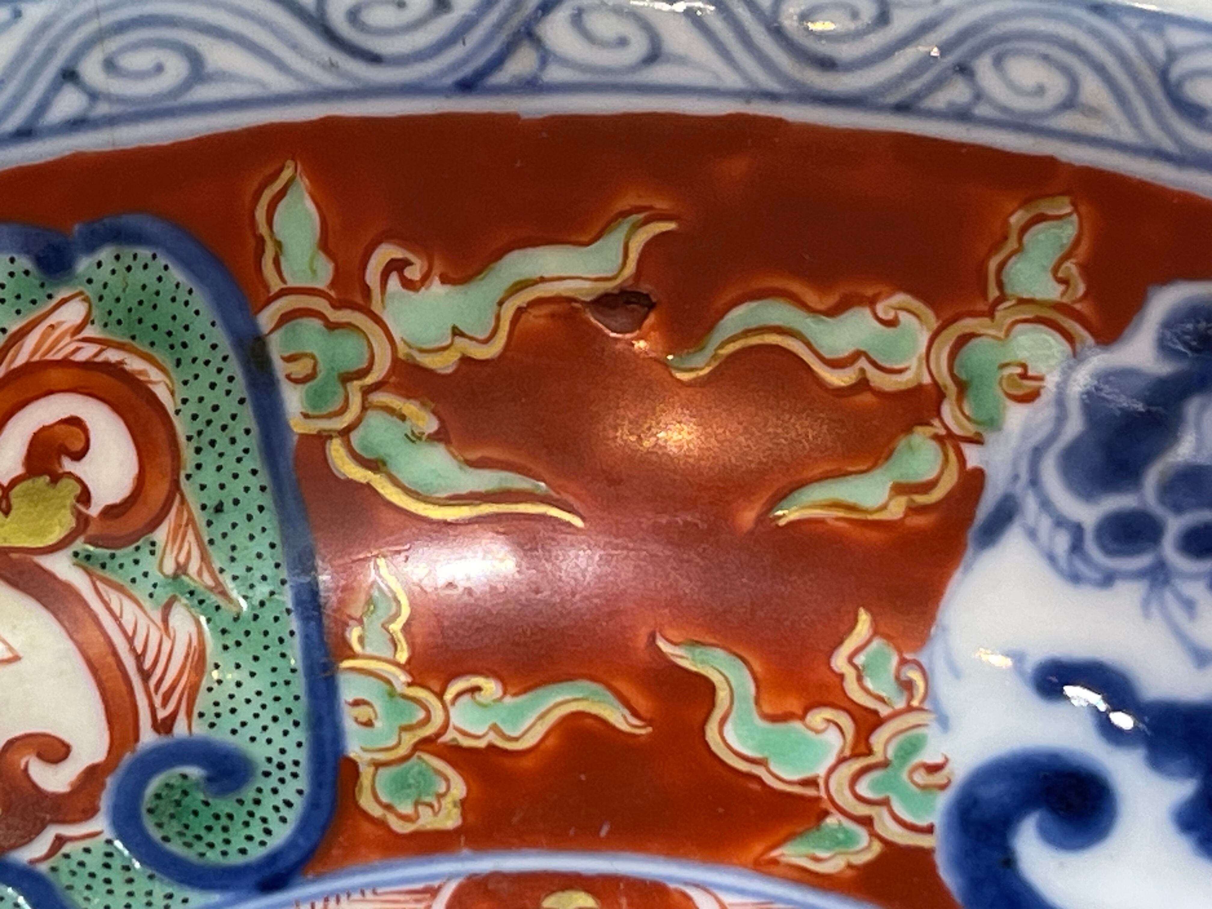 カケ×2 ニュウ×2 貫入 伊万里焼 色絵 赤玉瓔珞龍文 膾皿 J アウトレット