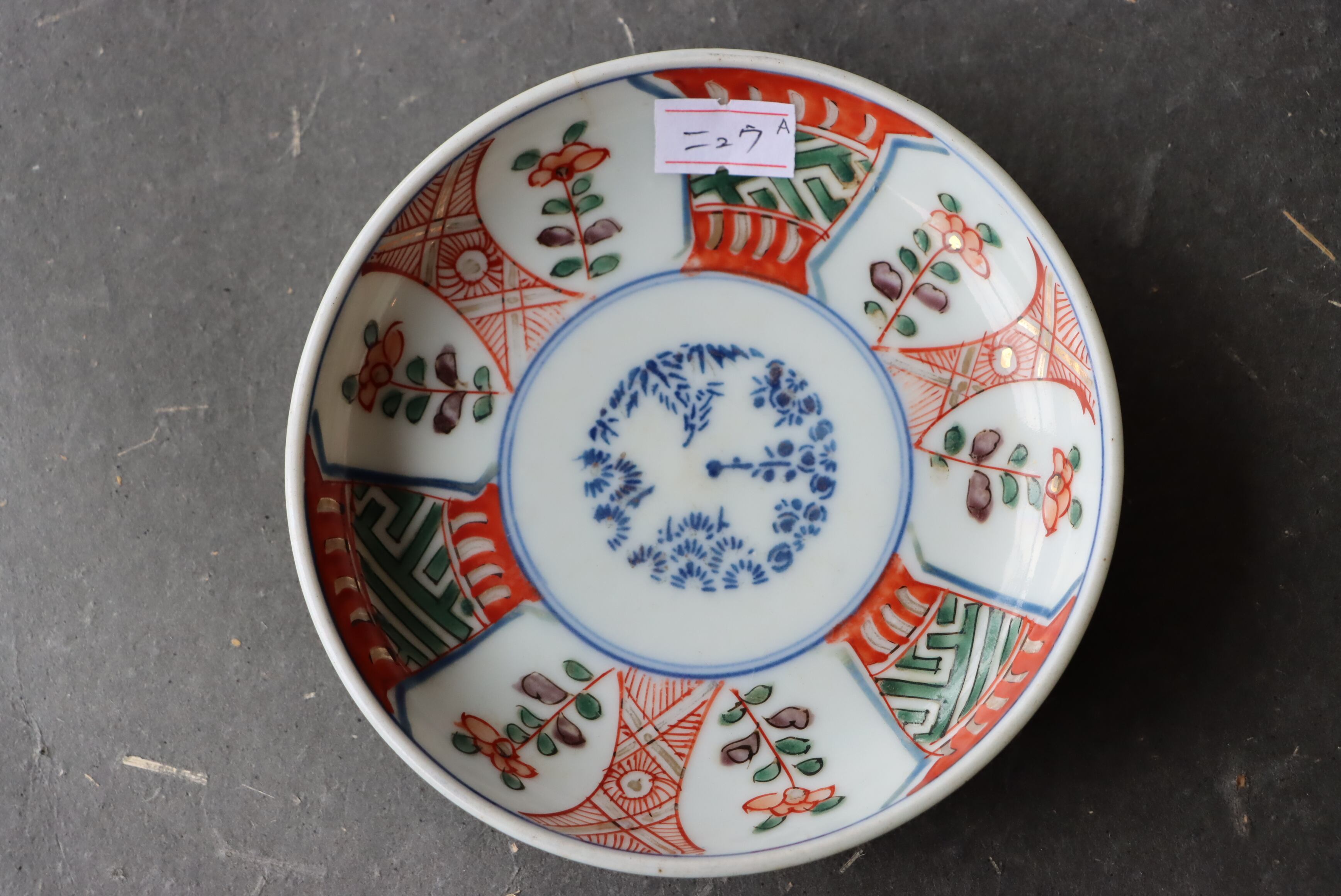 焼成時に窯の中でできる鉄分、くっつき、かまきず、ピンホール、経年による釉薬の薄れがございます。また、一枚一枚手描き、手作りですので器のサイズ(ミリ)、色味、描かれている文様の大きさなど個体差があり、ひとつとして同じものはございません。そういった時代感、個性をご理解いただき、楽しんでくだされば幸いです。電子レンジや食器洗い乾燥機のご使用はお控えください。