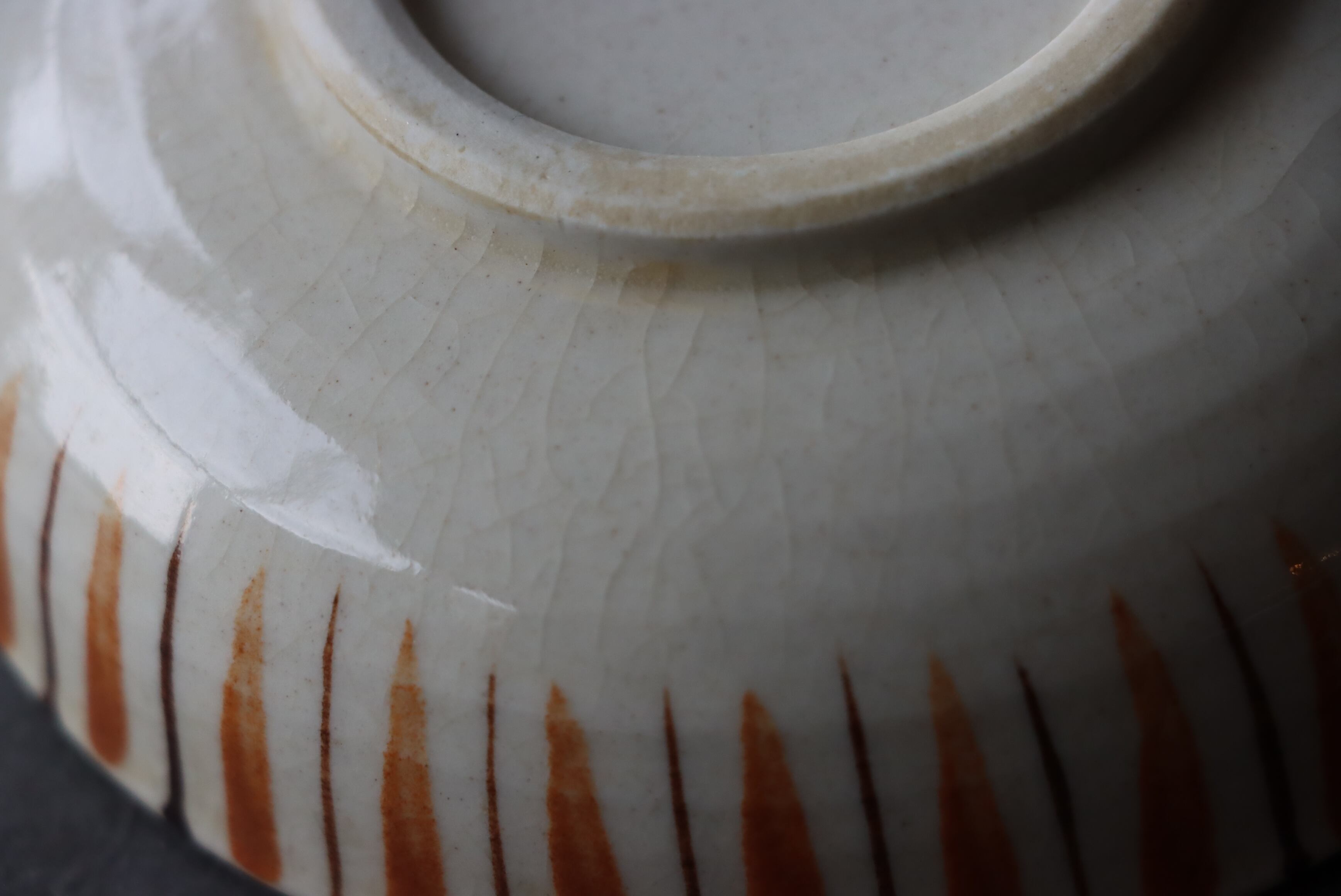 状態:ニュウ(約4センチ)あり。その他、甘手あり。(焼成が不十分なために、器の表面全体に貫入が入ってしまったこと。窯出しの時に、急激に温度が下がると素地と釉薬との収縮率の違いから、起こること。)お写真で状態をご確認ください。