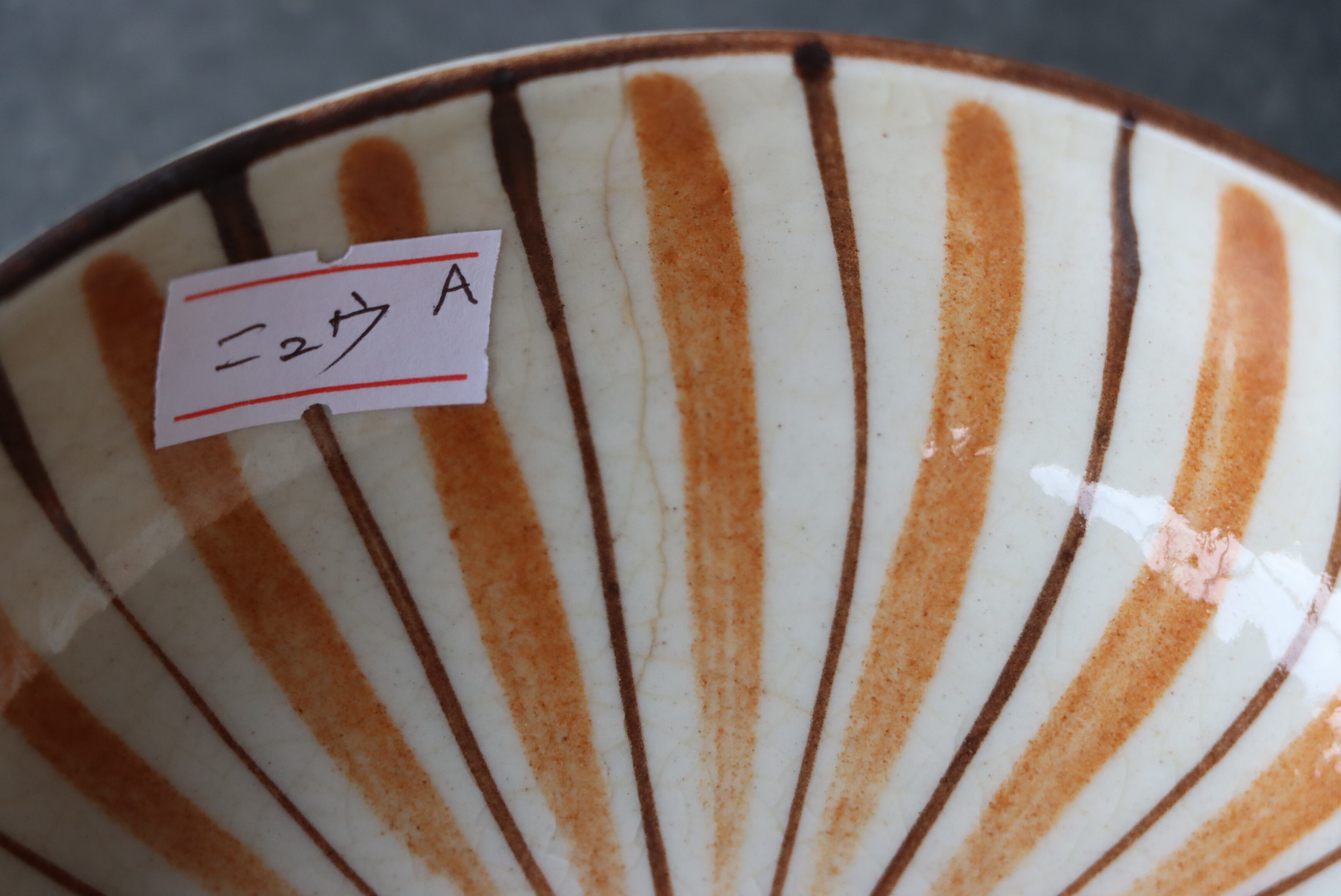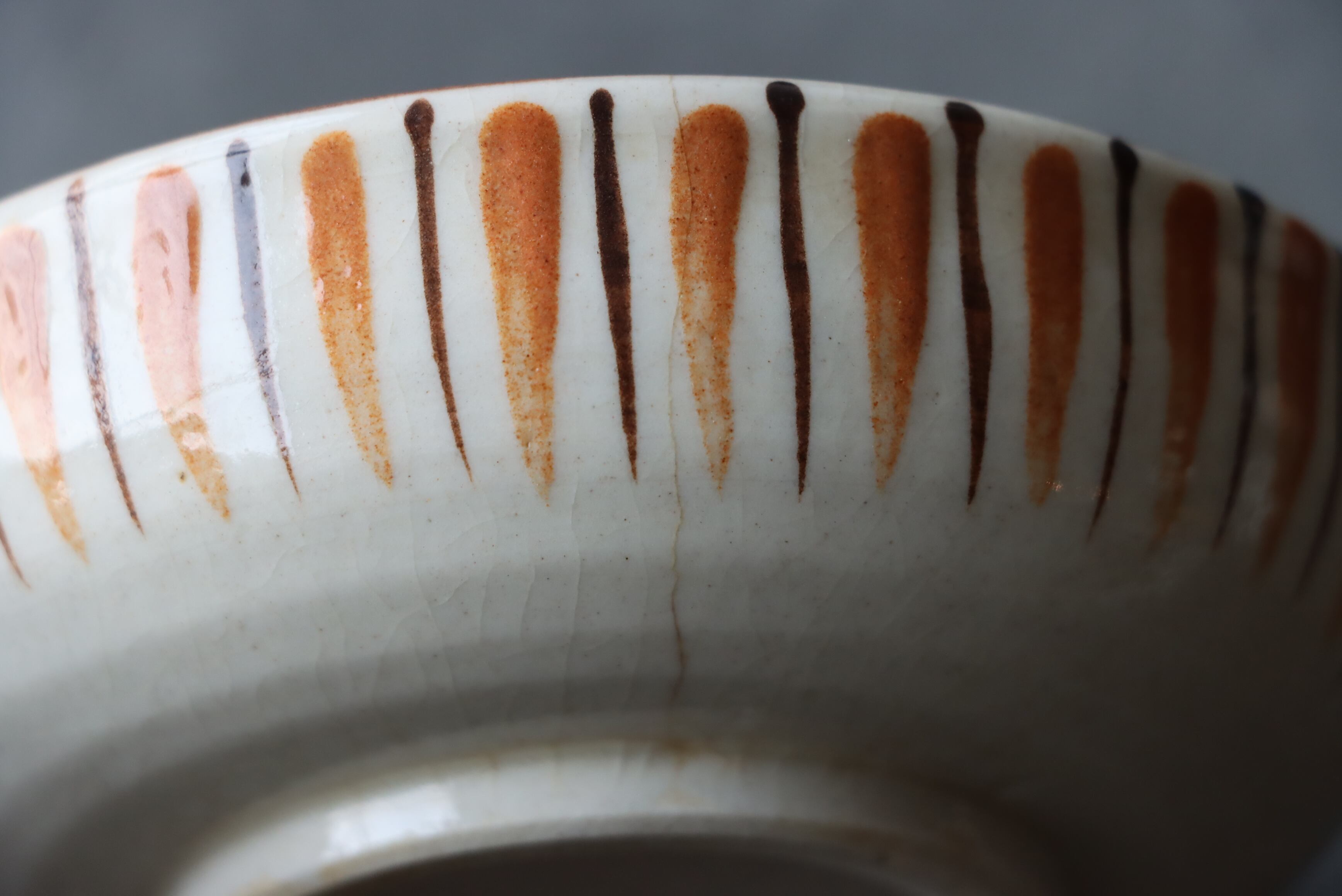 焼成時に窯の中でできる鉄分、くっつき、かまきず、ピンホール、経年による釉薬の薄れがございます。また、一枚一枚手描き、手作りですので器のサイズ(ミリ)、色味、描かれている文様の大きさなど個体差があり、ひとつとして同じものはございません。そういった時代感、個性をご理解いただき、楽しんでくだされば幸いです。電子レンジや食器洗い乾燥機のご使用はお控えください。