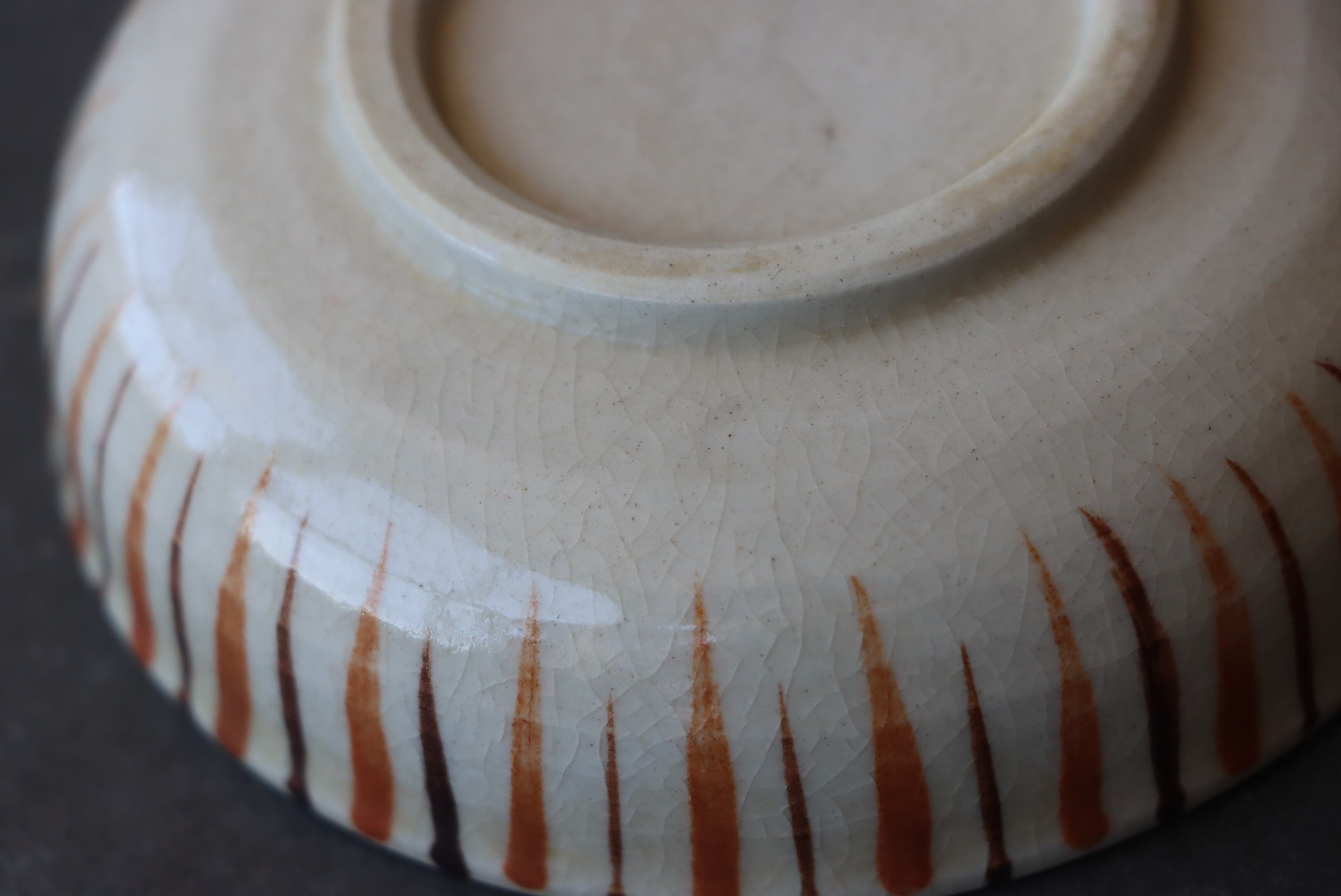 焼成時に窯の中でできる鉄分、くっつき、かまきず、ピンホール、経年による釉薬の薄れがございます。また、一枚一枚手描き、手作りですので器のサイズ(ミリ)、色味、描かれている文様の大きさなど個体差があり、ひとつとして同じものはございません。そういった時代感、個性をご理解いただき、楽しんでくだされば幸いです。電子レンジや食器洗い乾燥機のご使用はお控えください。