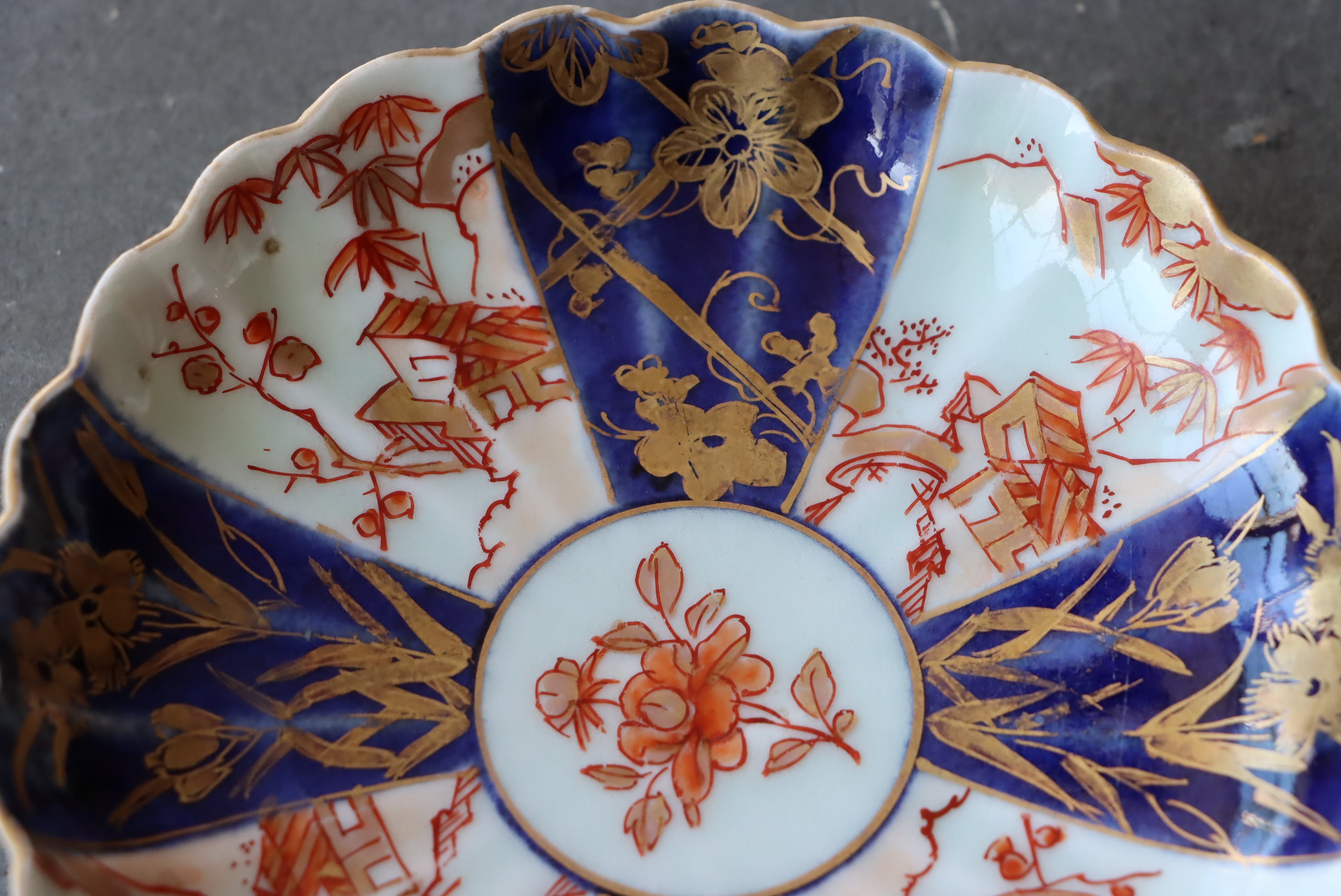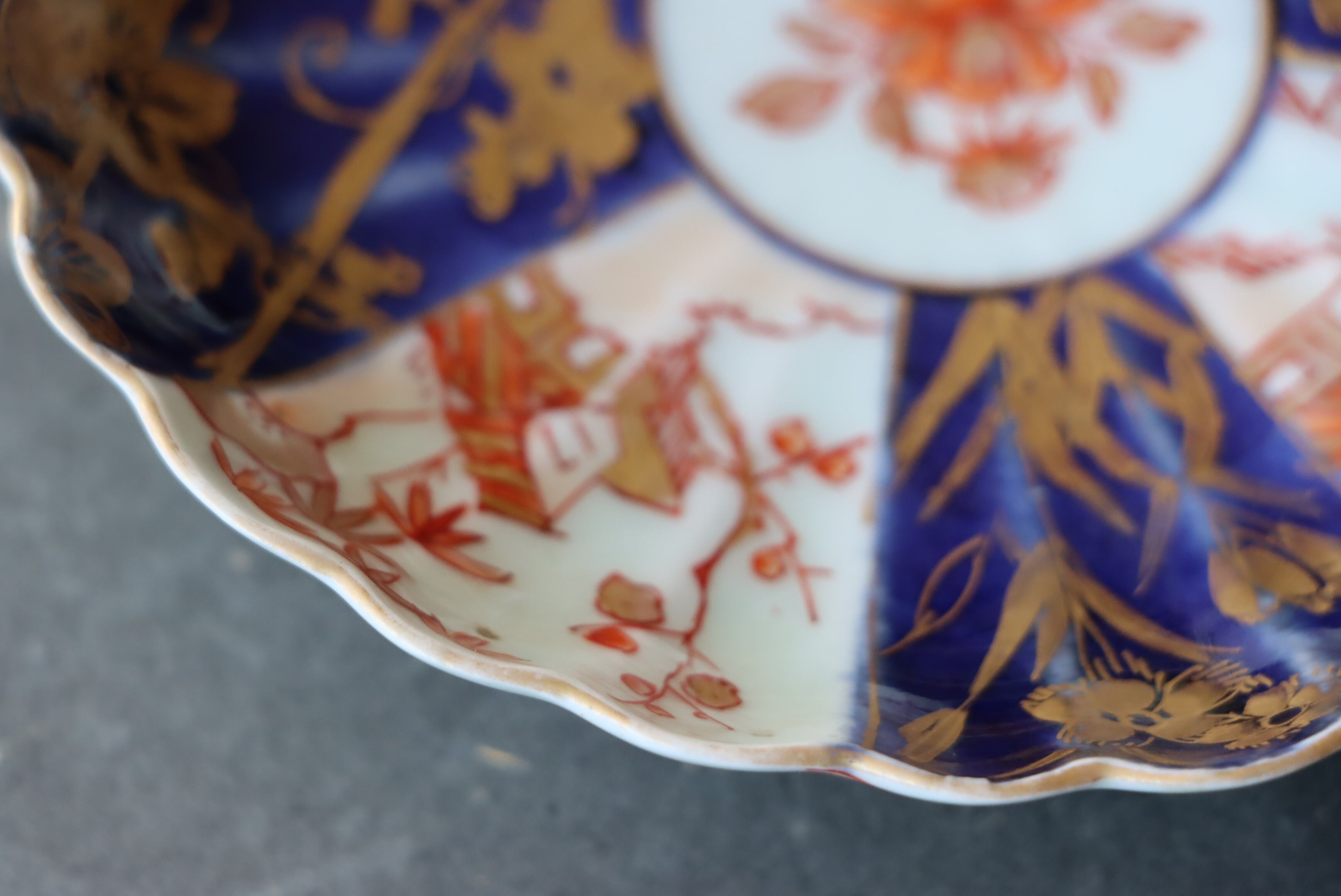 フチソゲ ×2 古伊万里 色絵 楼閣山水文 輪花 小皿 A アウトレット