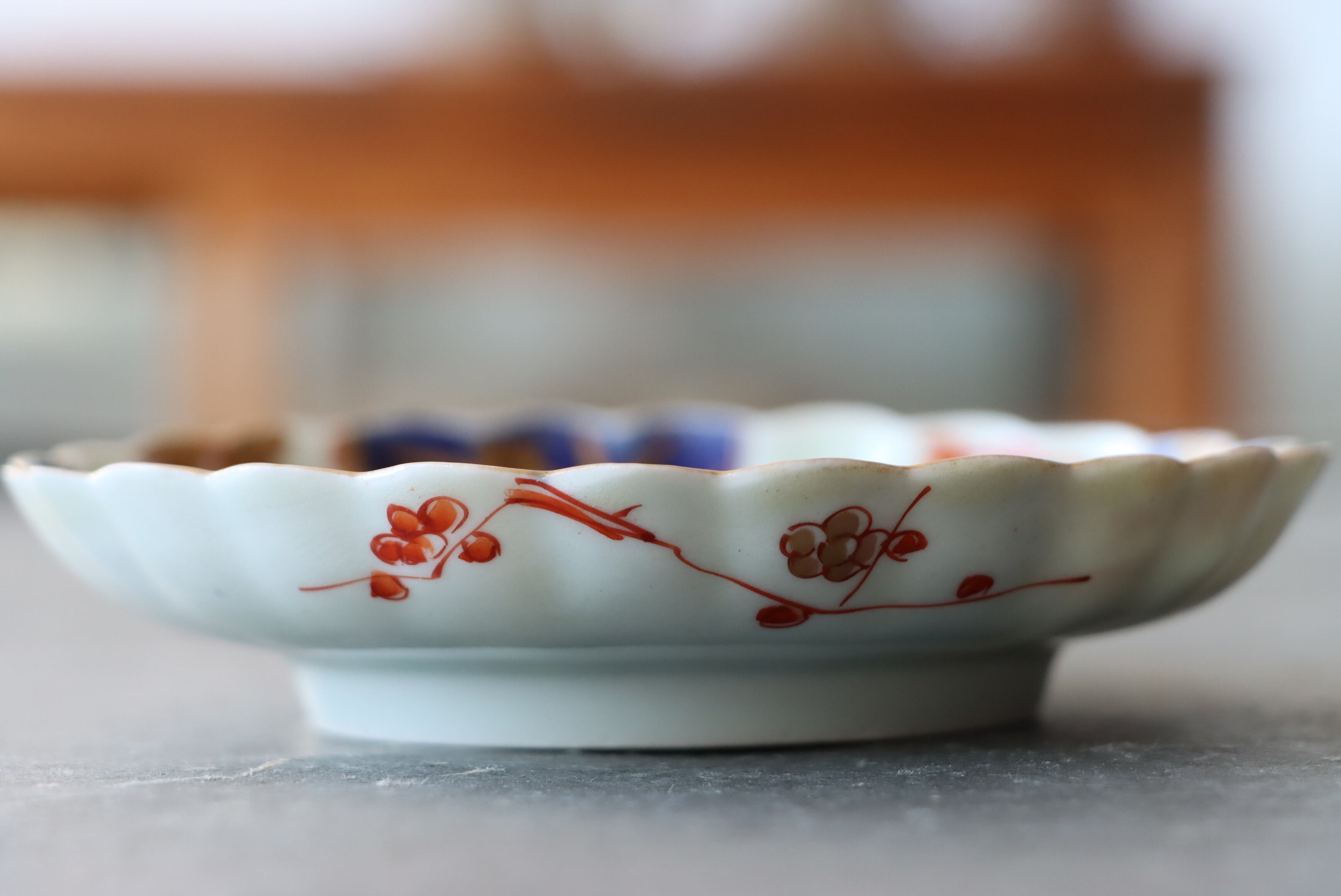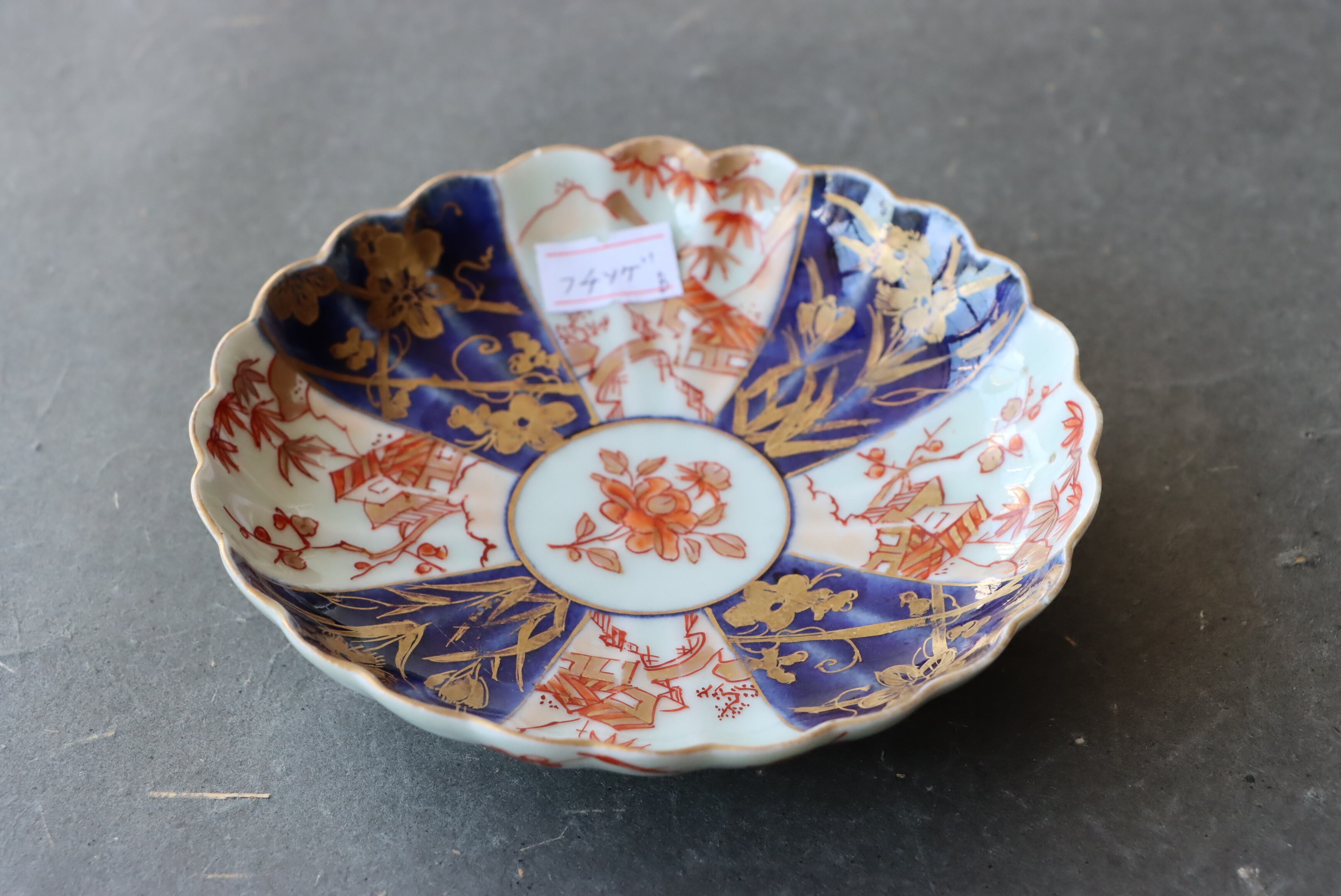 フチソゲ ×2 古伊万里 色絵 楼閣山水文 輪花 小皿 B アウトレット