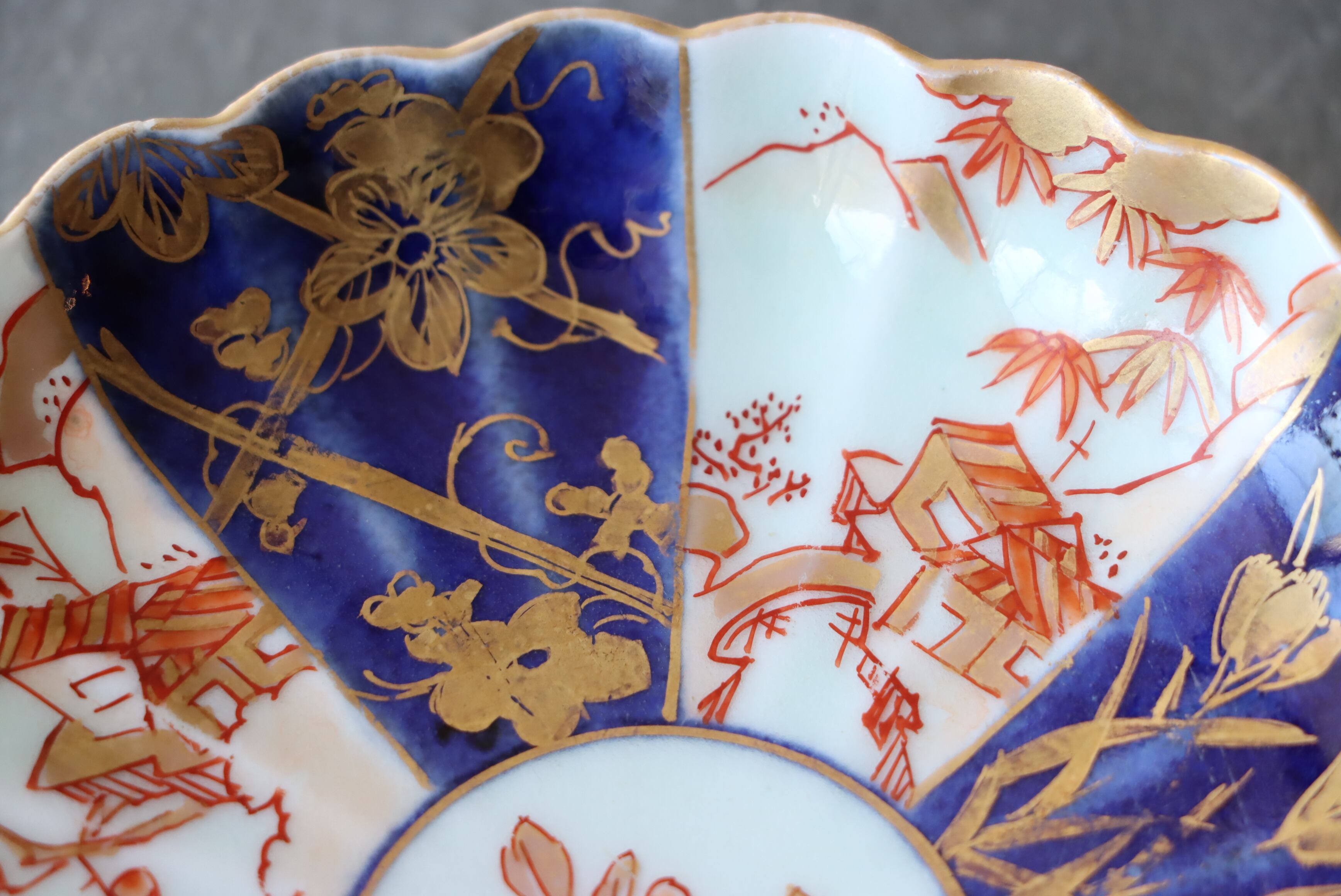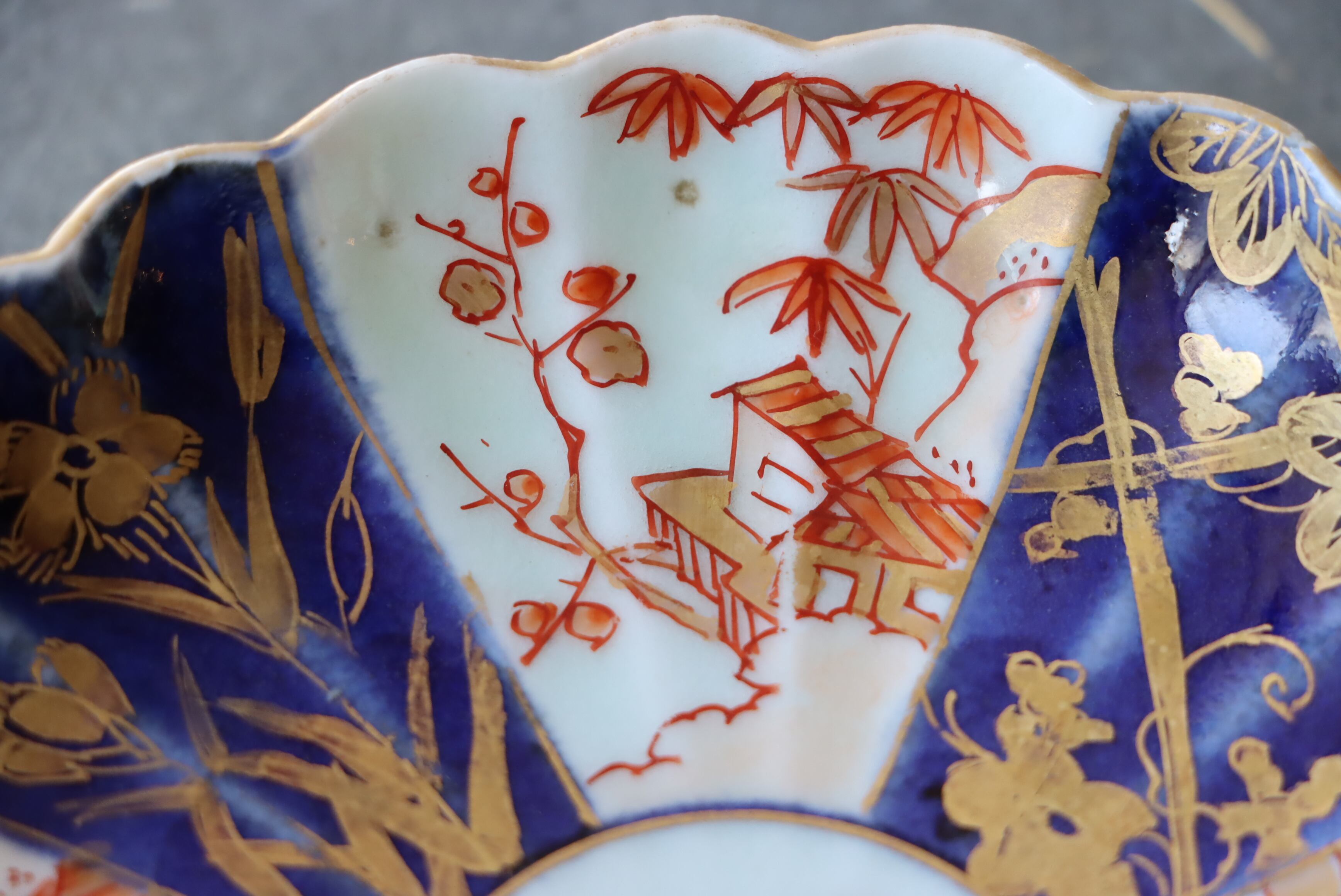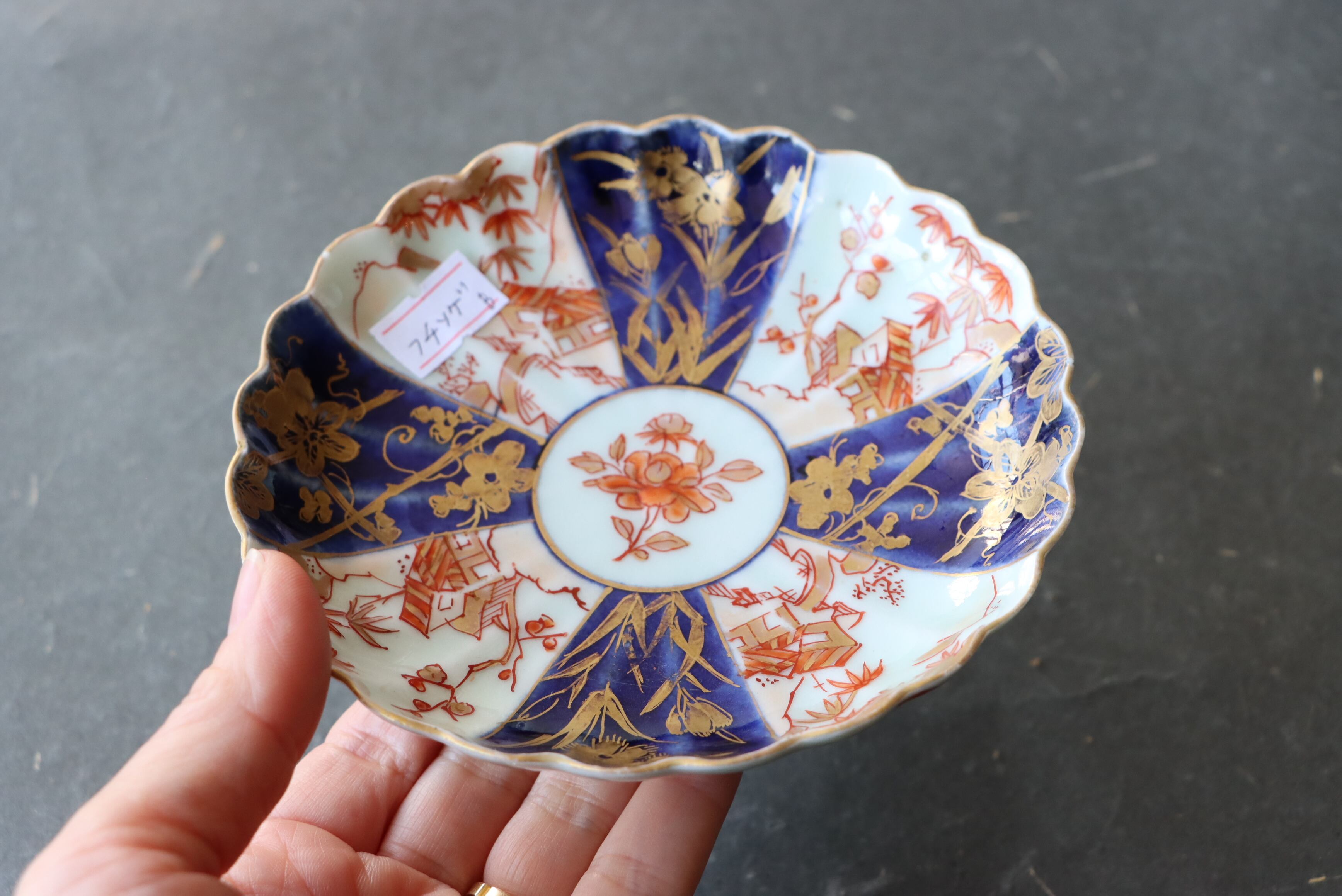 状態:小さなフチソゲ×2あり。口縁に施された金彩が一部剥離、及び、薄くなっています。お写真で状態をご確認ください。