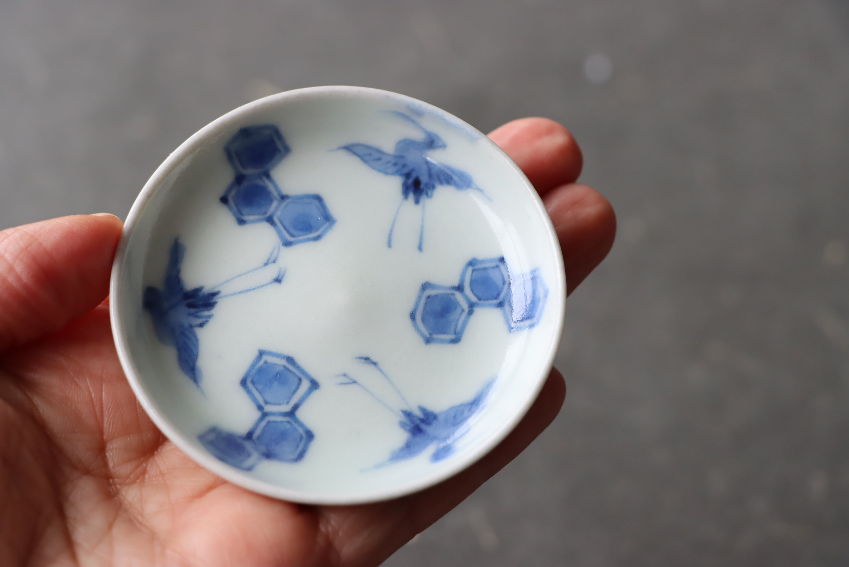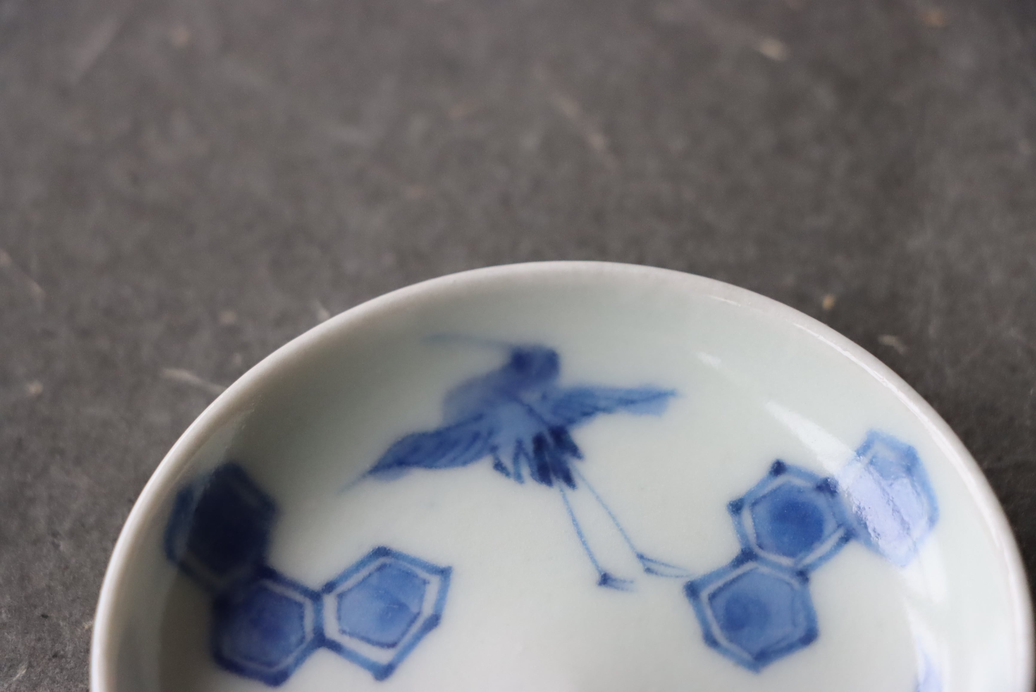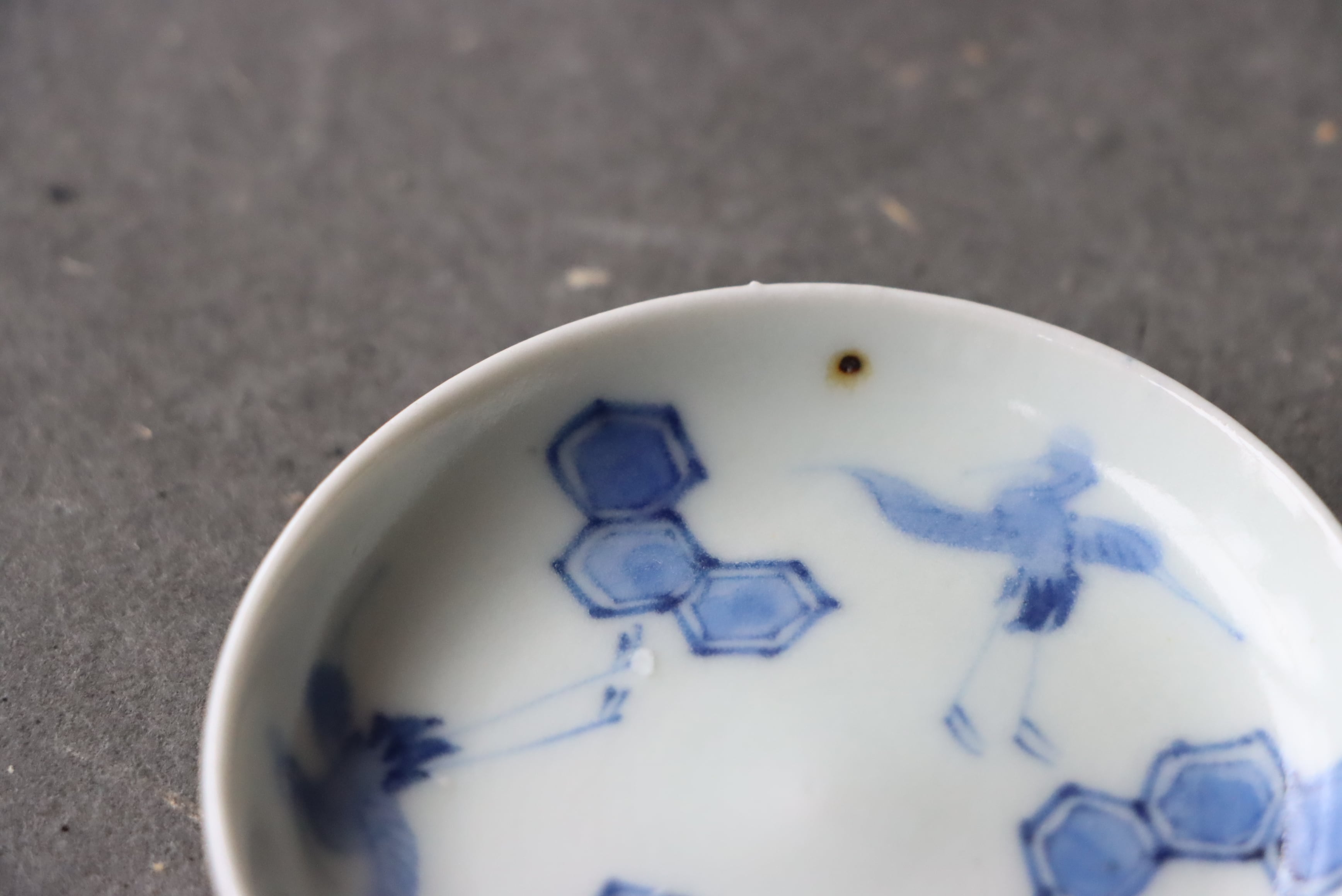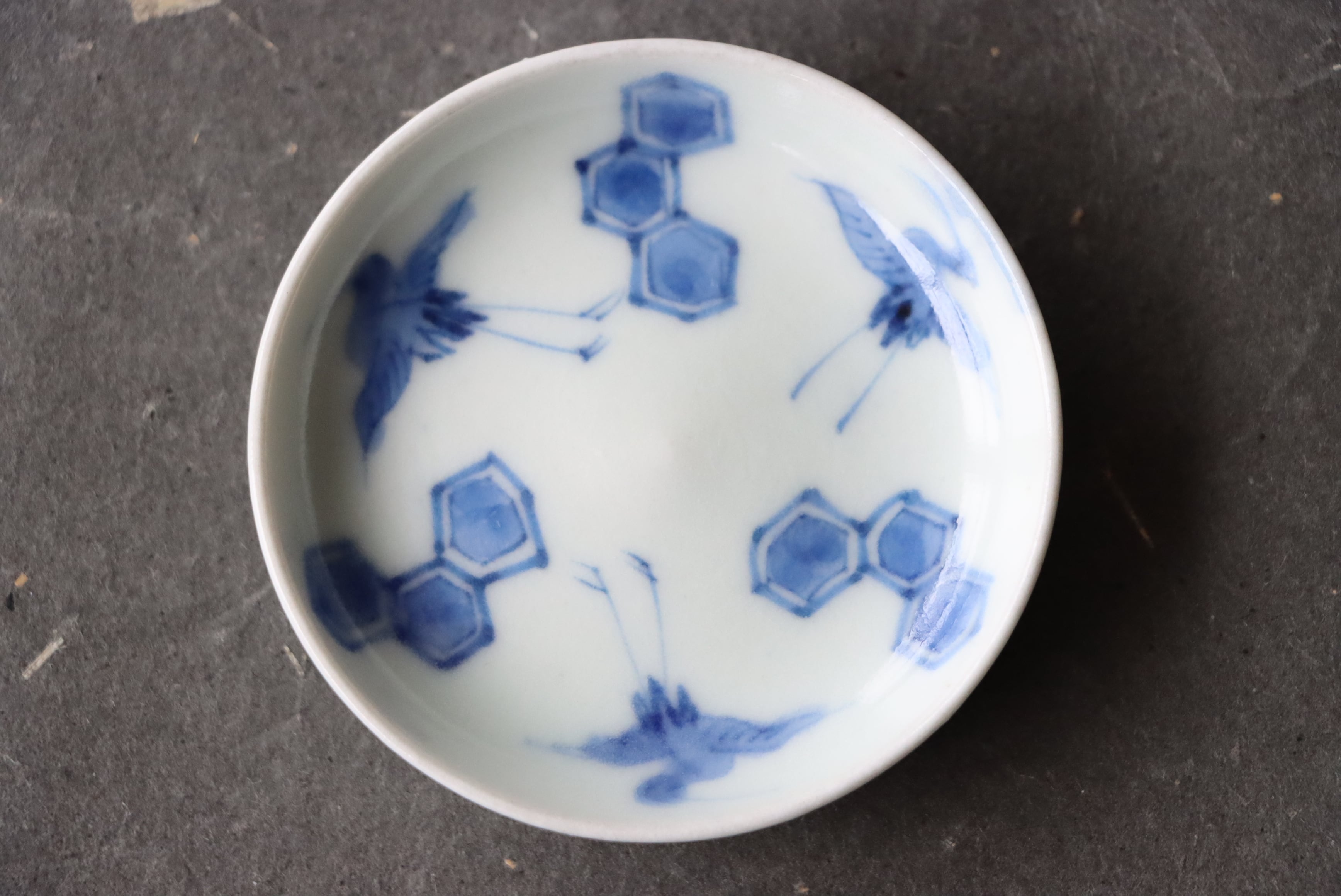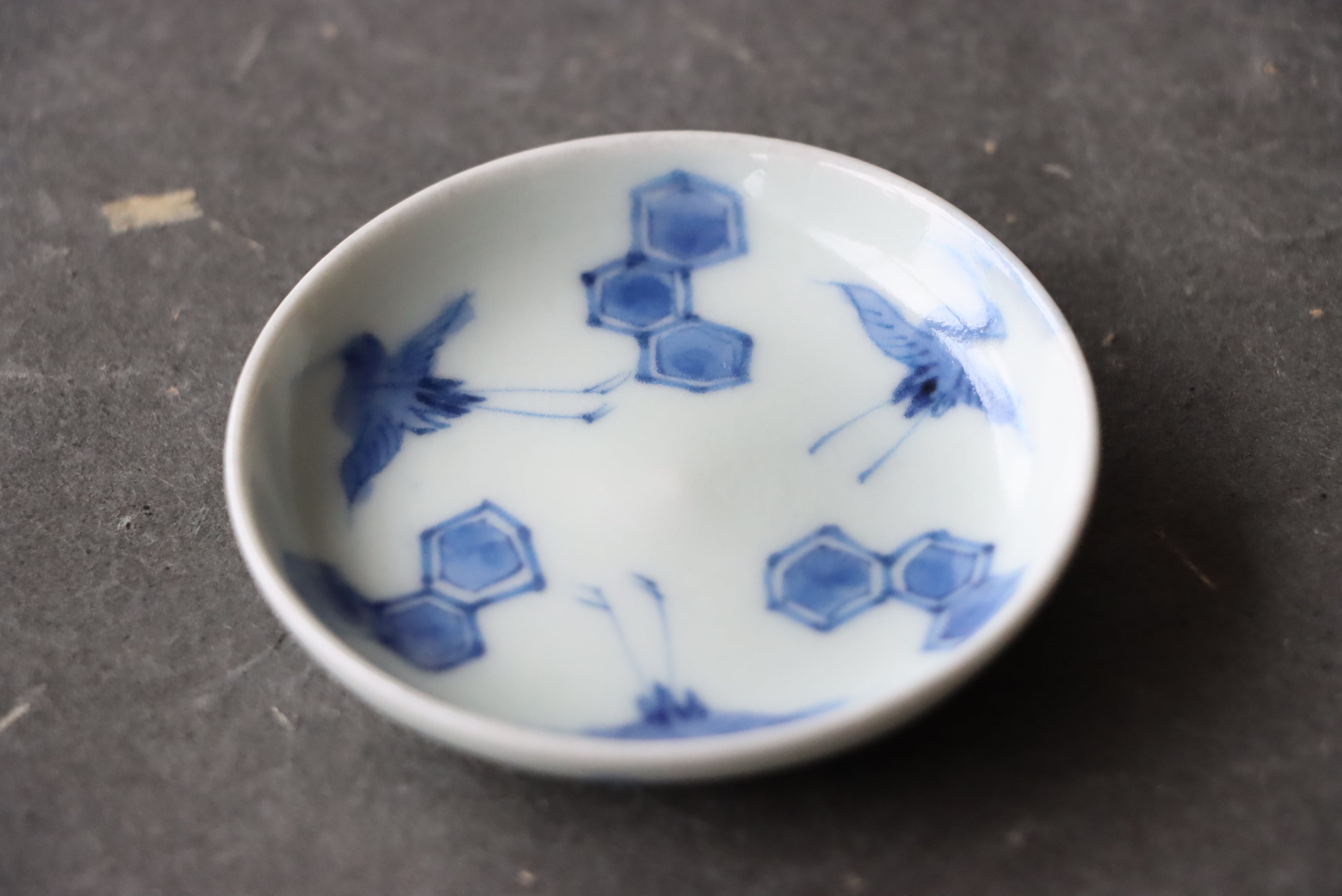 古伊万里 染付 鶴亀甲文 豆皿/Old Imari small plate less than 10cm