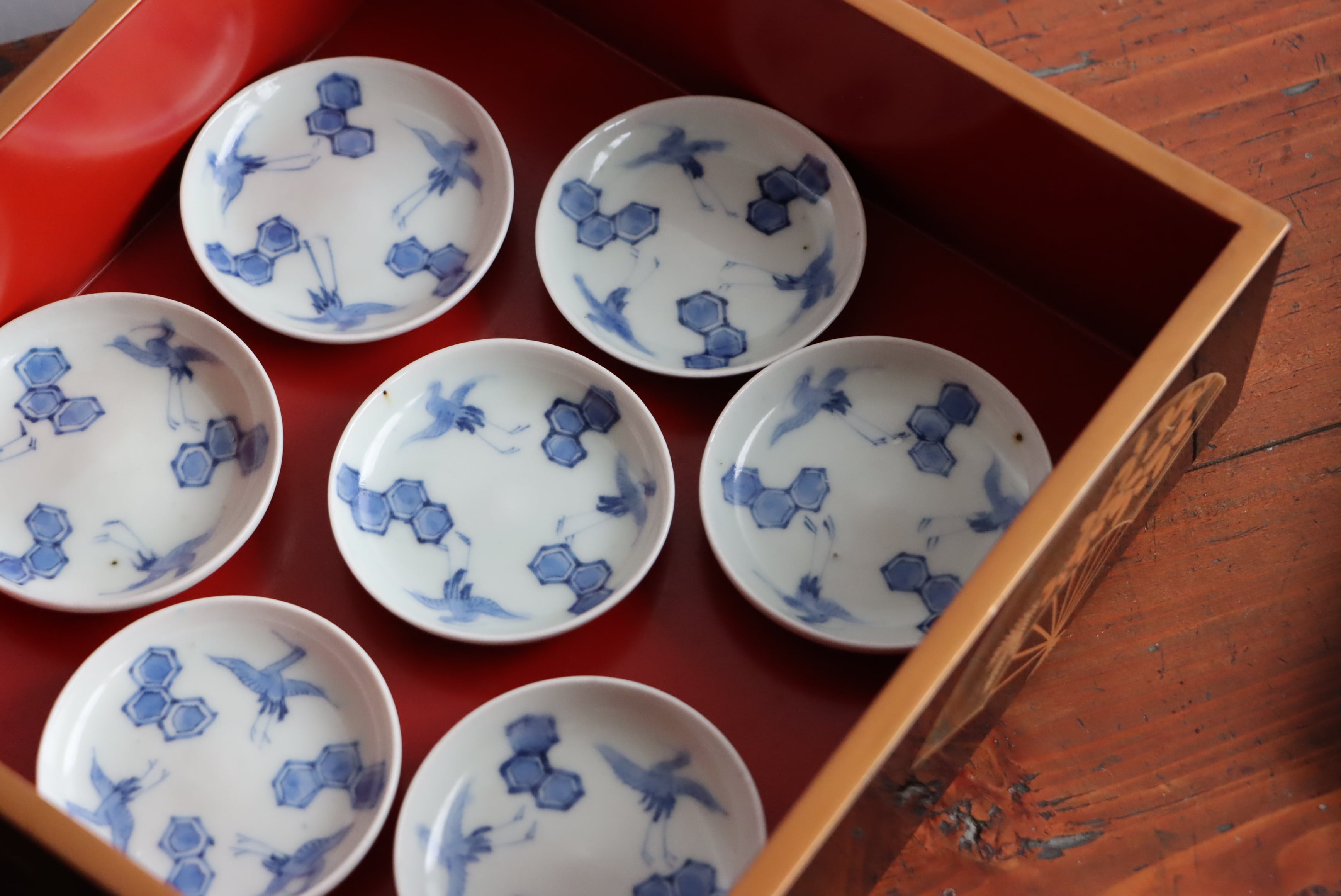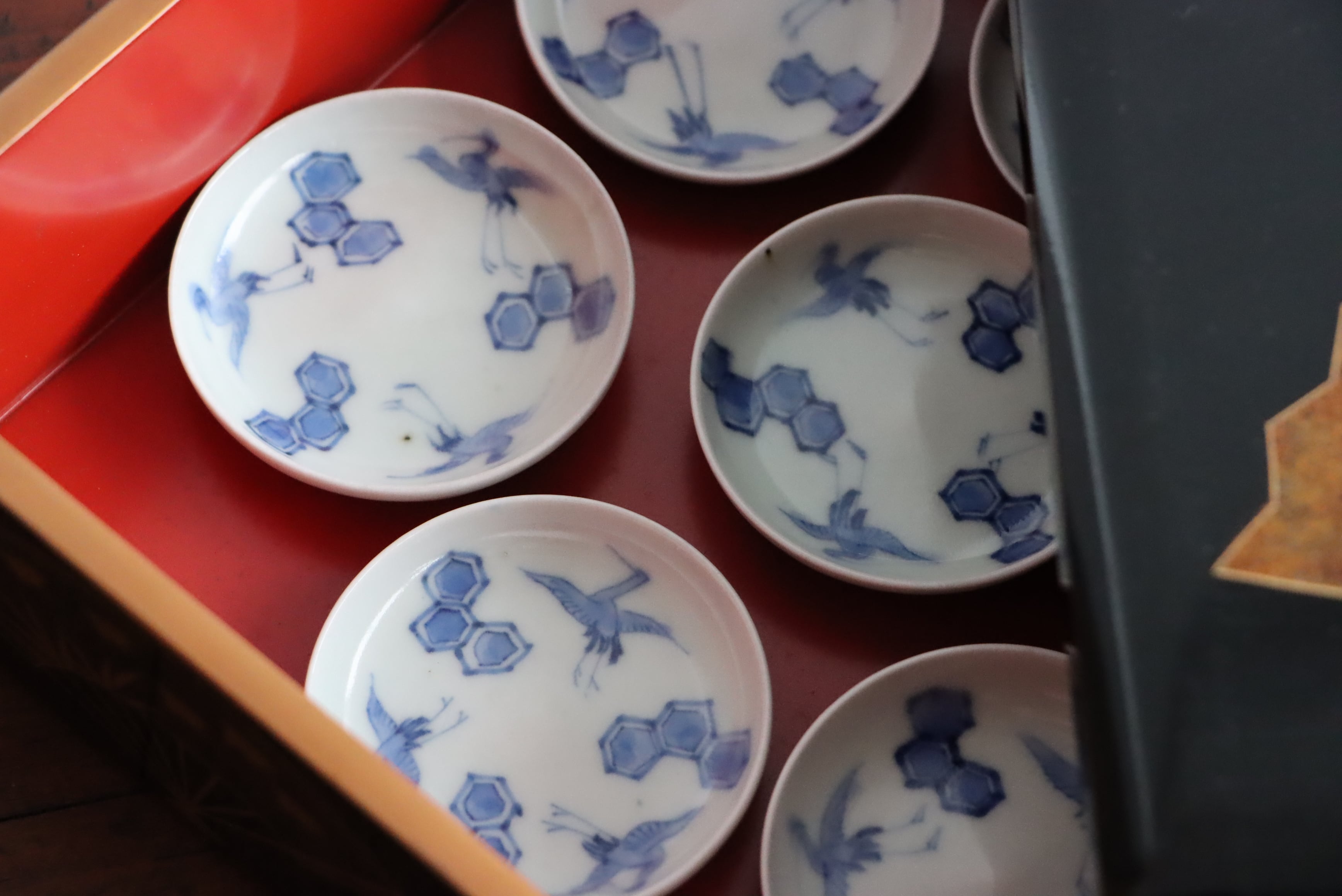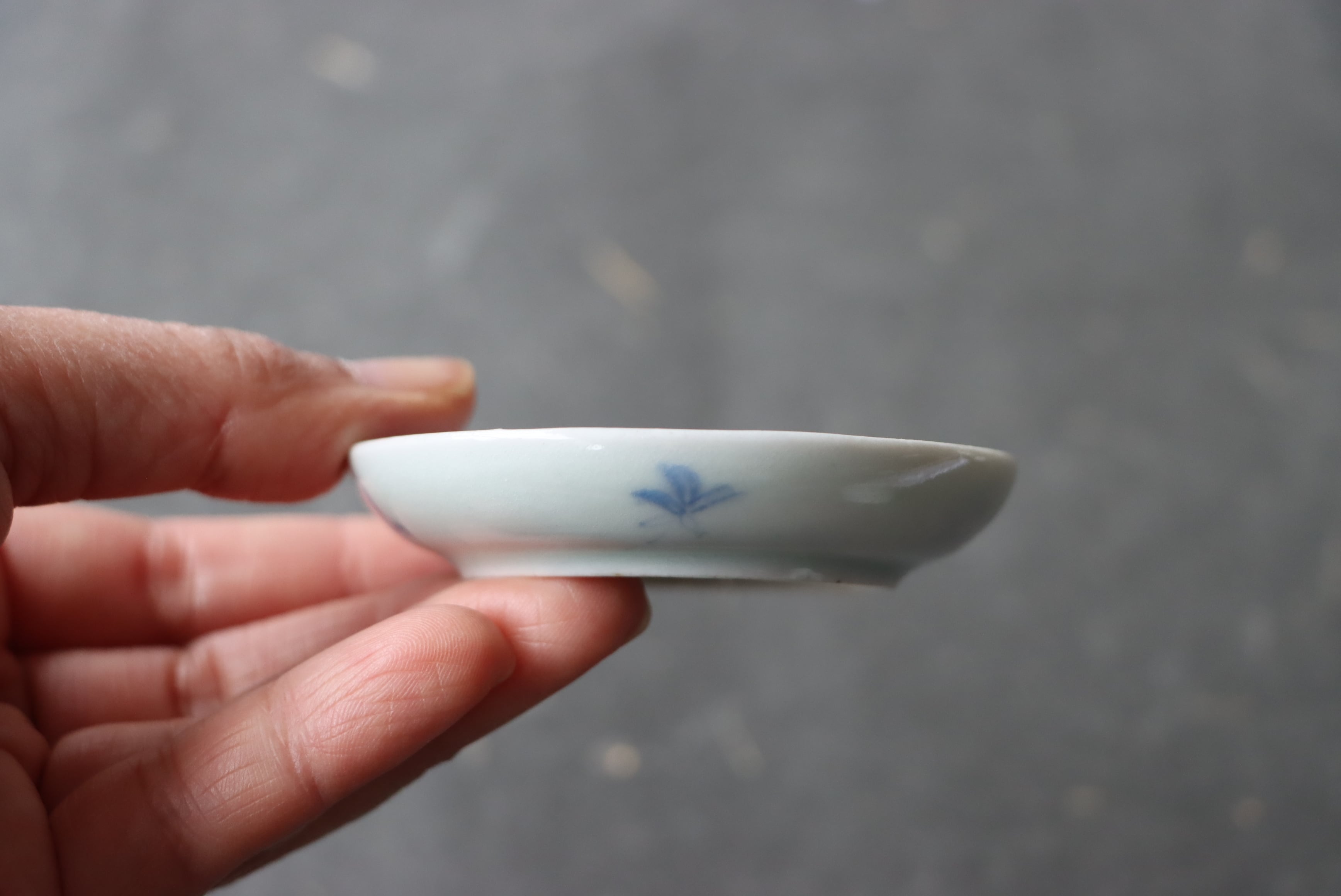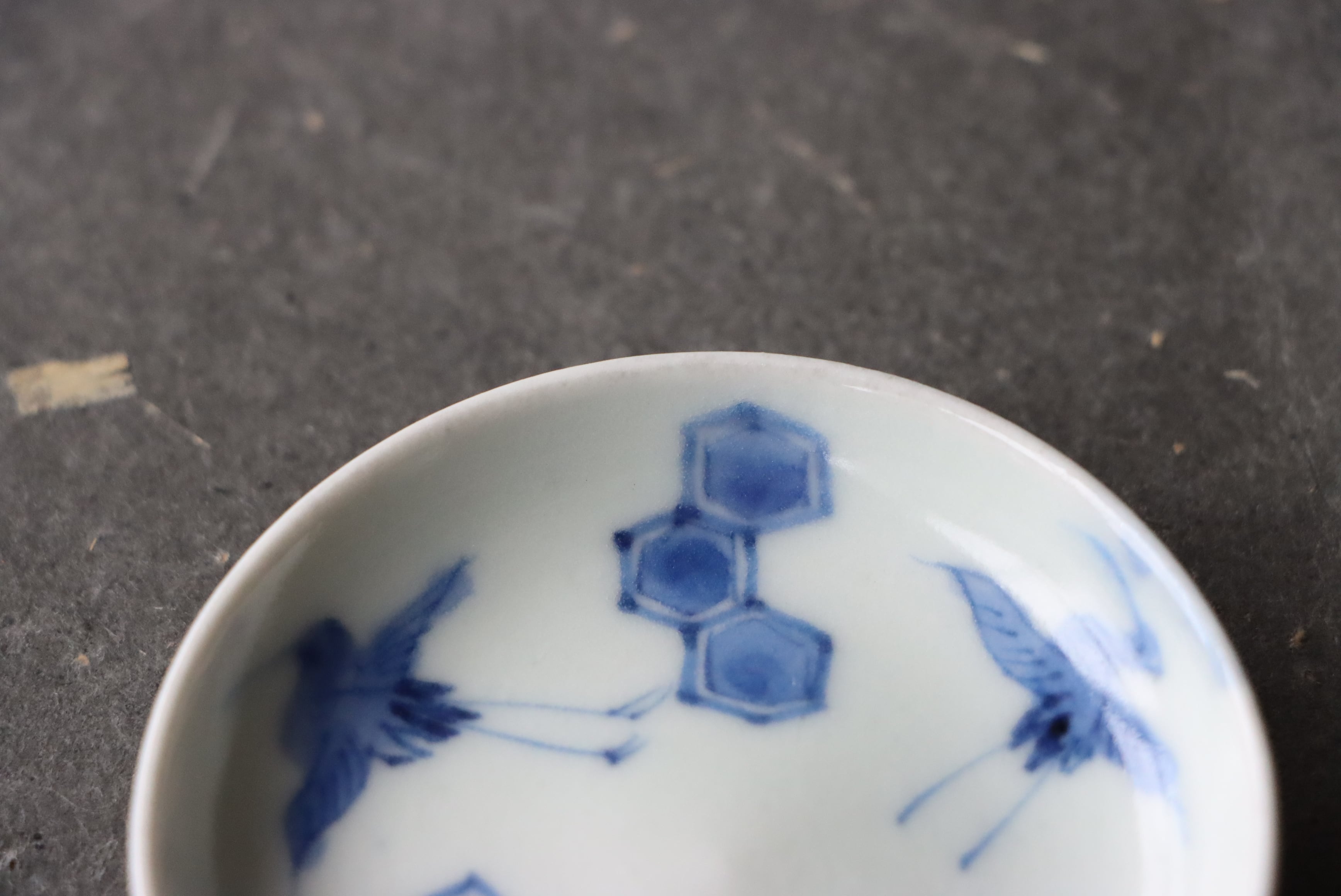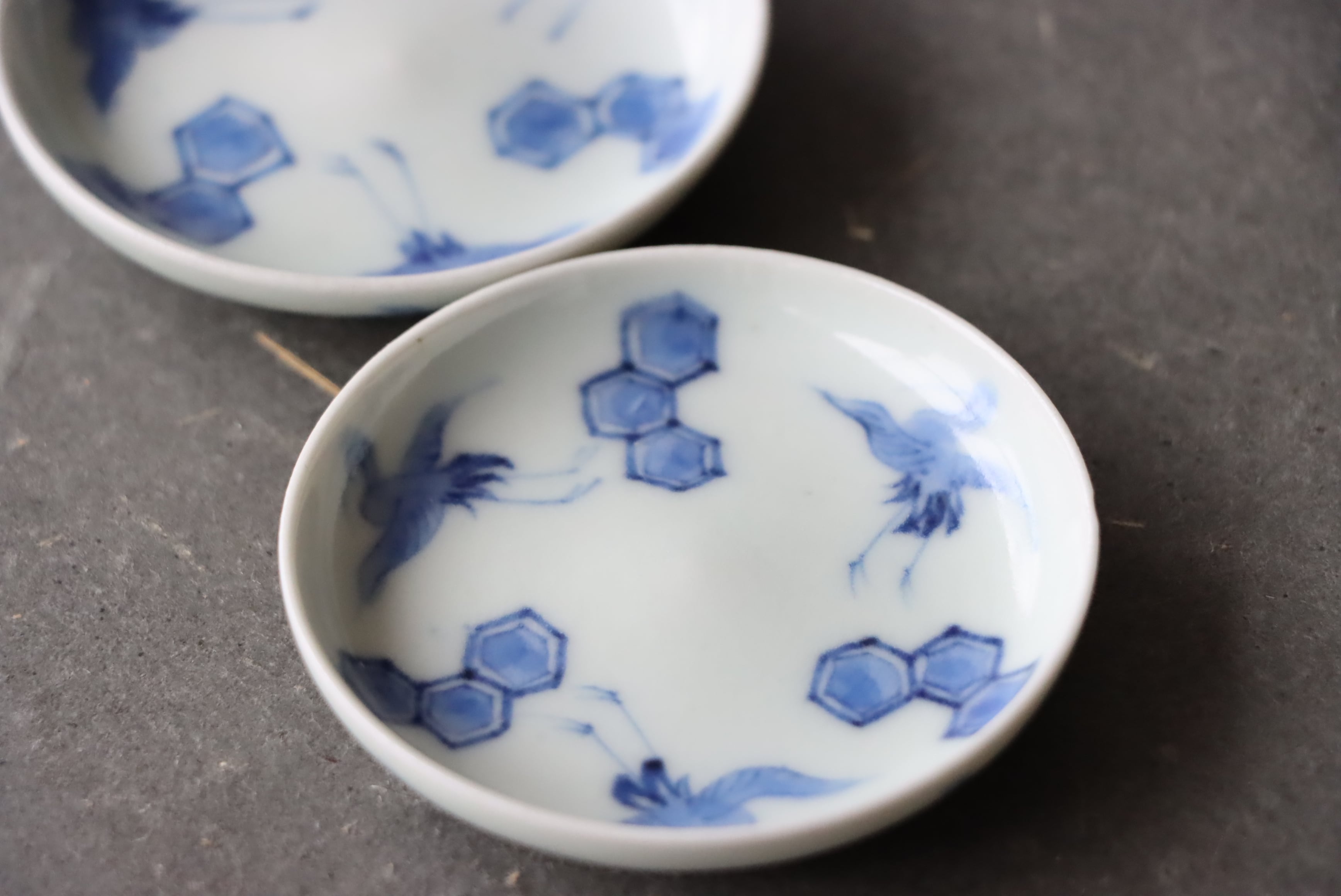 古伊万里 染付 鶴亀甲文 豆皿/Old Imari small plate less than 10cm
