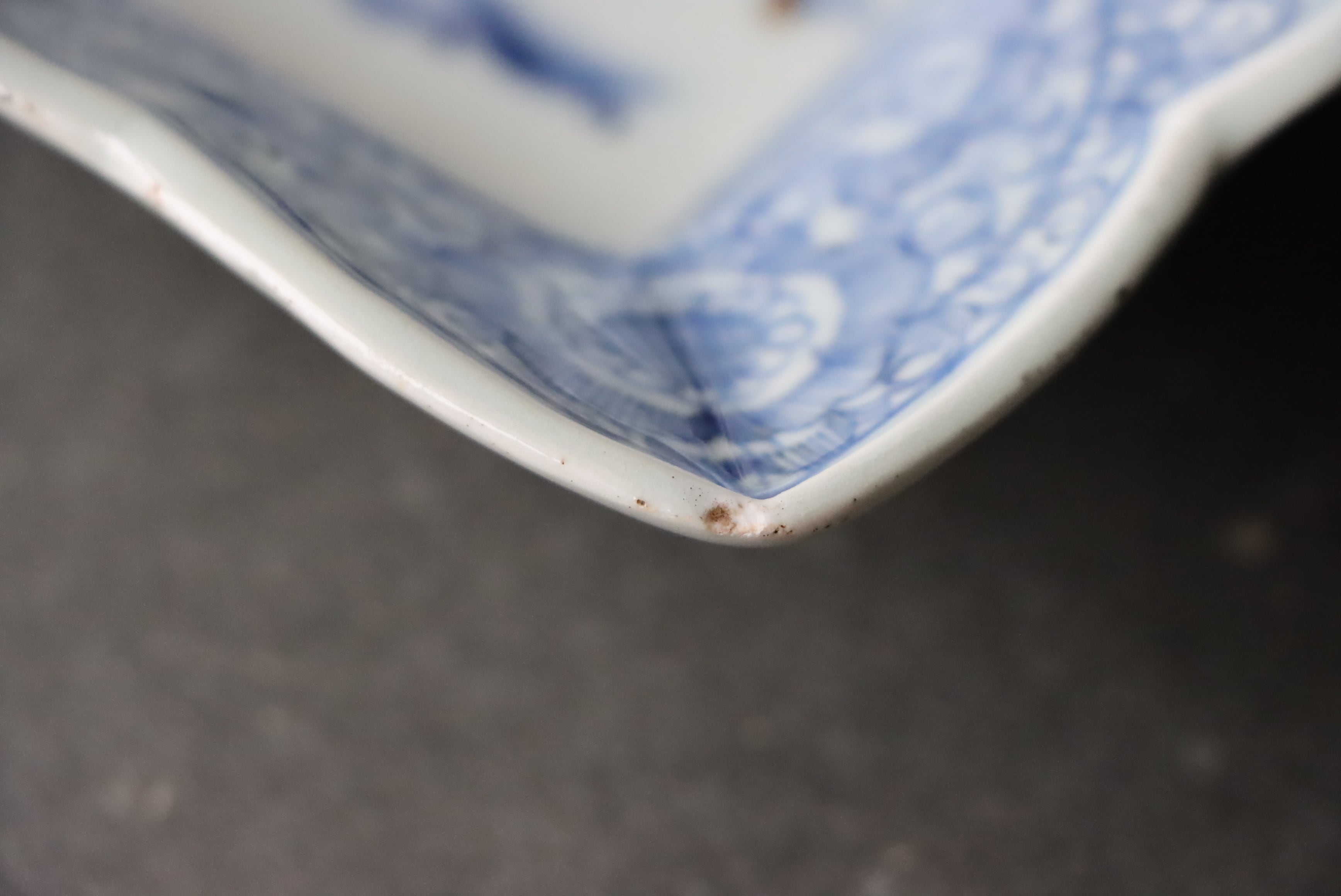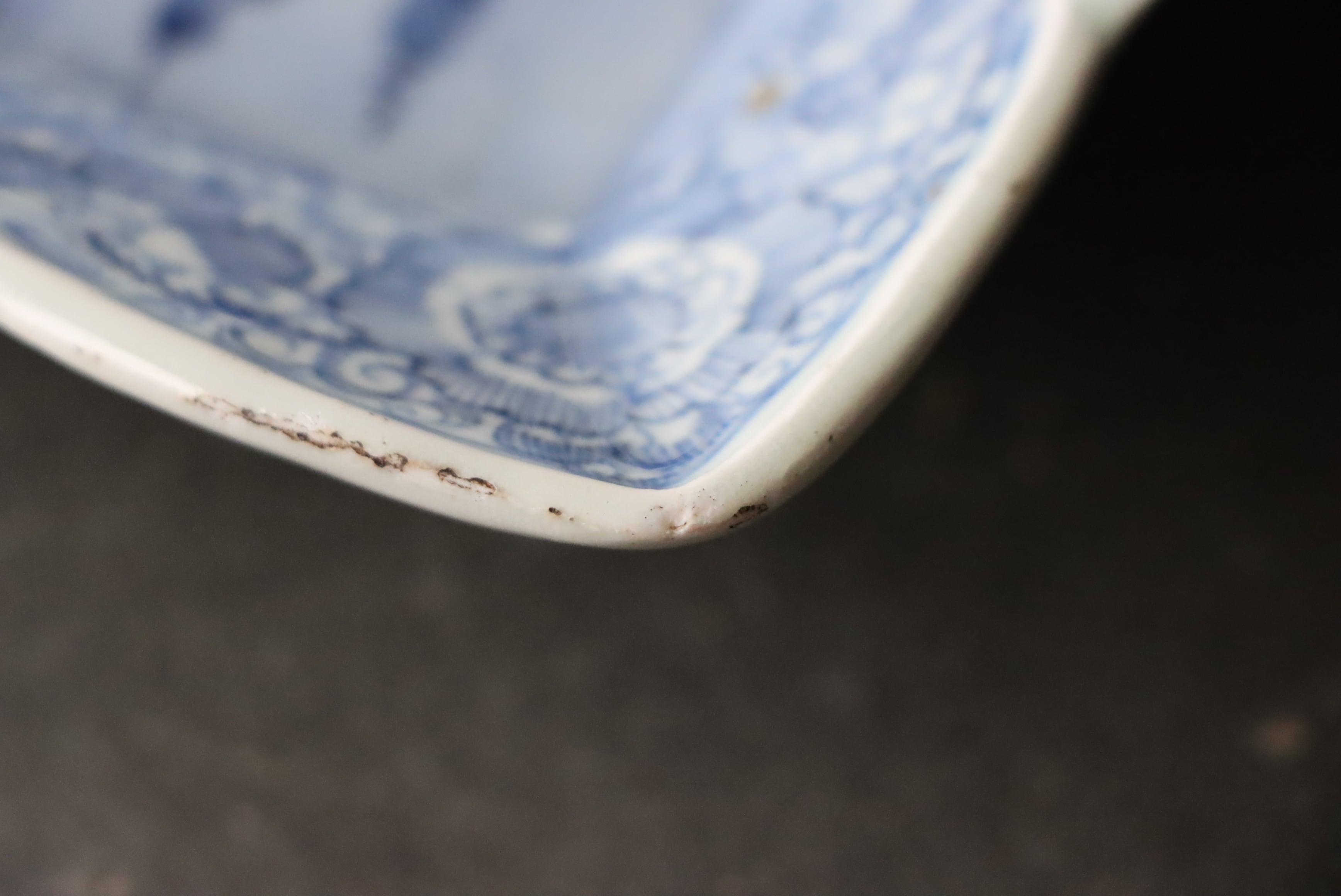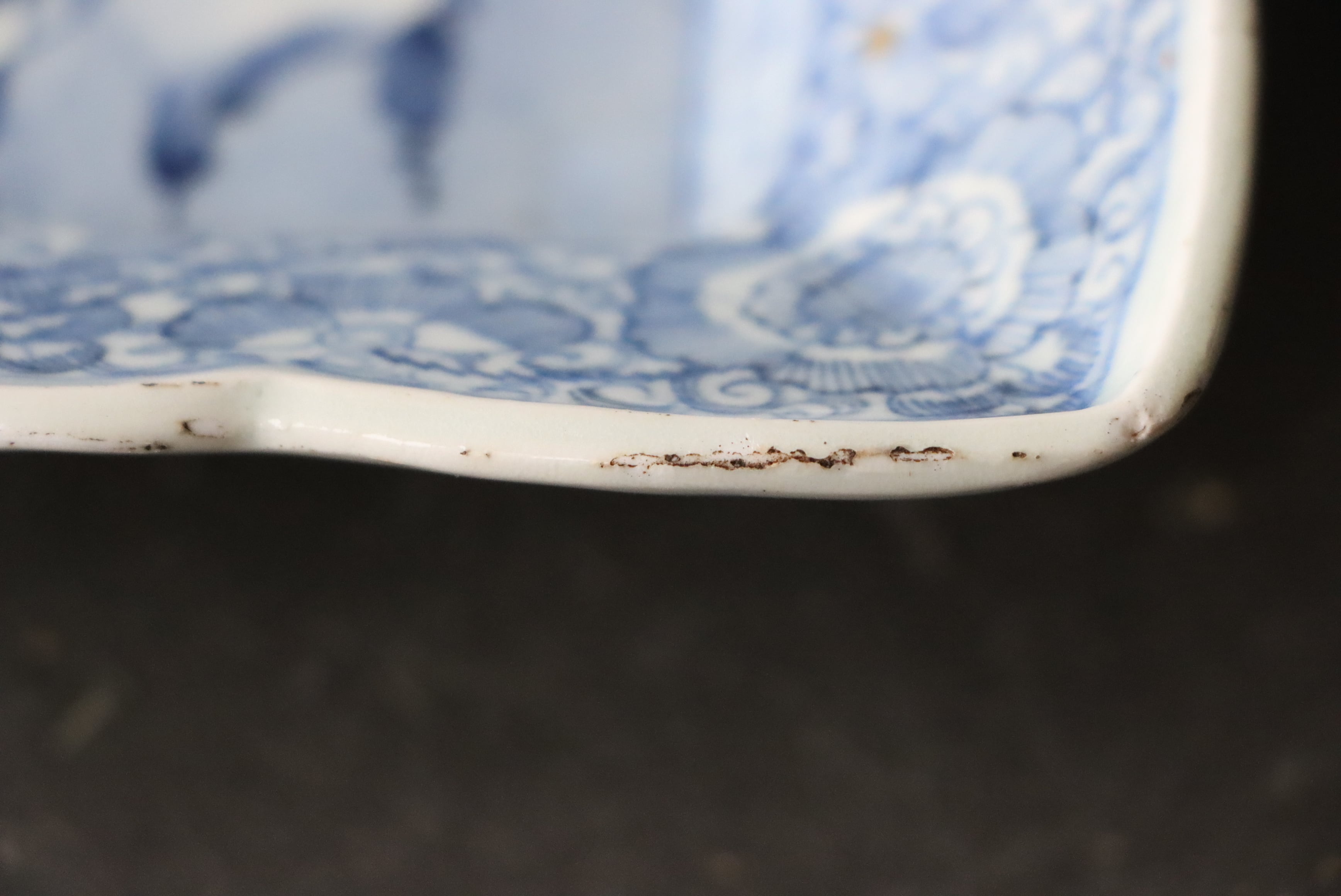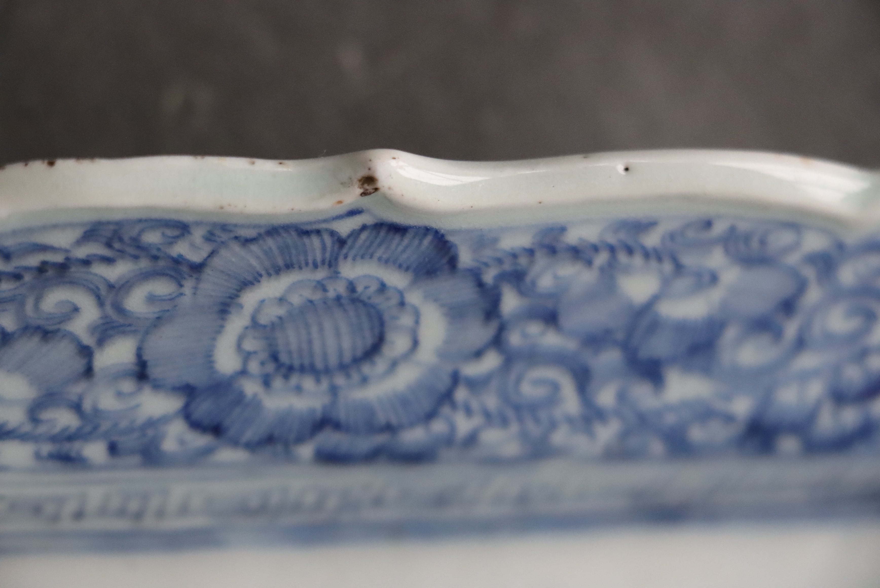 カケ フチソゲ 高台ソゲ 伊万里焼 染付 線描楼閣山水文 長方形 中皿 アウトレット