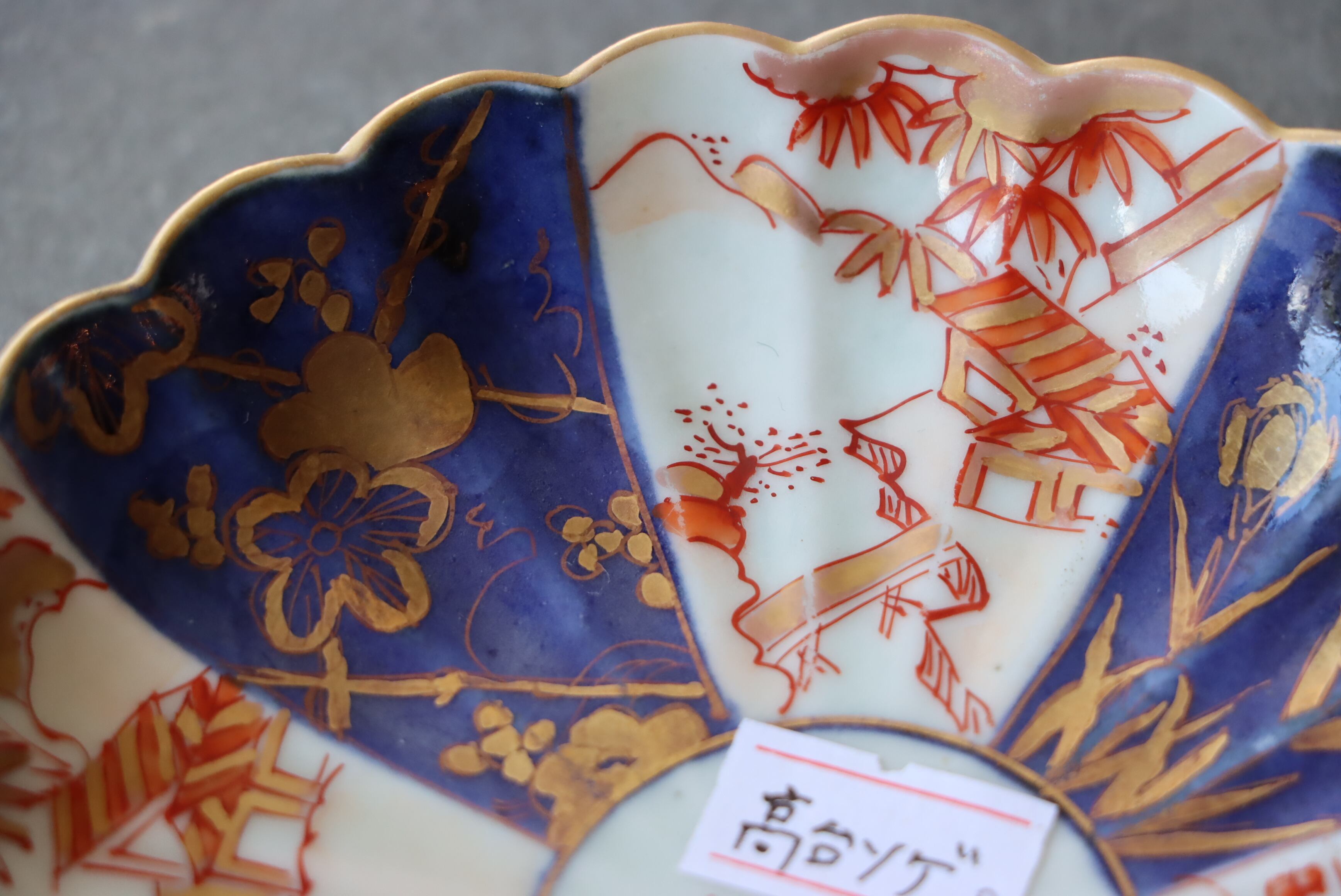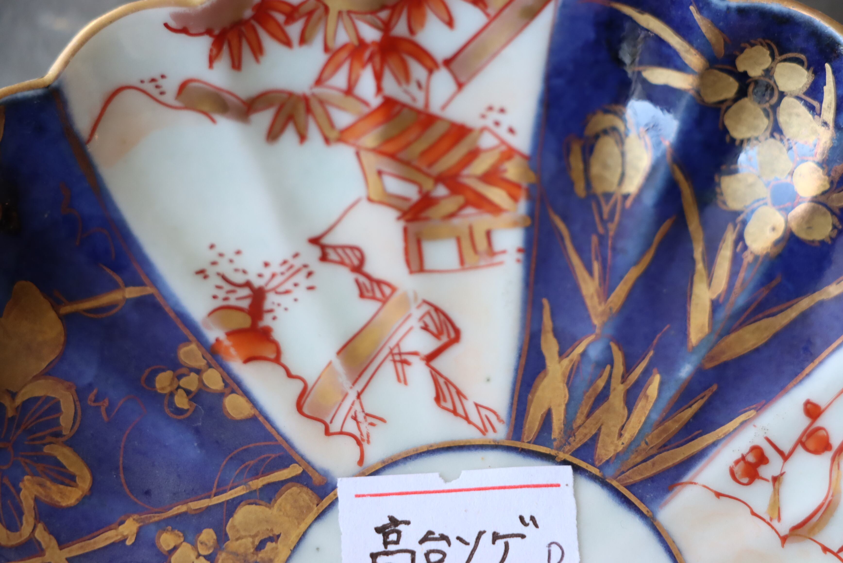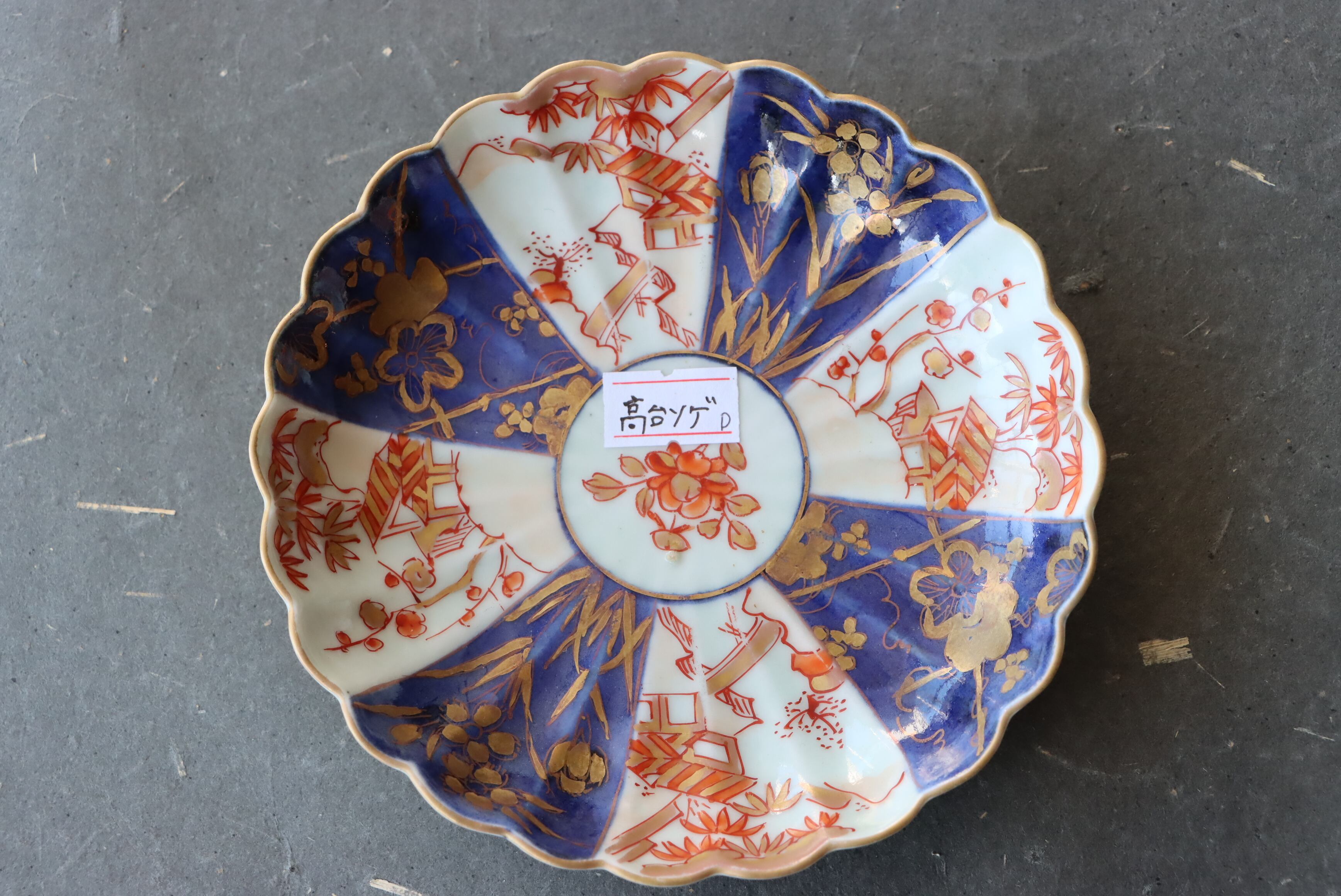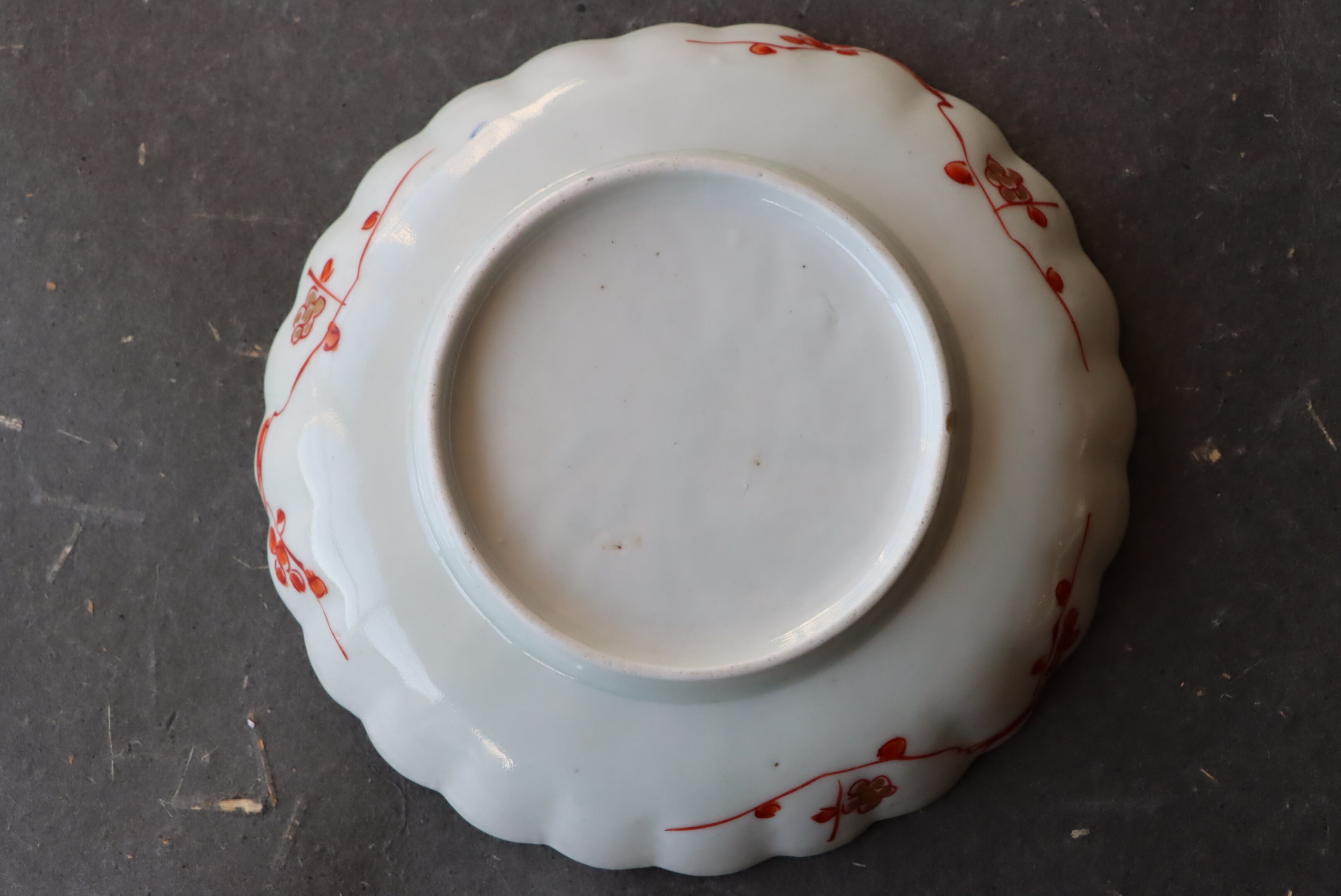 高台ソゲ 古伊万里 色絵 楼閣山水文 輪花 小皿 D アウトレット