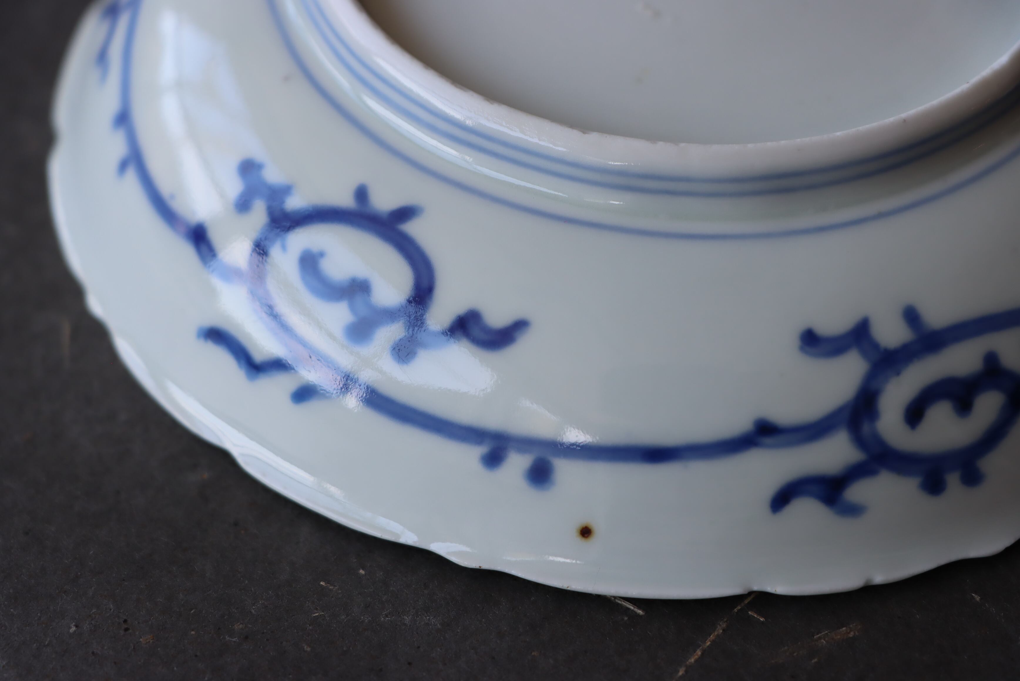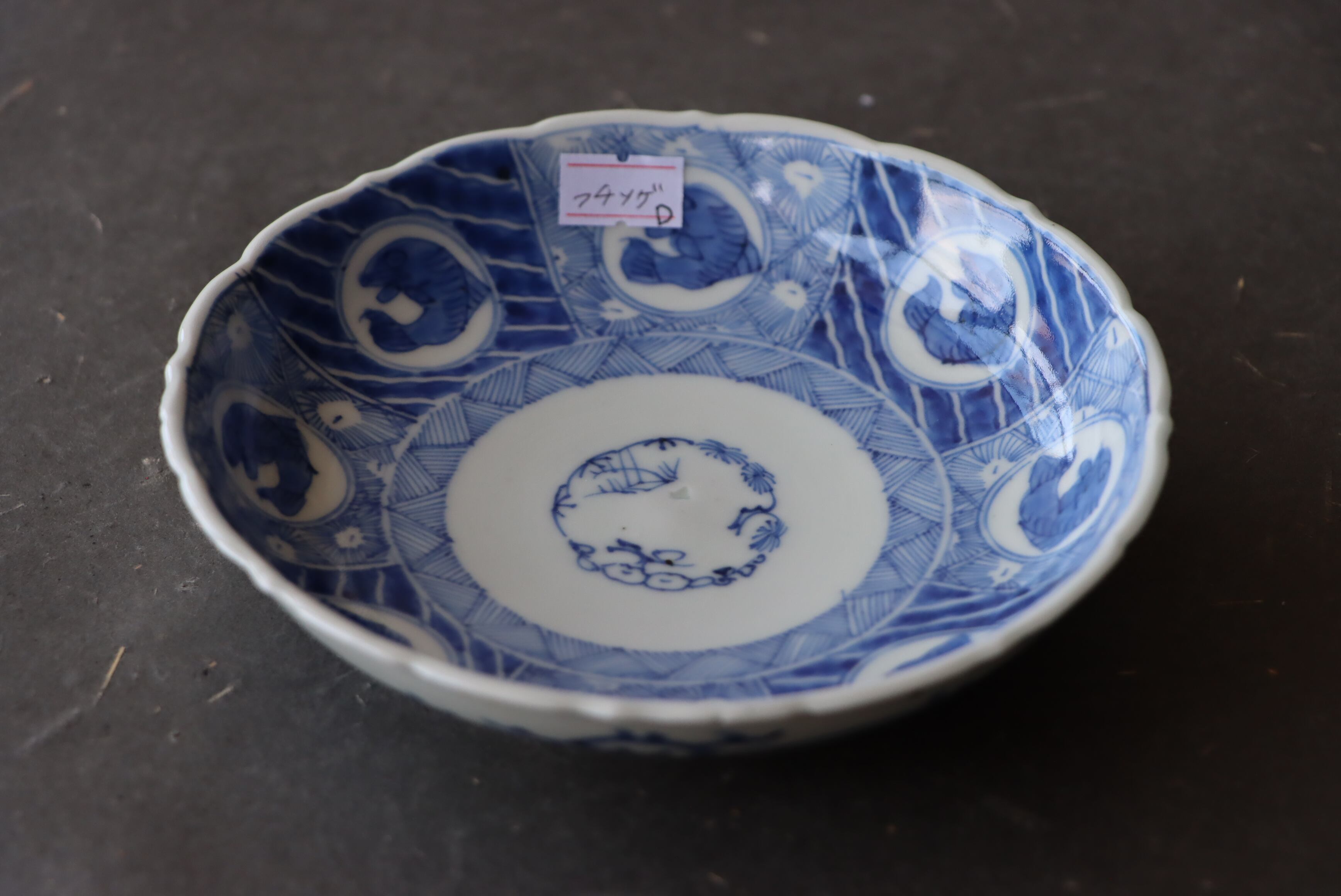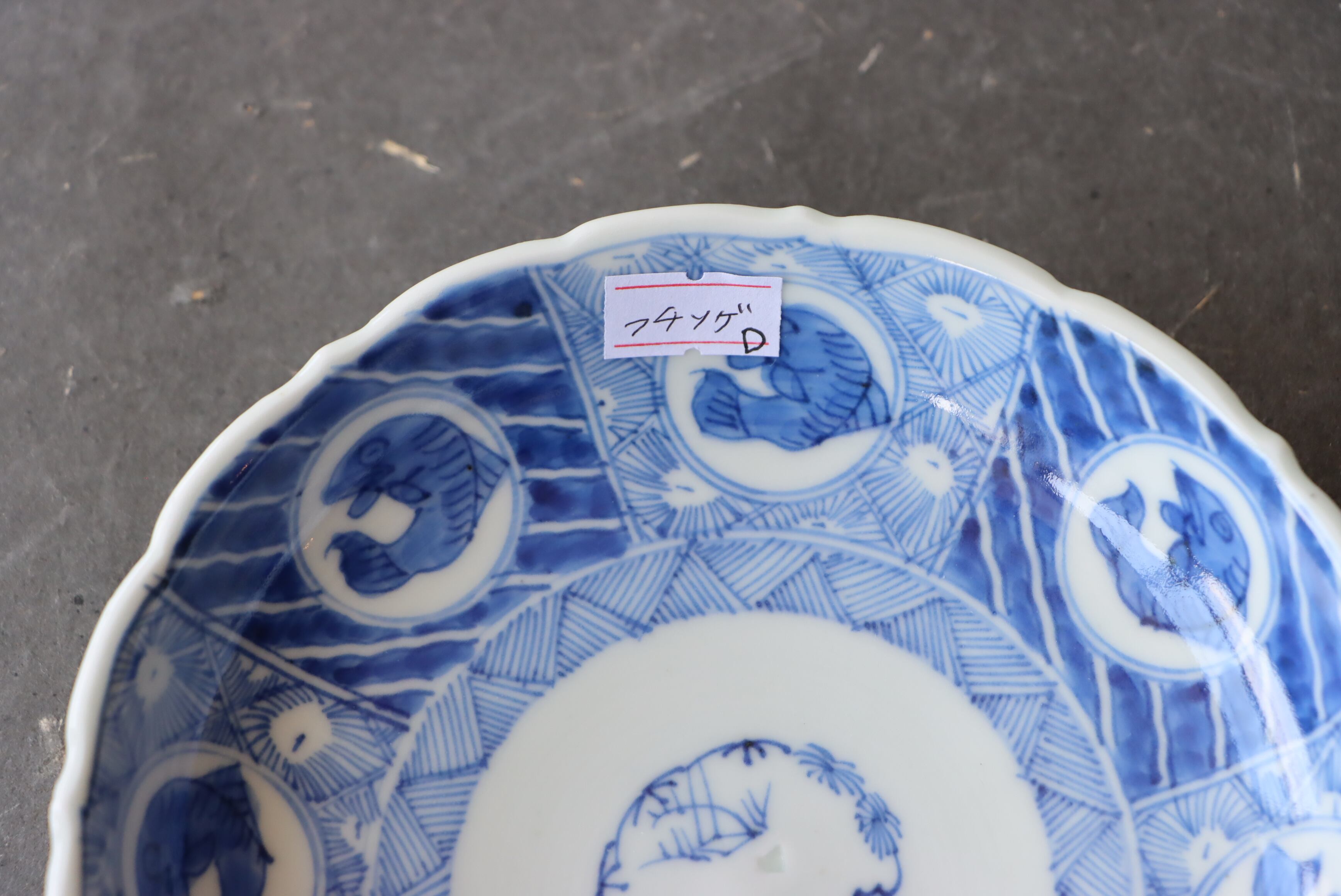 フチソゲ 染付 芙蓉手 魚文 平向付 D アウトレット