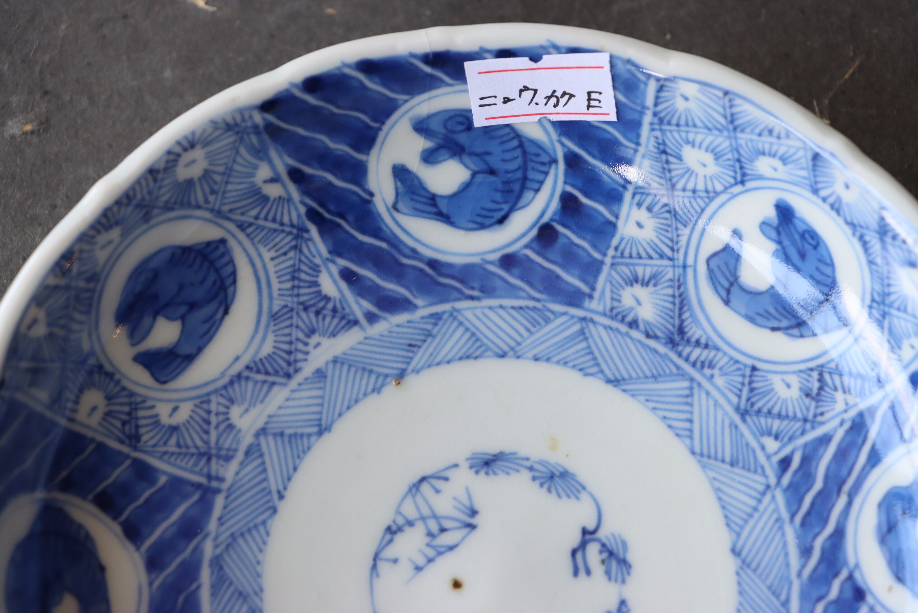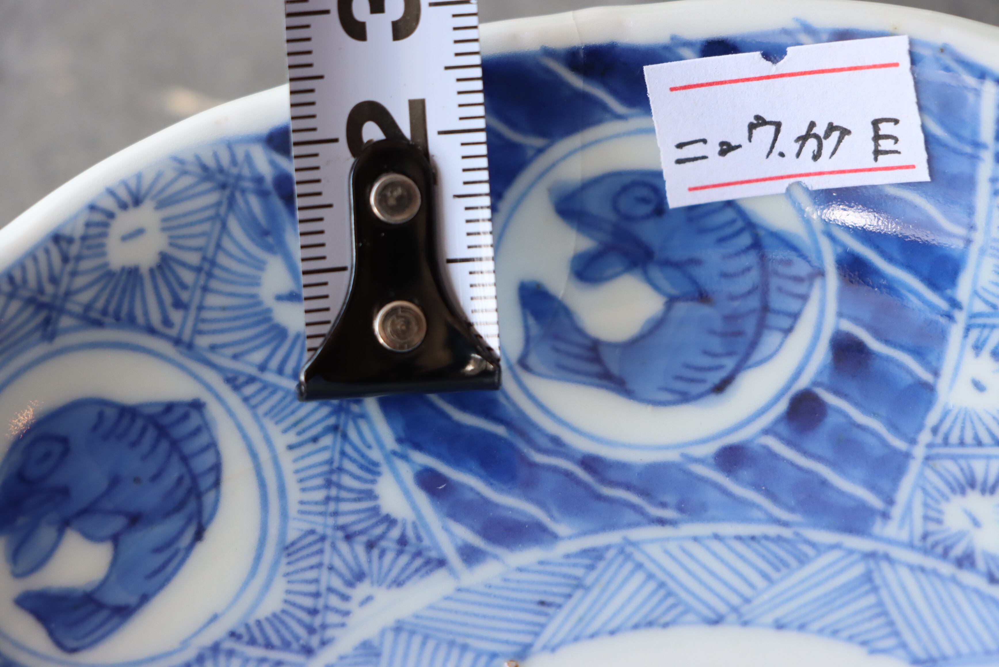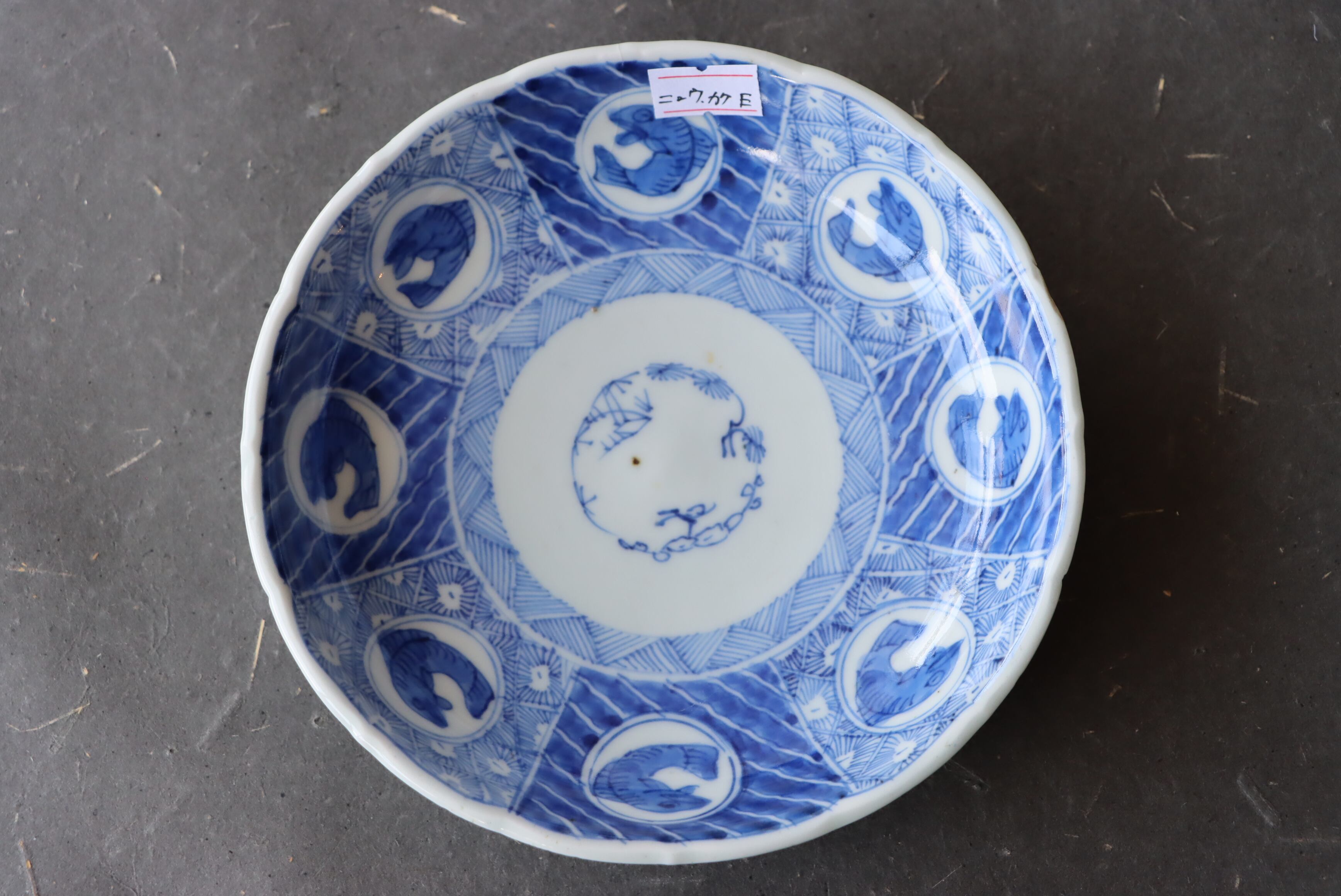 焼成時に窯の中でできる鉄分、くっつき、かまきず、ピンホール、経年による釉薬の薄れがございます。また、一枚一枚手描き、手作りですので器のサイズ(ミリ)、色味、描かれている文様の大きさなど個体差があり、ひとつとして同じものはございません。そういった時代感、個性をご理解いただき、楽しんでくだされば幸いです。電子レンジや食器洗い乾燥機のご使用はお控えください。
