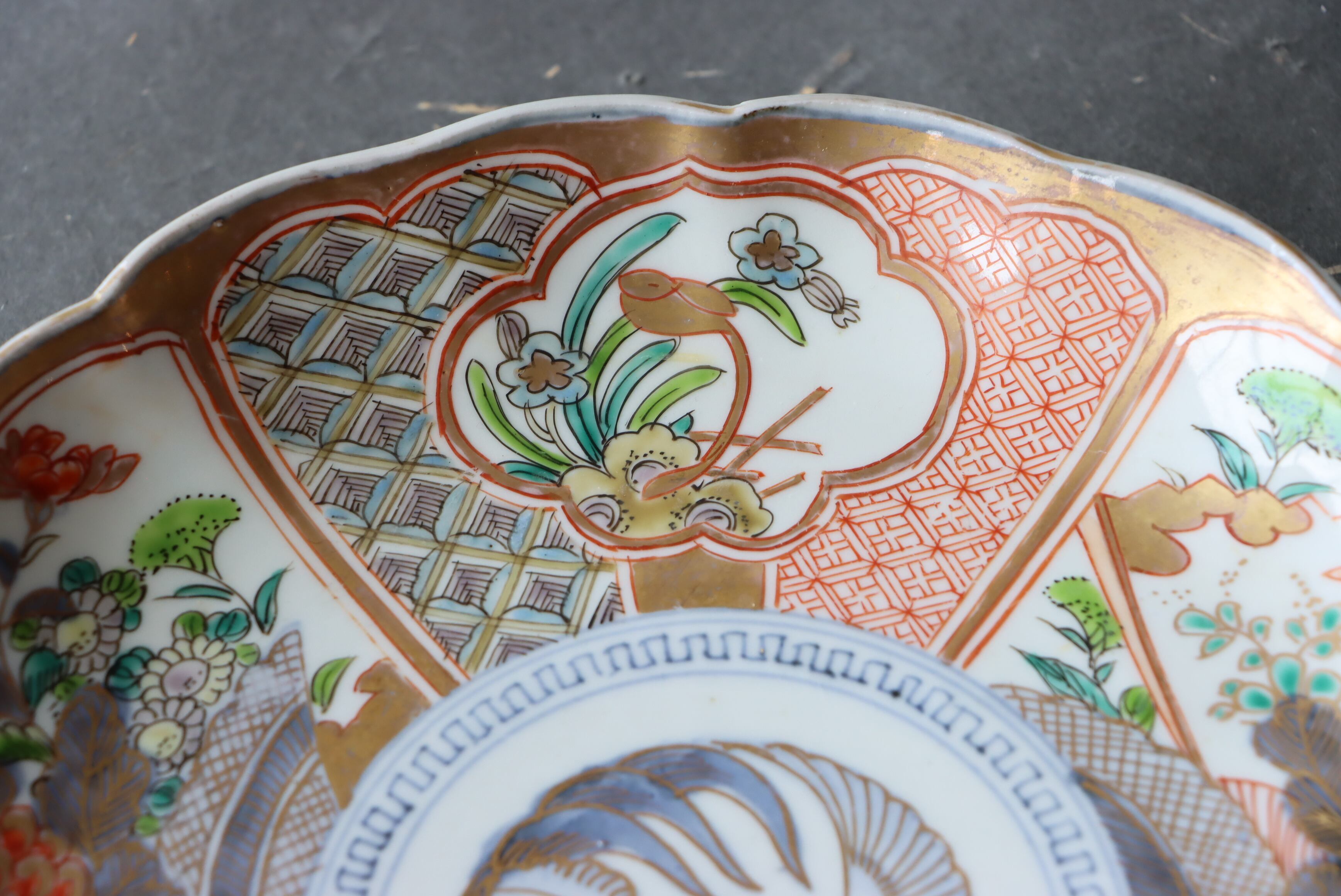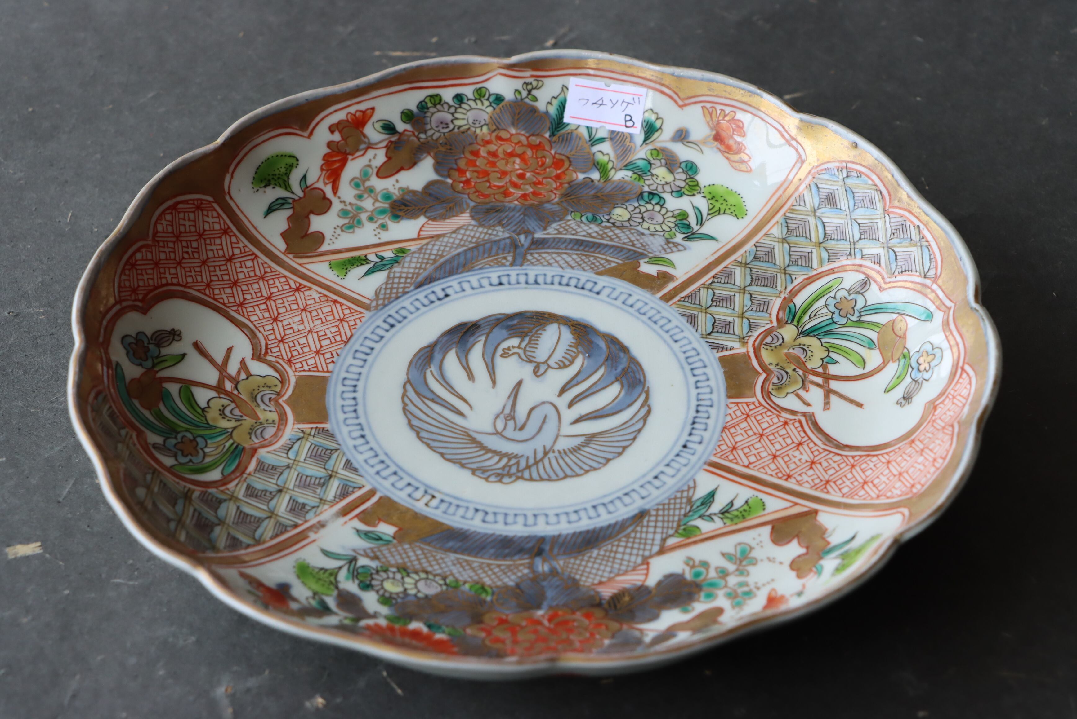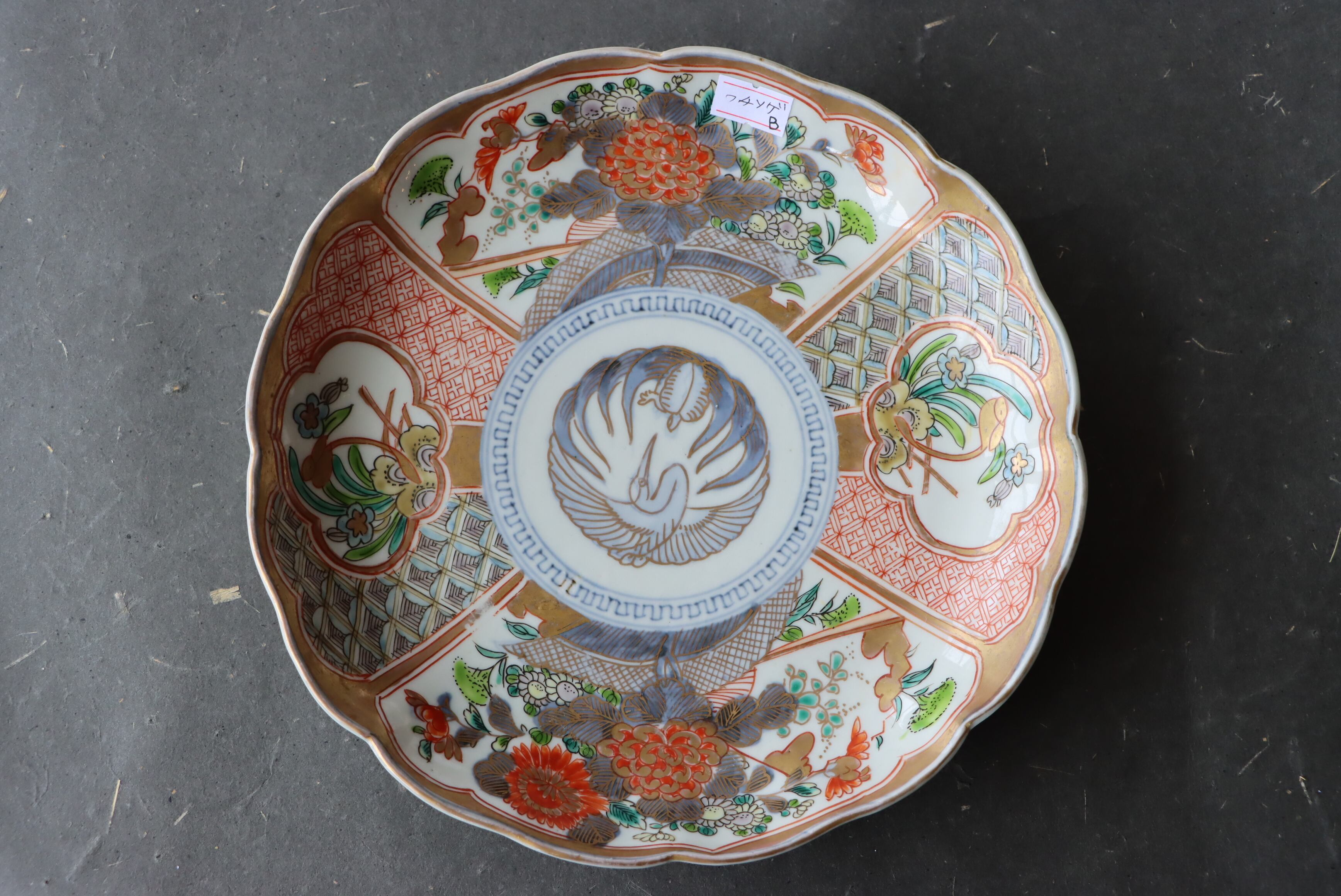 フチソゲ 伊万里焼 色絵 鶴亀花鳥文 中皿 七寸 通りもの B アウトレット