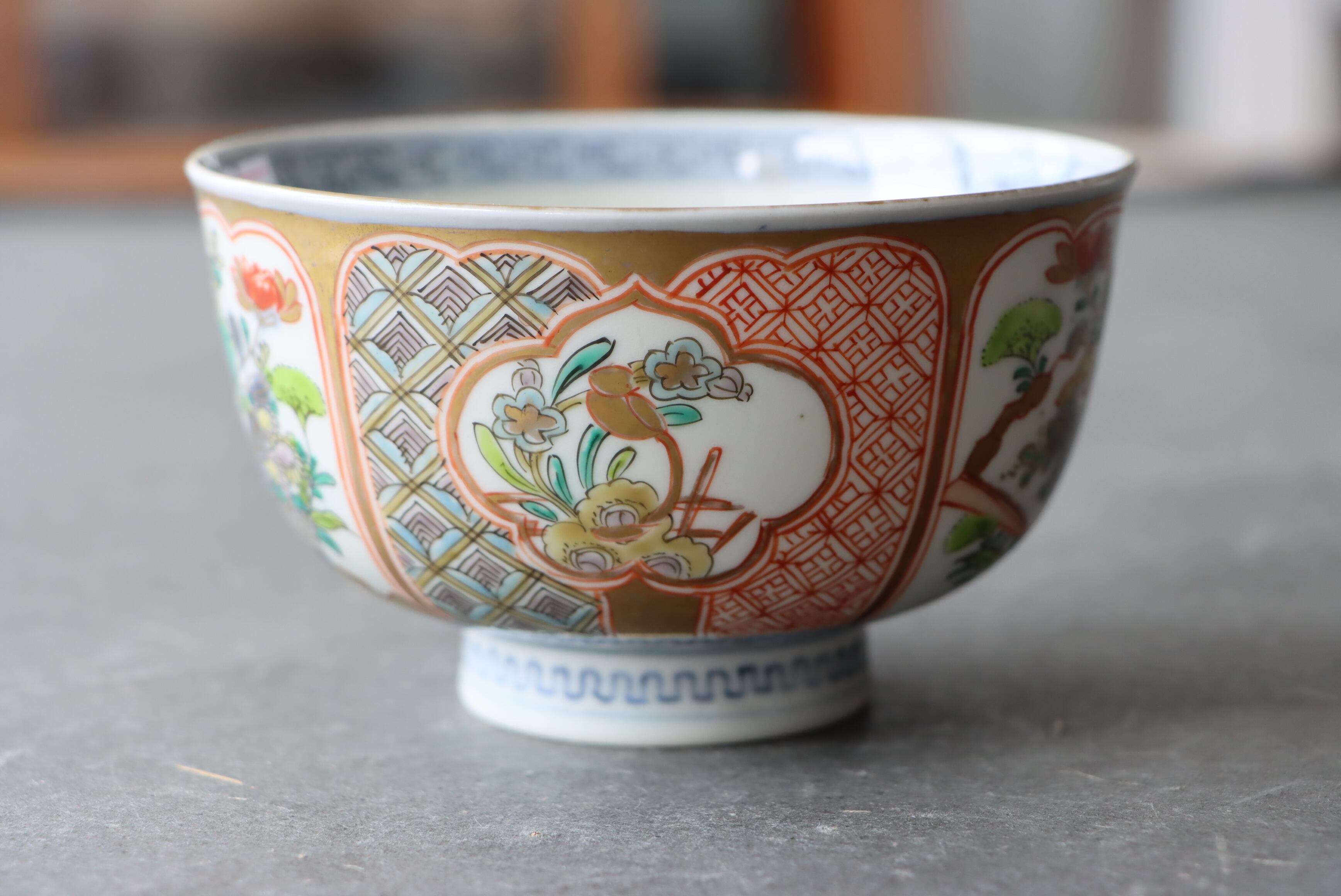 焼成時に窯の中でできる鉄分、くっつき、かまきず、ピンホール、経年による釉薬の薄れがございます。また、一枚一枚手描き、手作りですので器のサイズ(ミリ)、色味、描かれている文様の大きさなど個体差があり、ひとつとして同じものはございません。そういった時代感、個性をご理解いただき、楽しんでくだされば幸いです。電子レンジや食器洗い乾燥機のご使用はお控えください。
