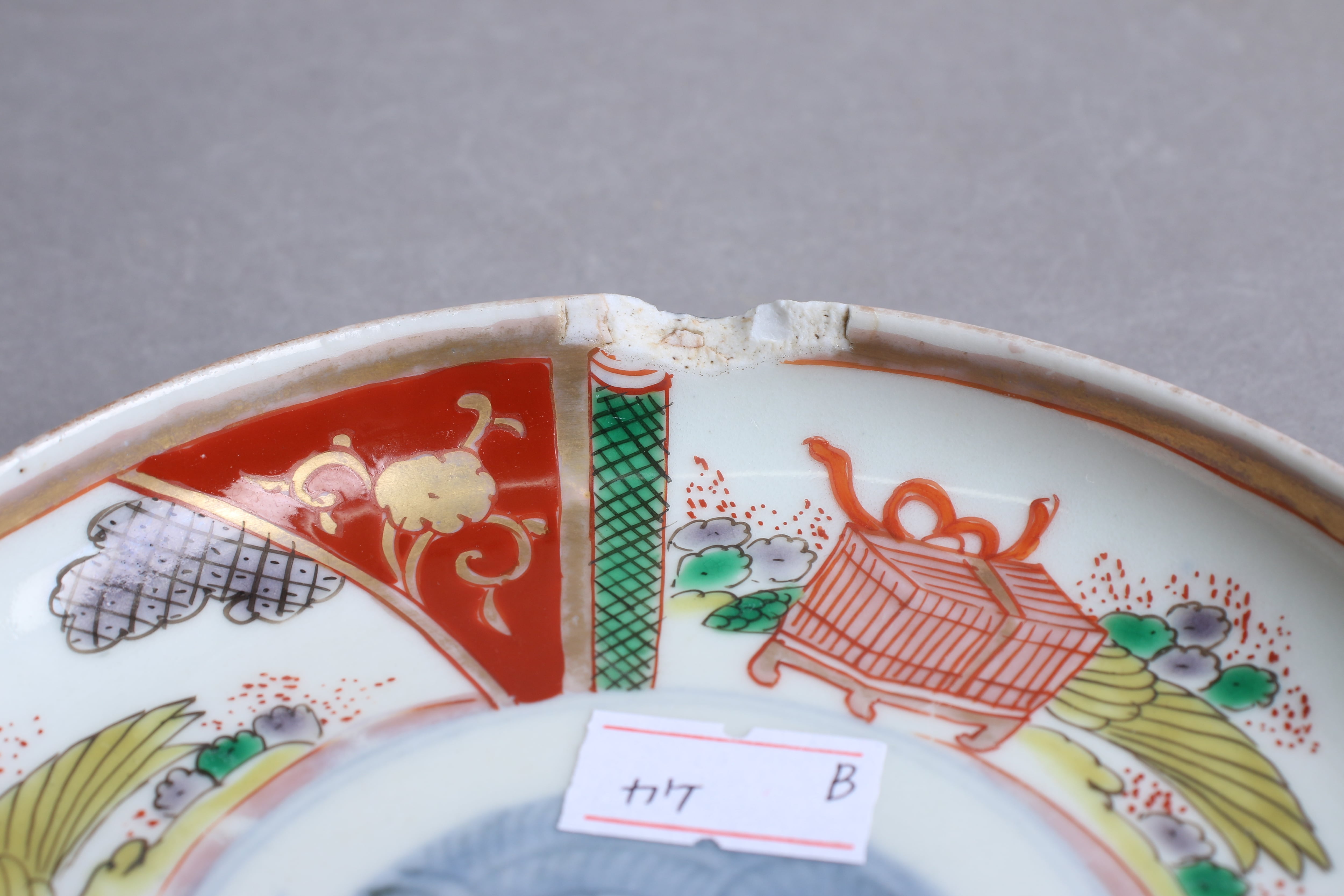 状態:カケ(約2.5センチ)あり。口縁に施された金彩が一部剥離、及び、薄くなっています。お写真で状態をご確認ください。
