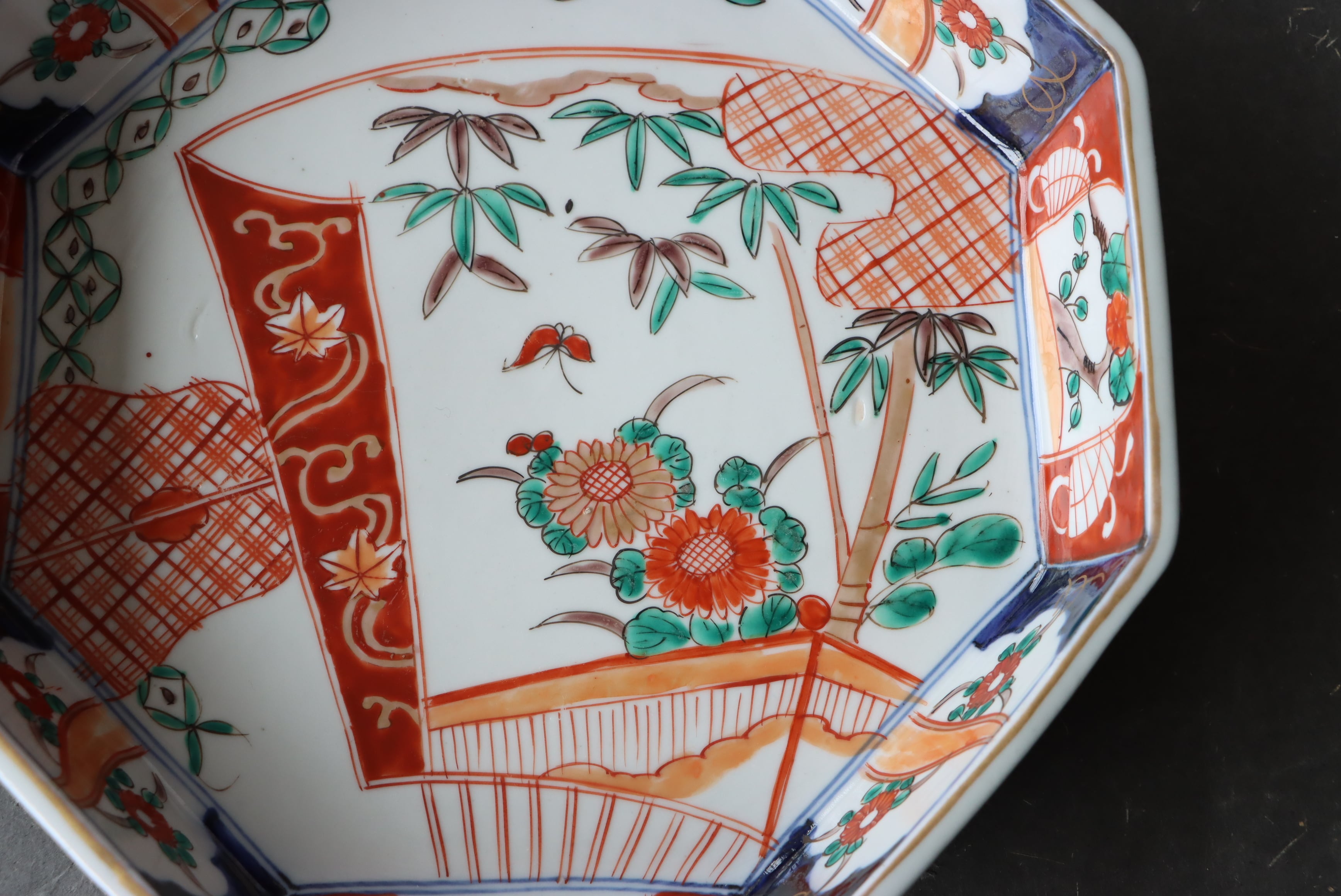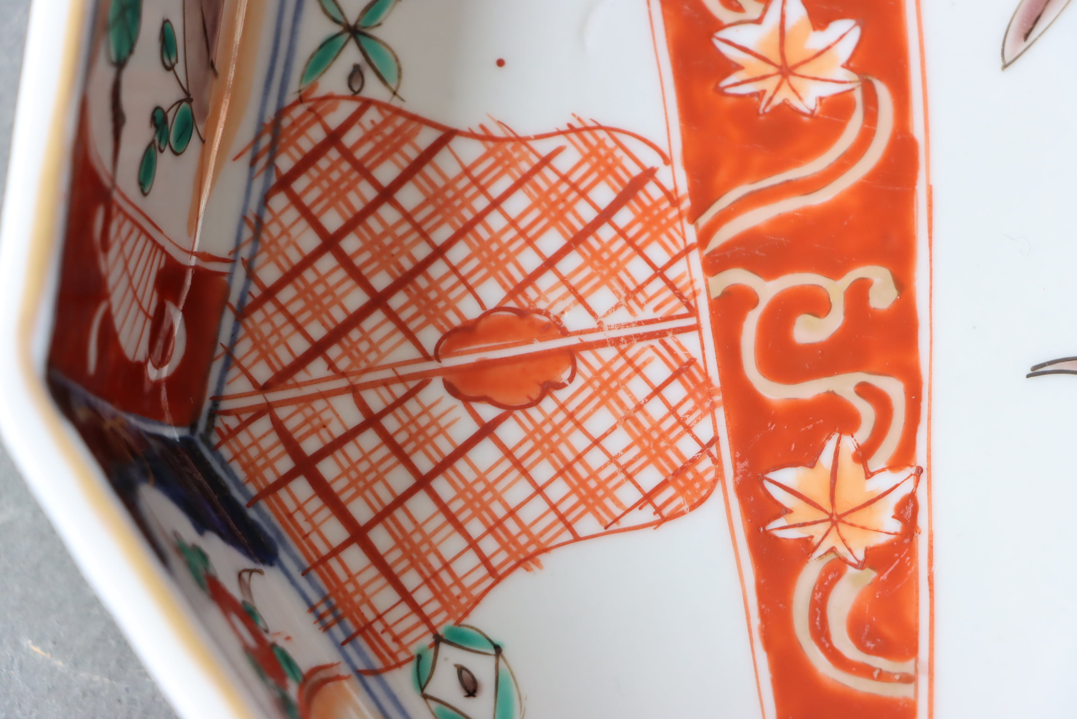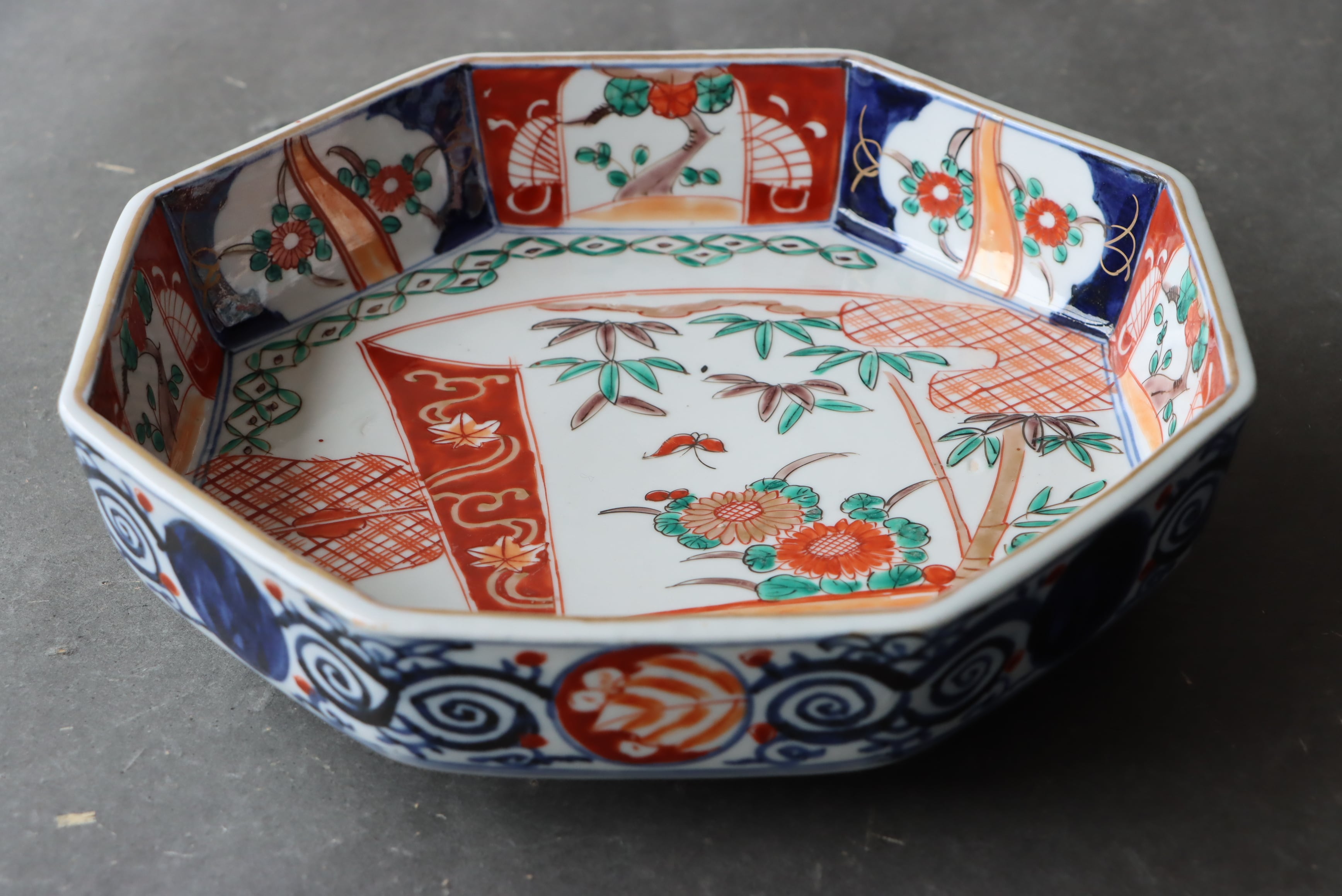 伊万里焼 色絵 扇面軍配花文 八角形 平鉢/Imari bowl