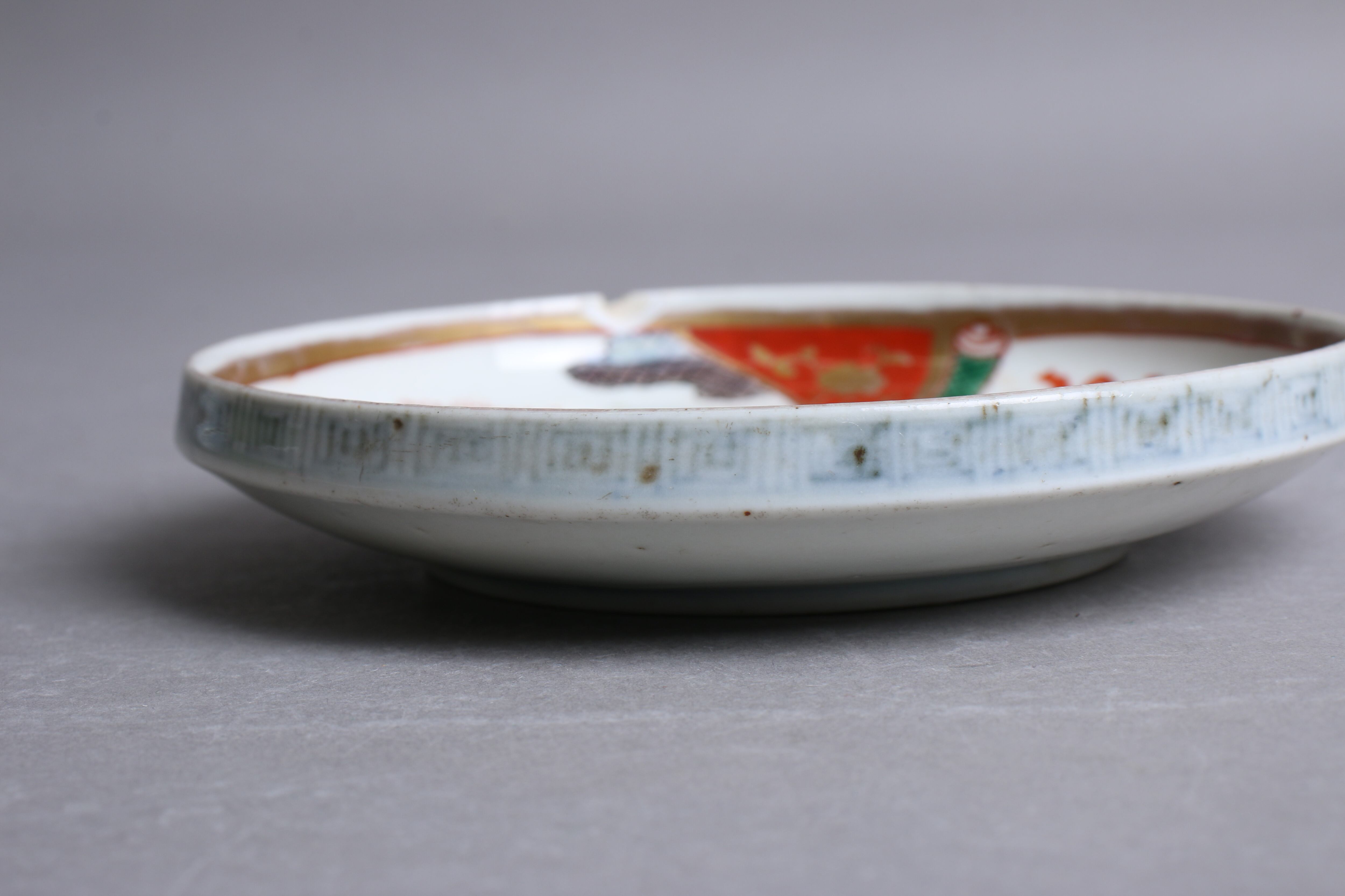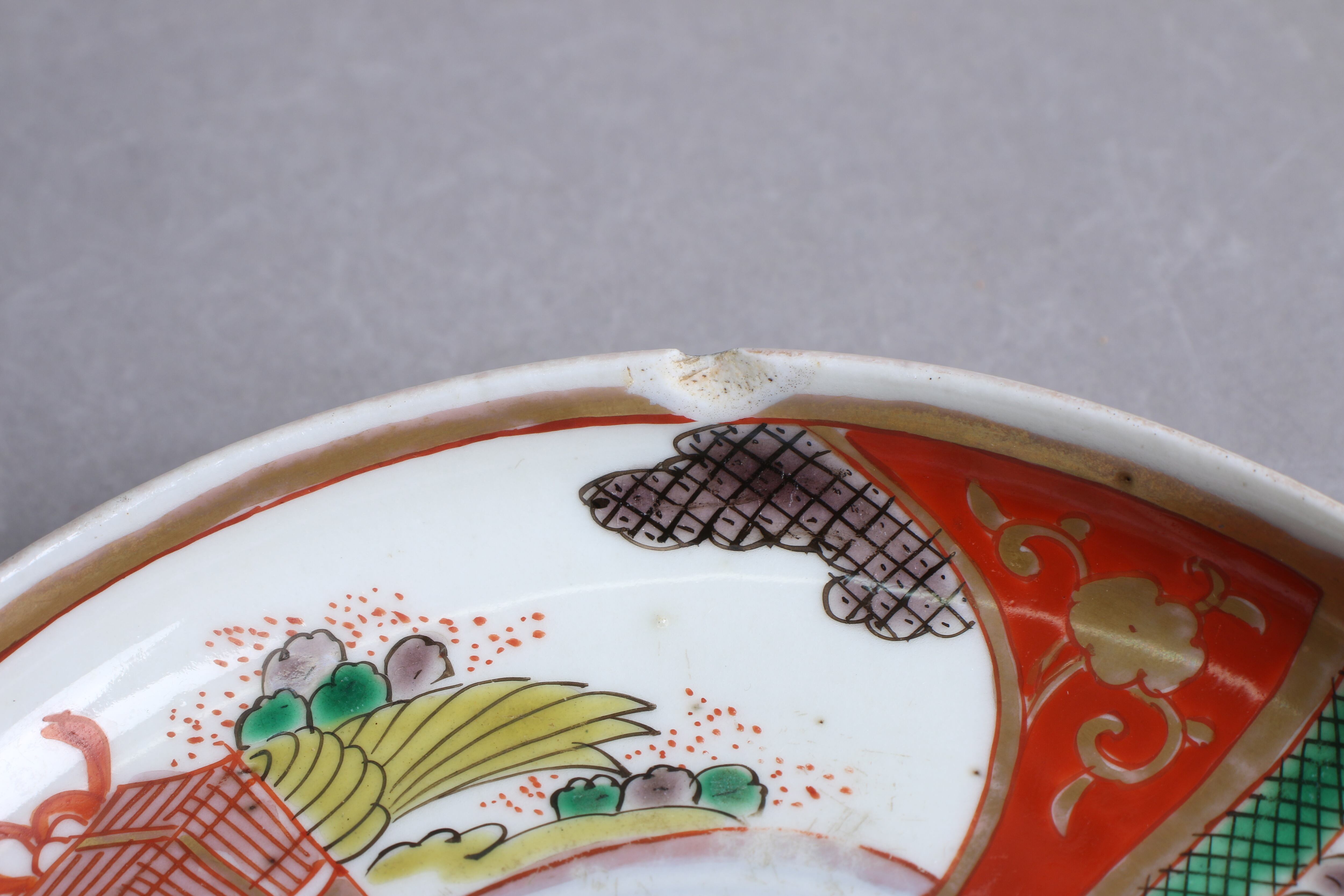 状態:カケ(約1.5センチ)あり。口縁に施された金彩が一部剥離、及び、薄くなっています。お写真で状態をご確認ください。