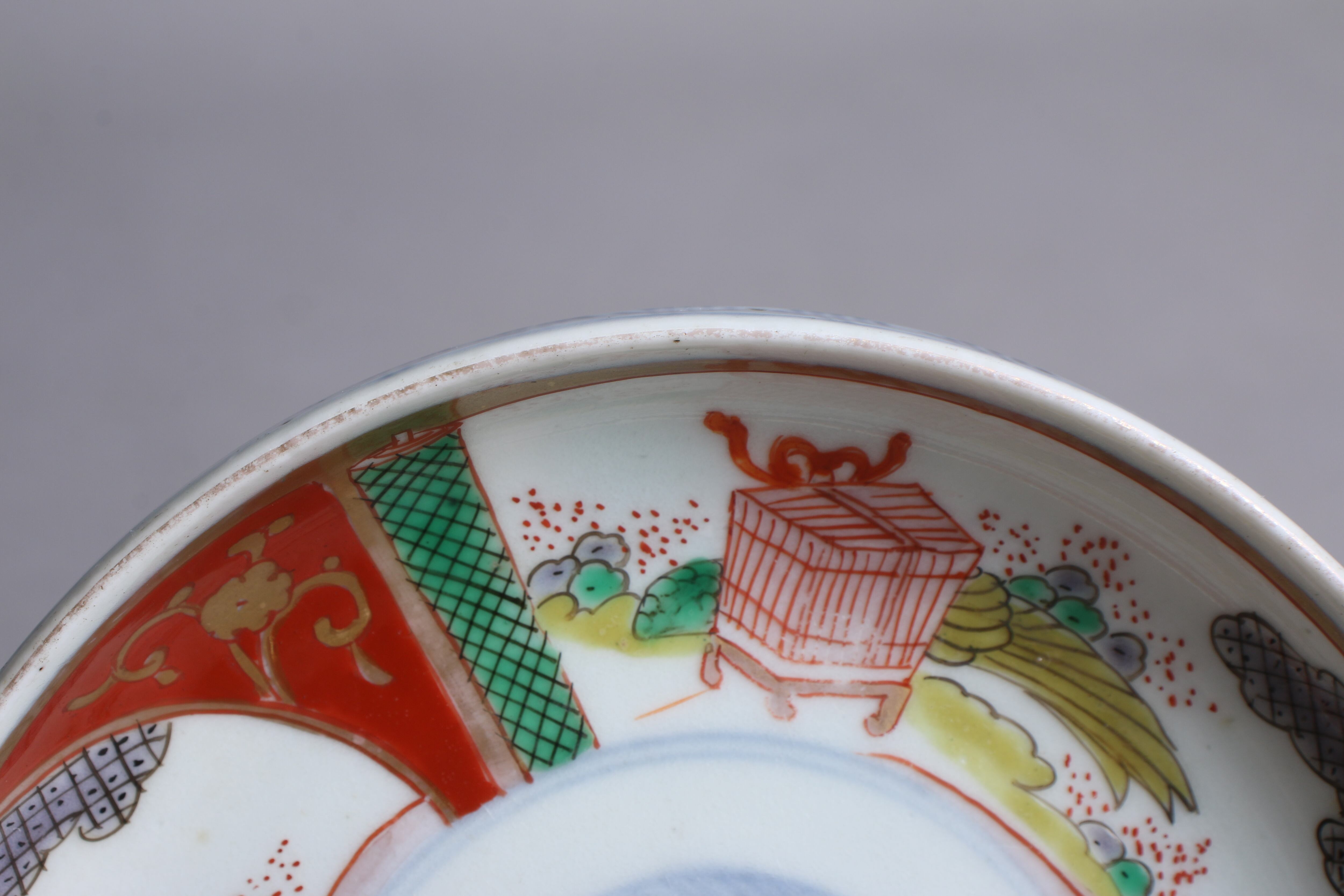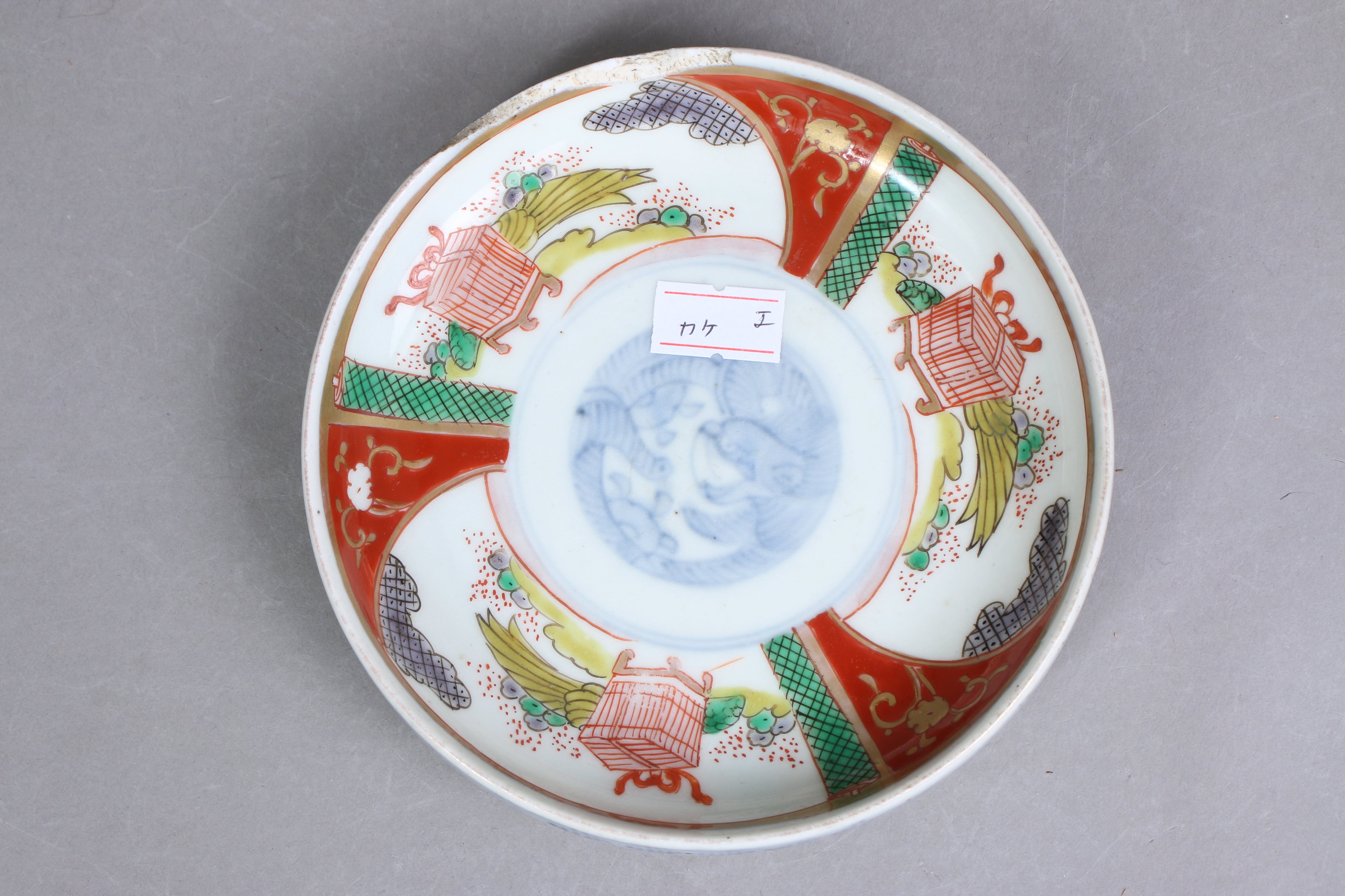 状態:カケ(約5.5センチ)あり。口縁に施された金彩が一部剥離、及び、薄くなっています。お写真で状態をご確認ください。
