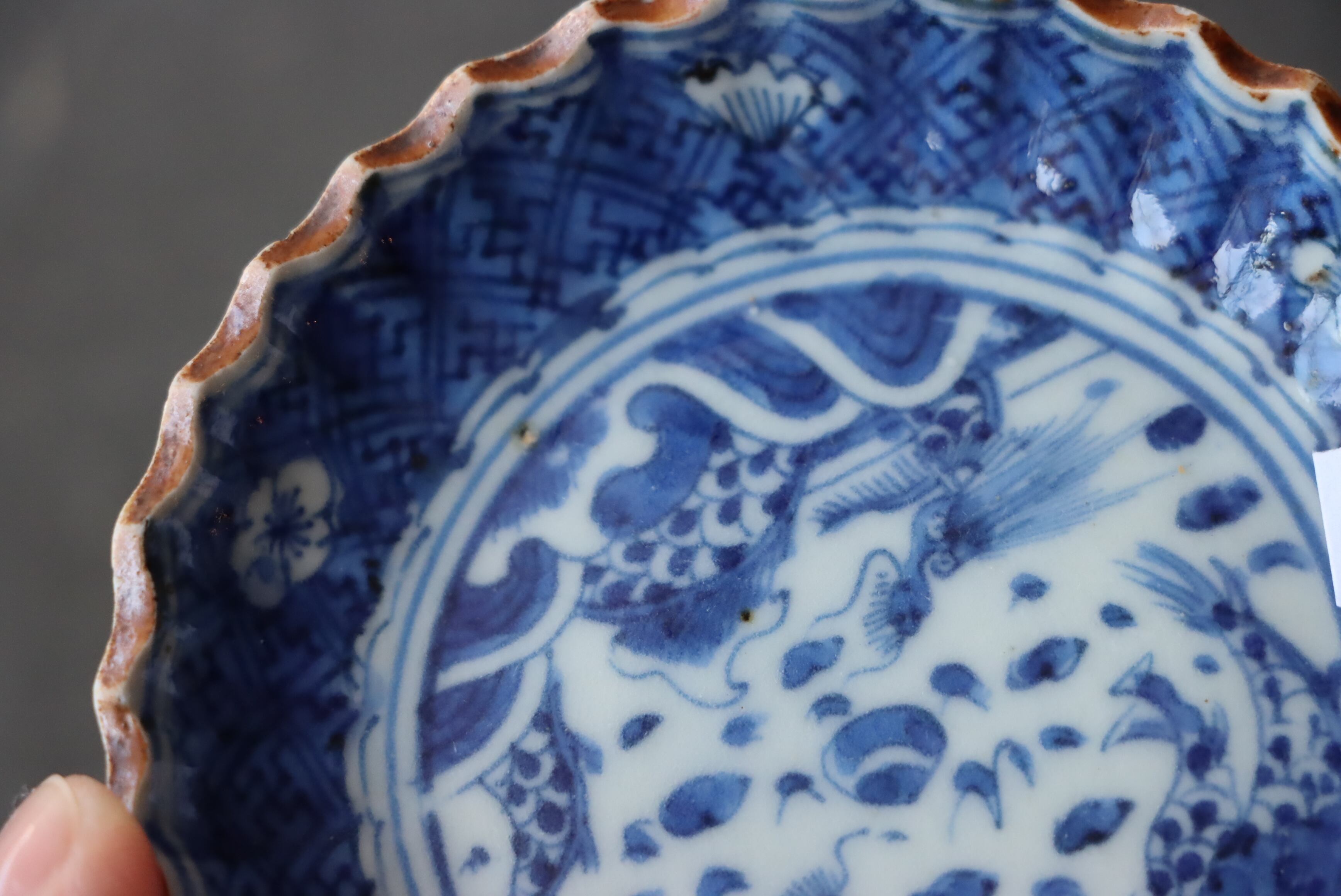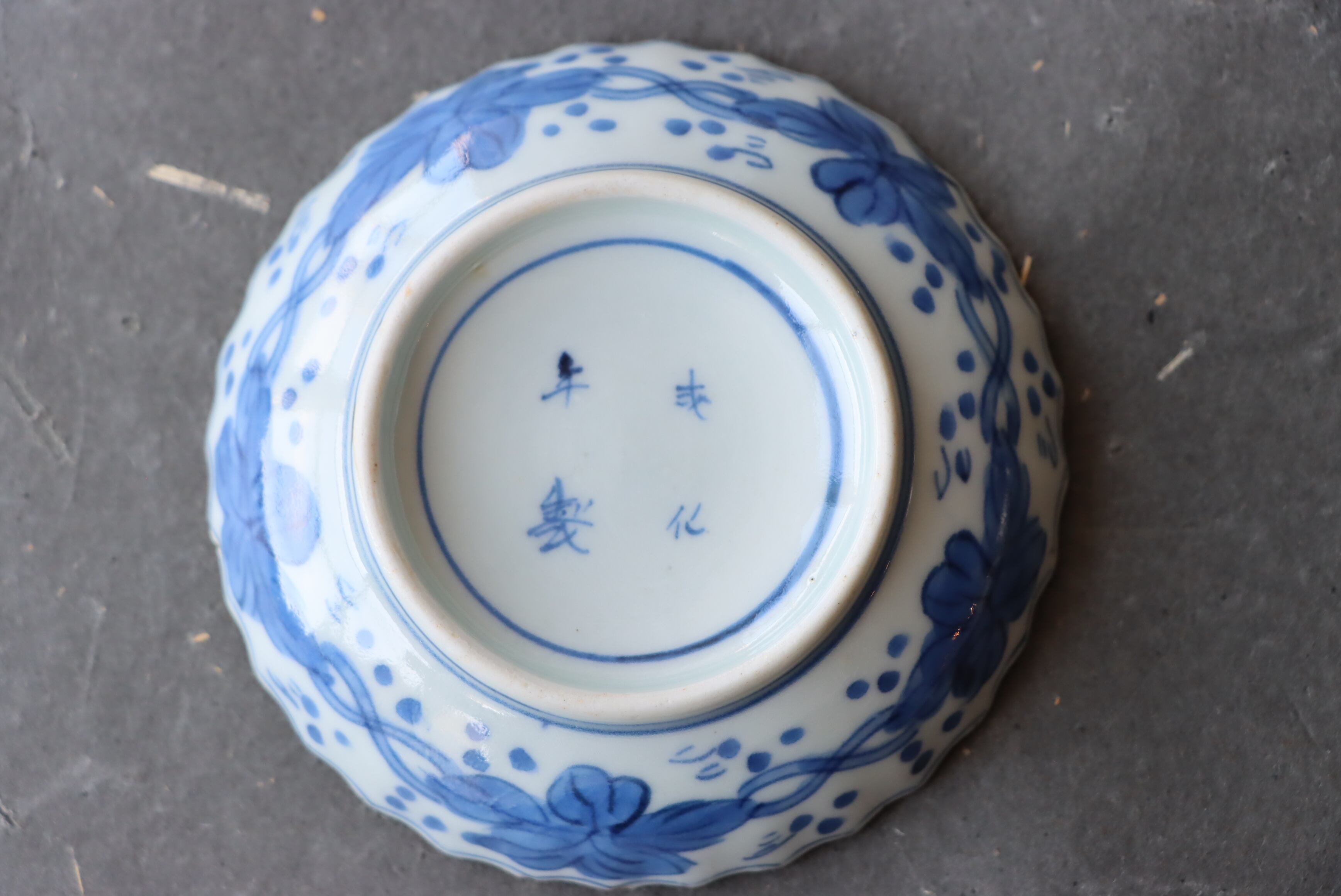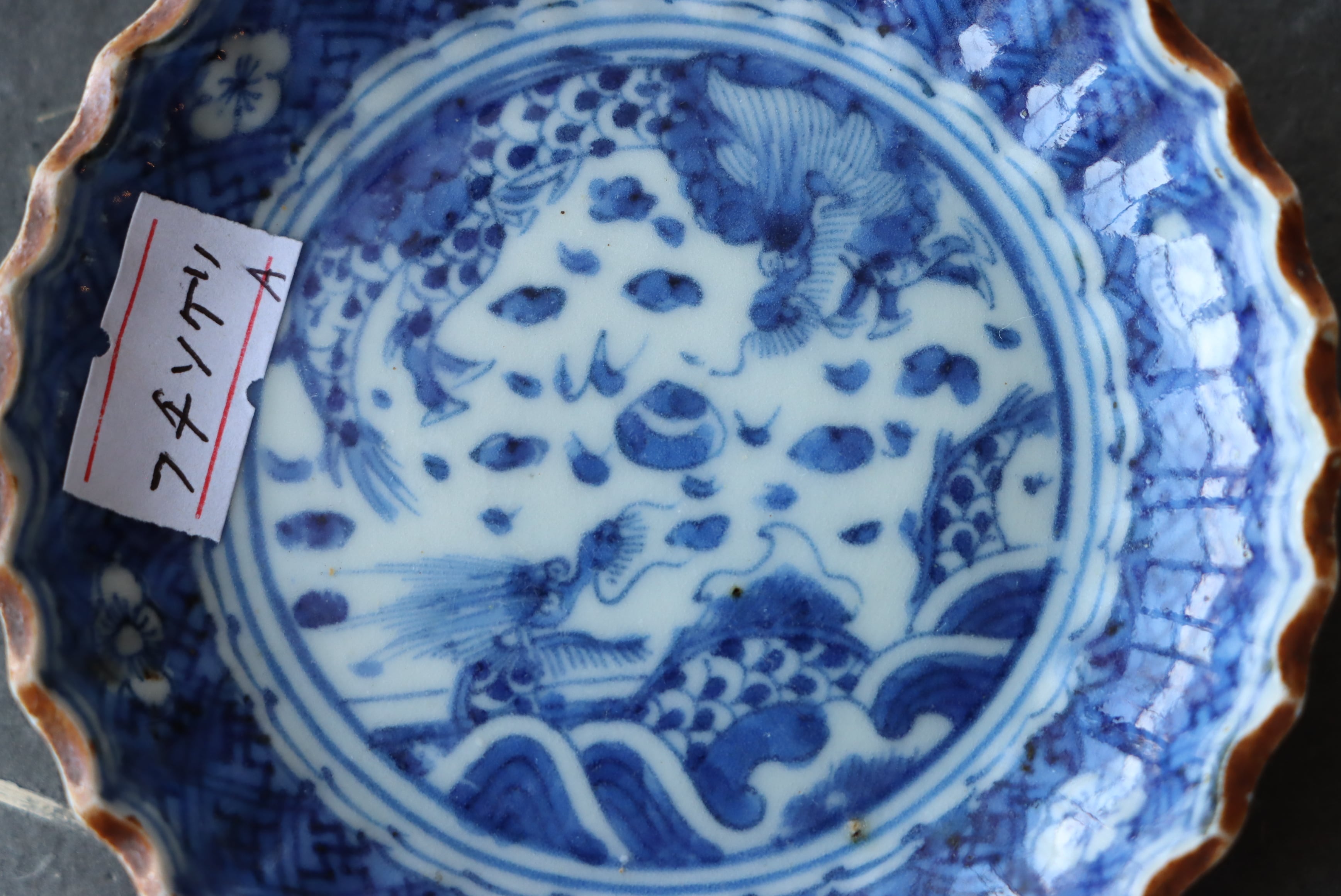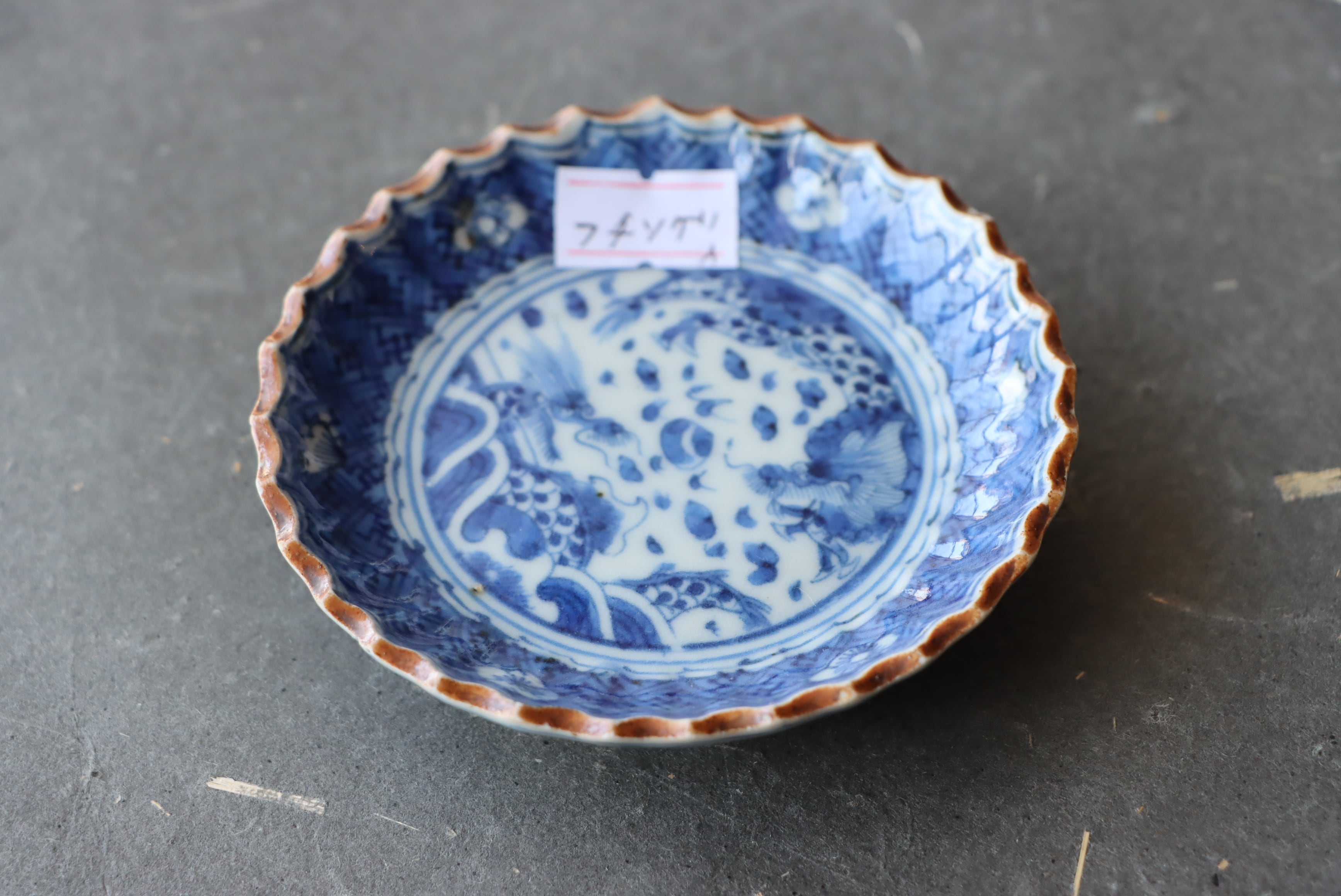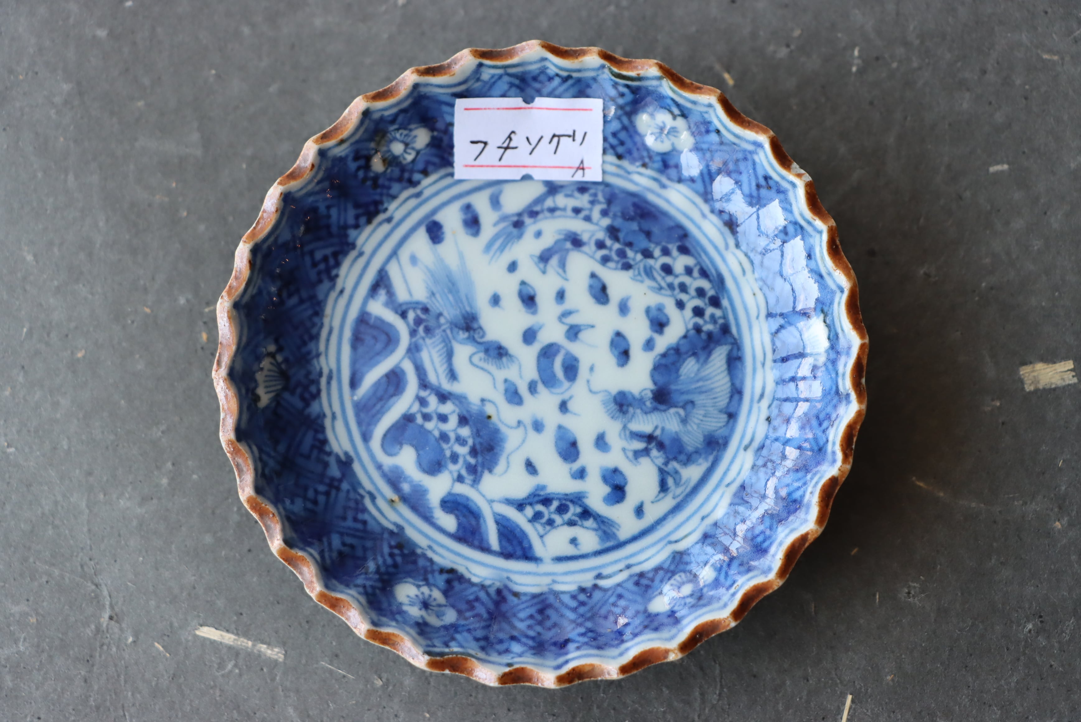 フチソゲ ×2 伊万里焼 染付 龍宝珠文 綾花 豆皿 A アウトレット