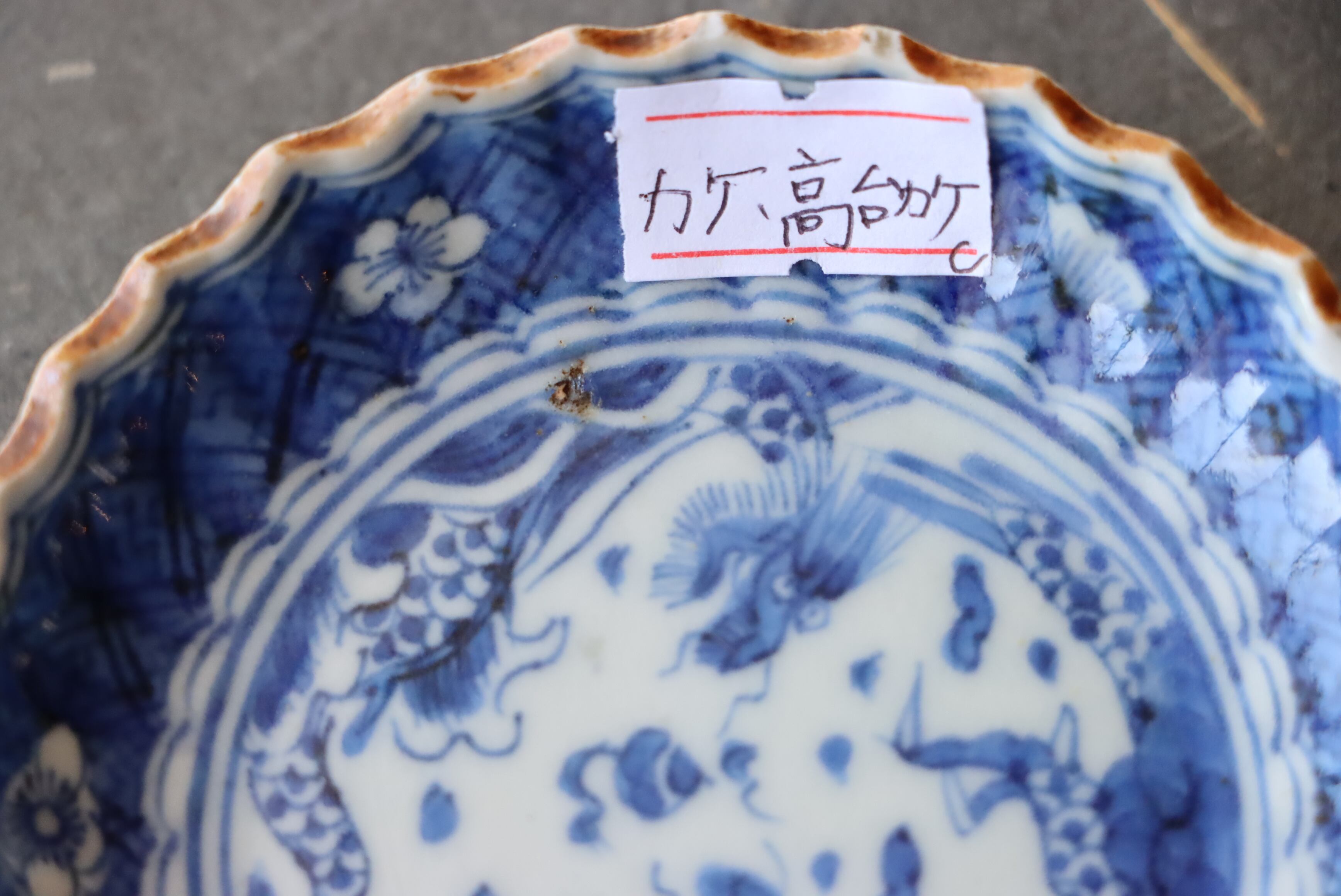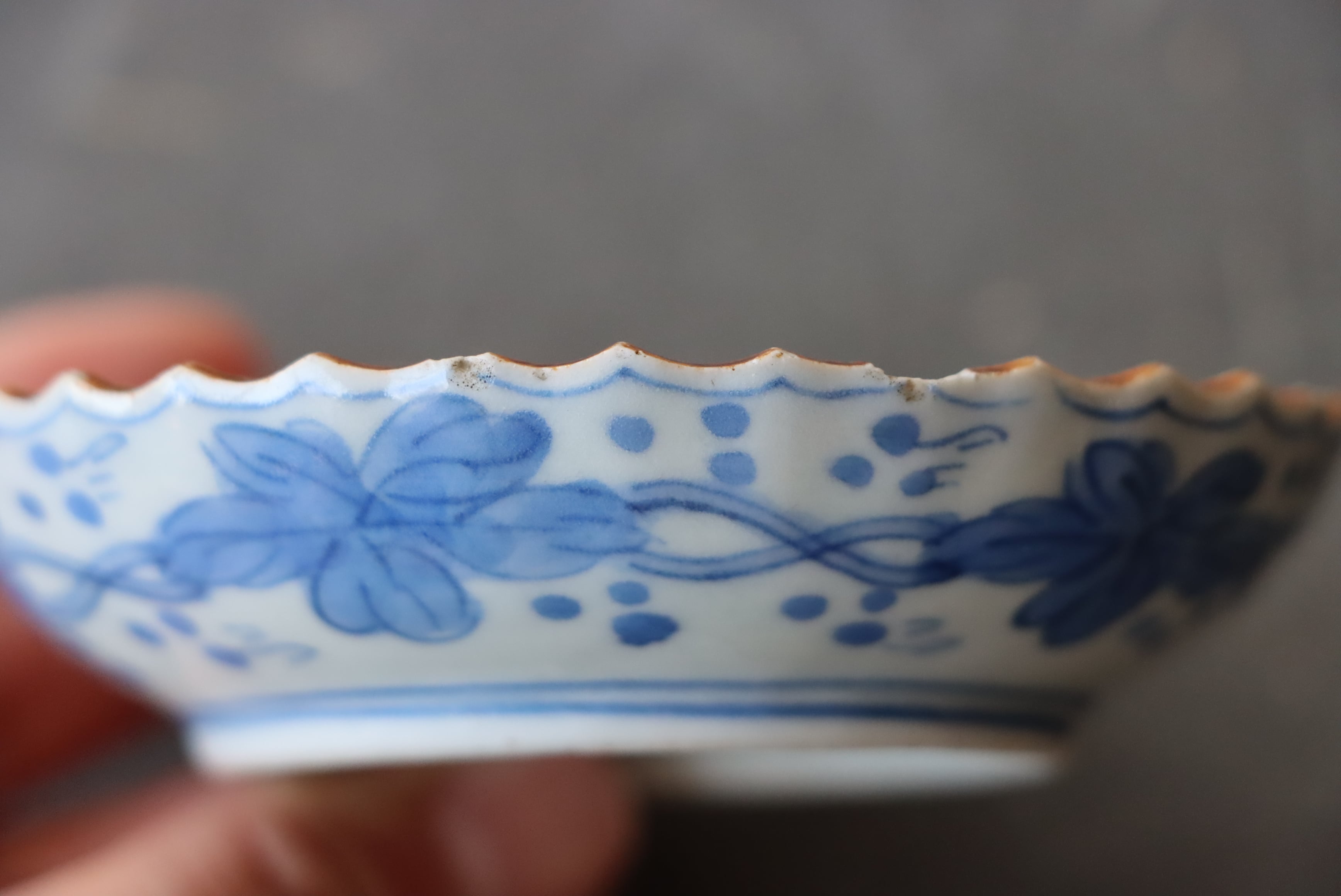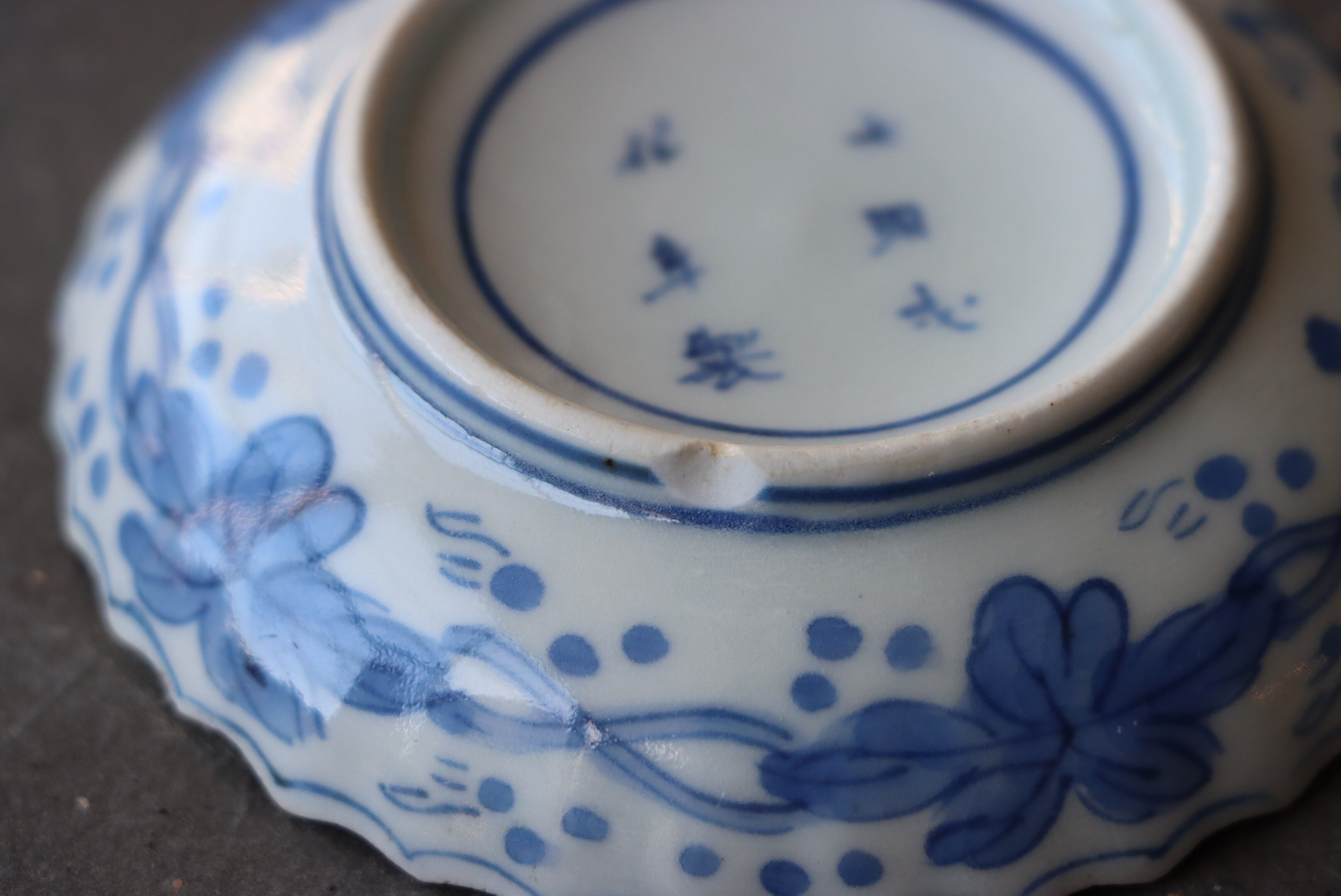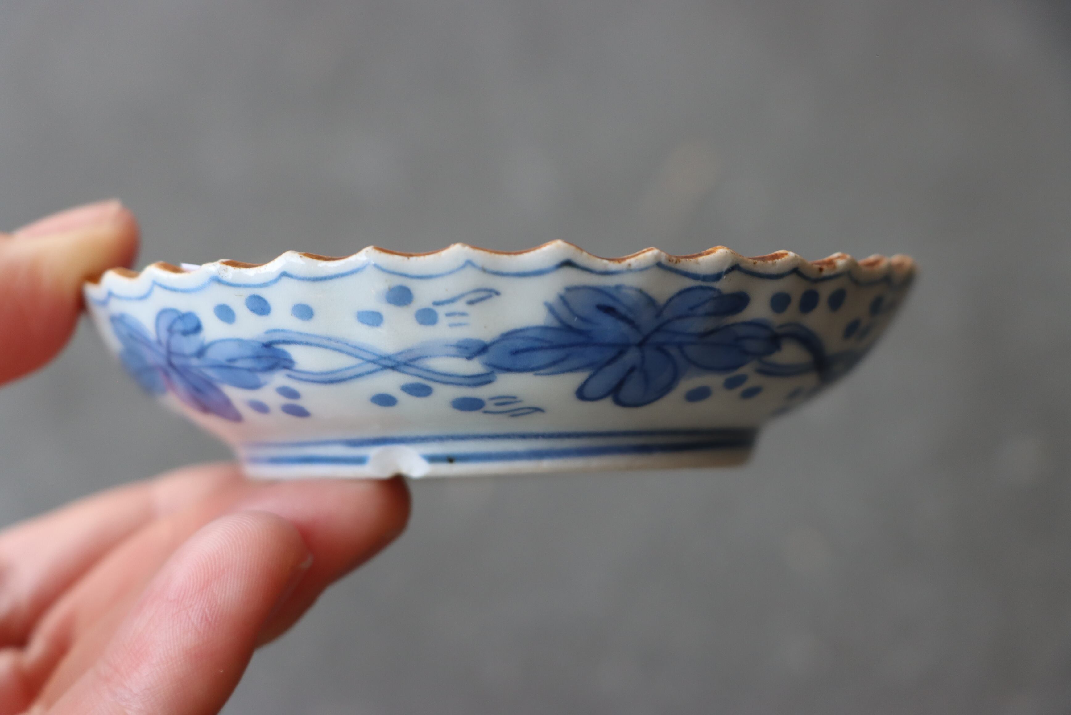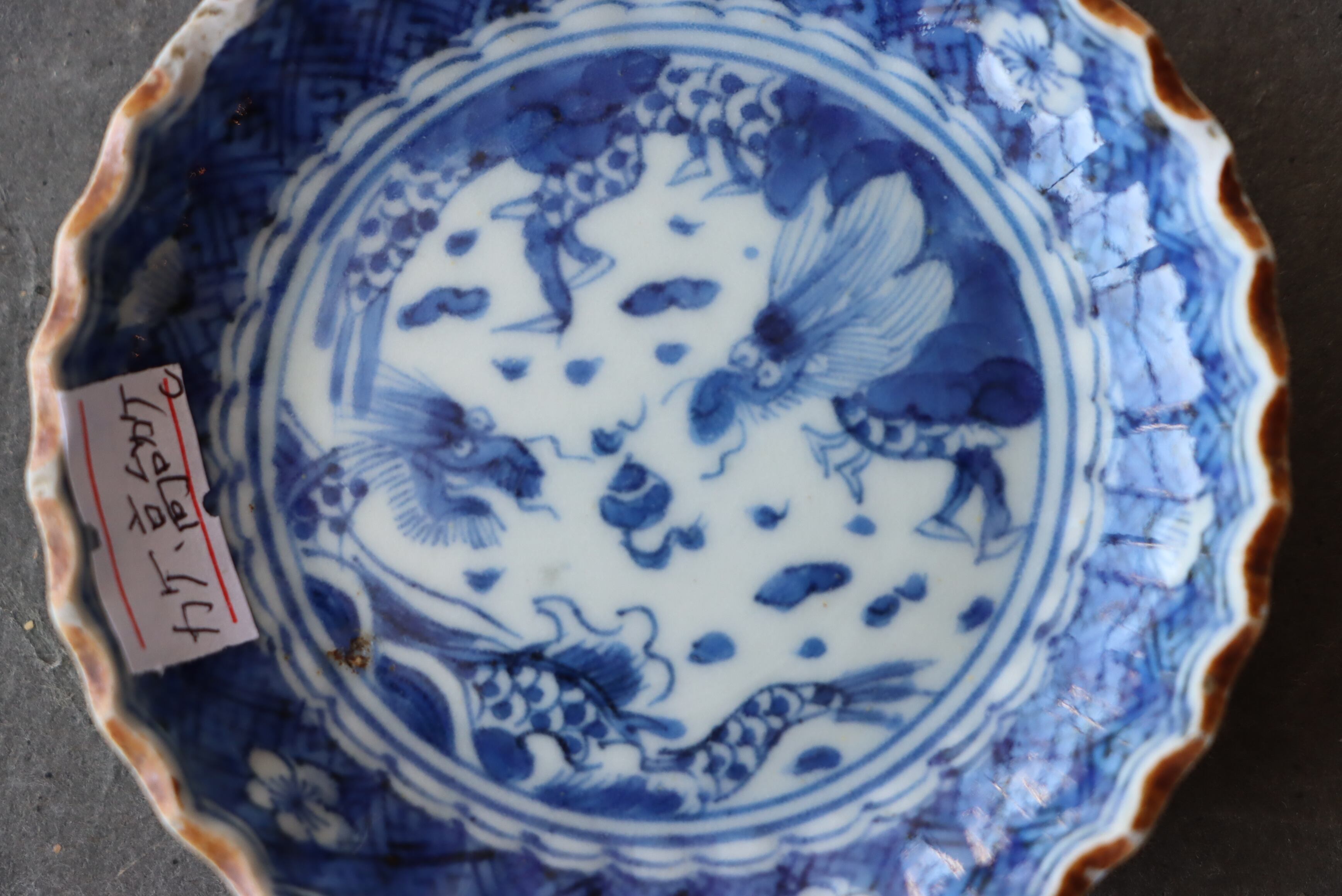 カケ フチソゲ 高台カケ 伊万里焼 染付 龍宝珠文 綾花 豆皿 C アウトレット