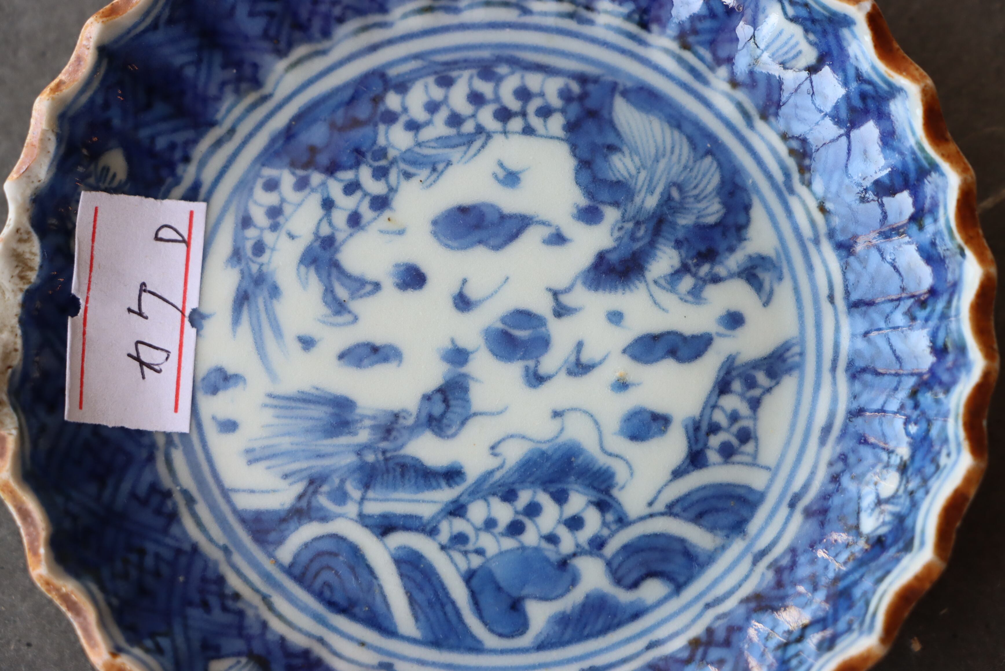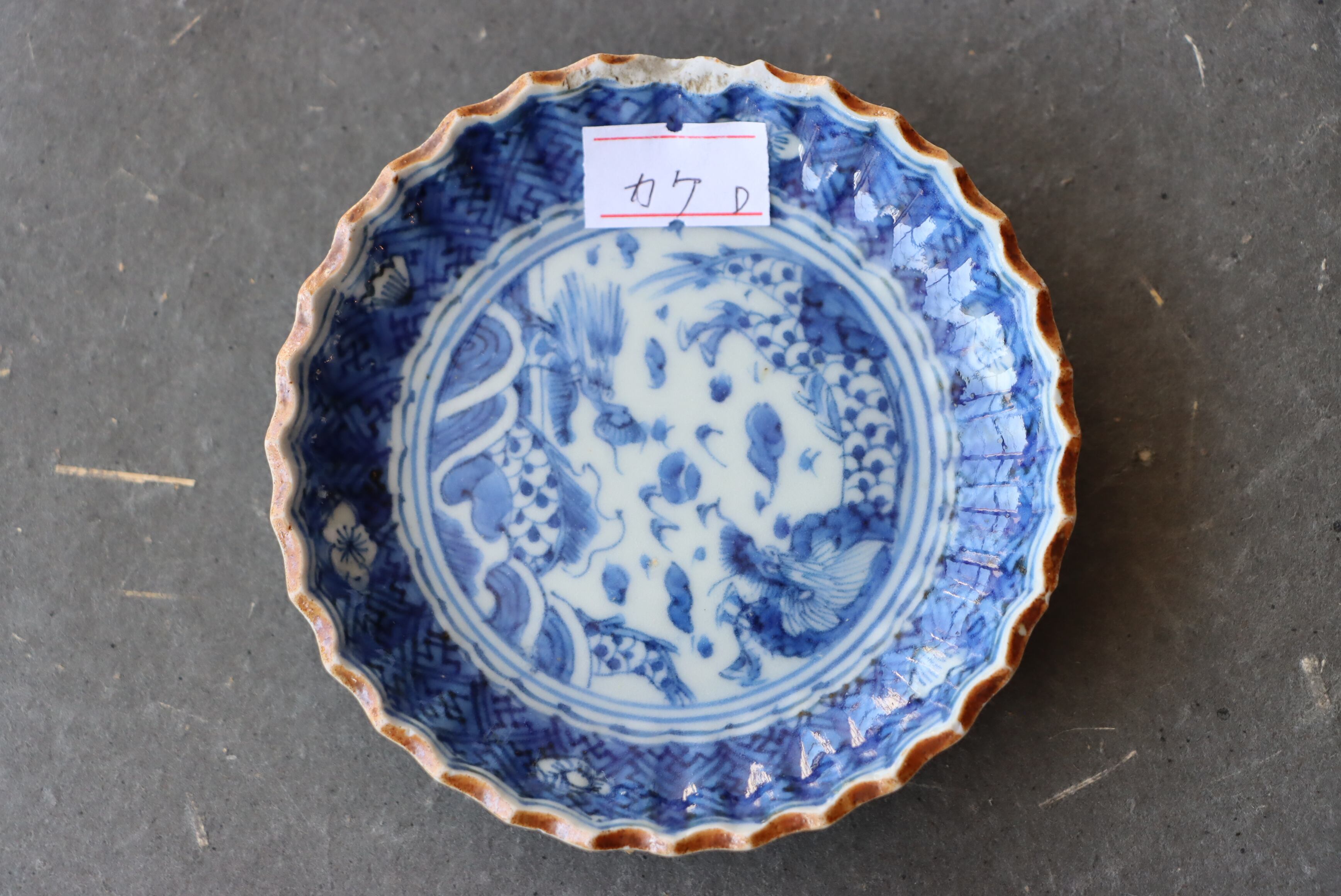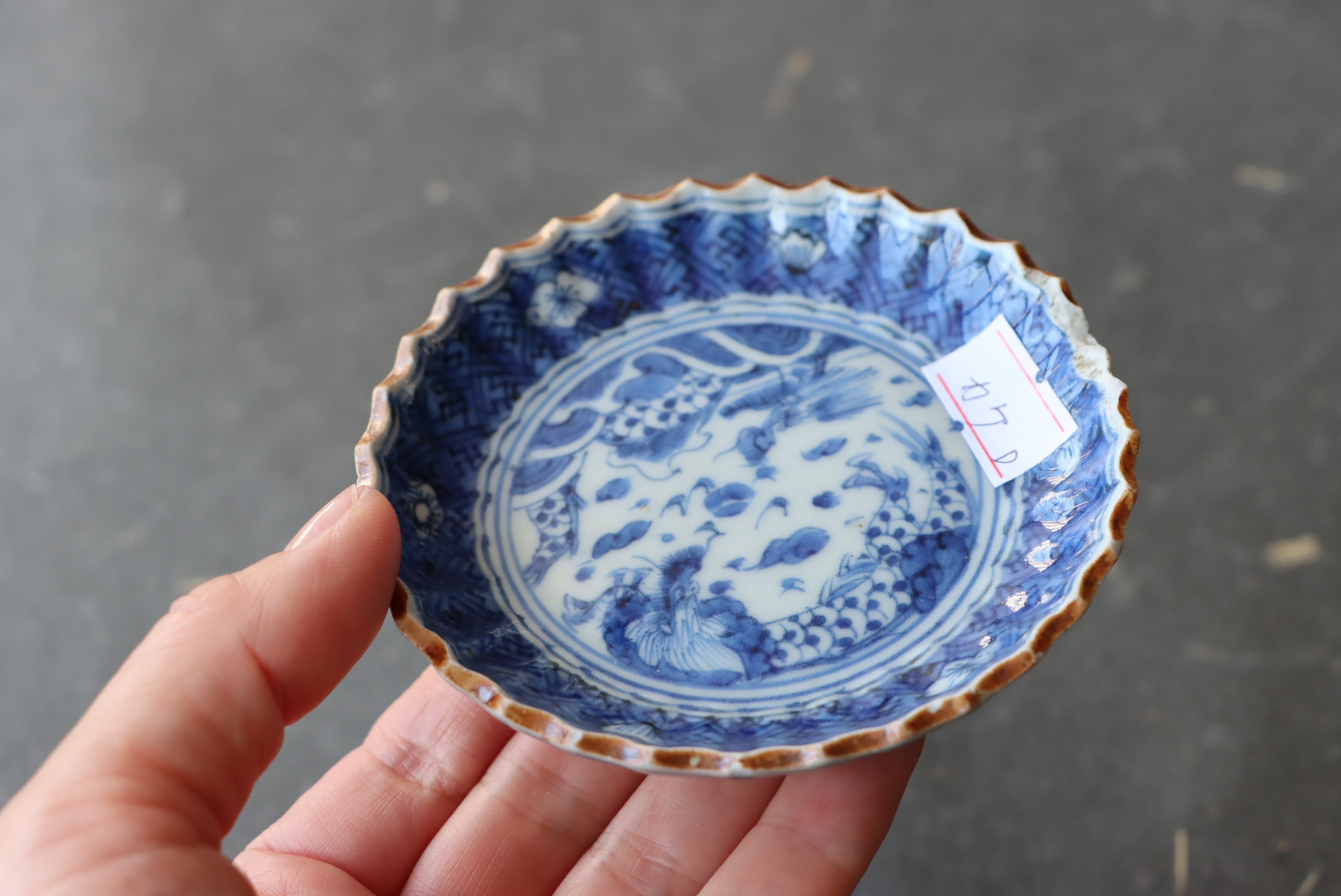 カケ フチソゲ 伊万里焼 染付 龍宝珠文 綾花 豆皿 D アウトレット
