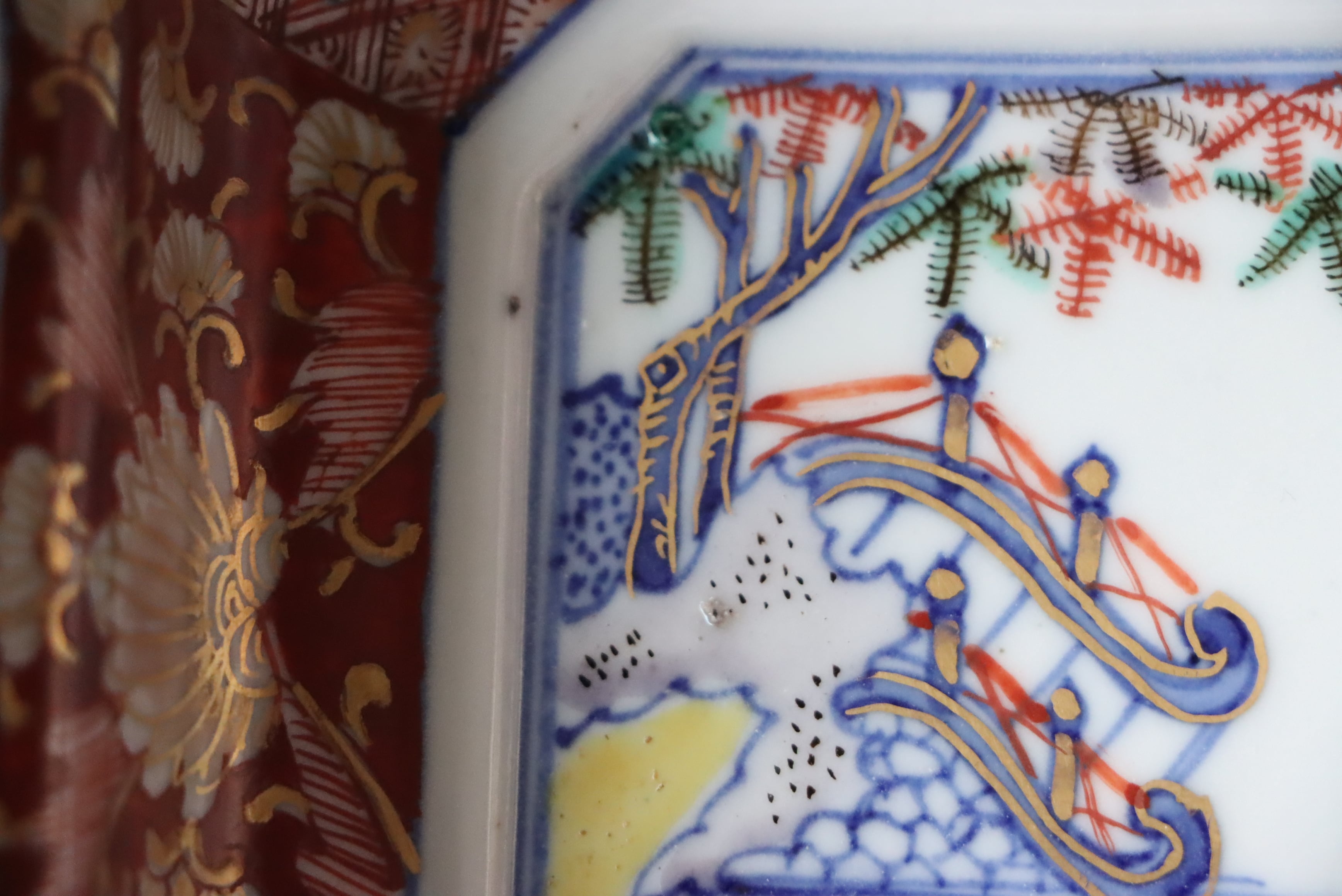 焼成時に窯の中でできる鉄分、くっつき、かまきず、ピンホール、経年による釉薬の薄れがございます。また、一枚一枚手描き、手作りですので器のサイズ(ミリ)、色味、描かれている文様の大きさなど個体差があり、ひとつとして同じものはございません。そういった時代感、個性をご理解いただき、楽しんでくだされば幸いです。電子レンジや食器洗い乾燥機のご使用はお控えください。