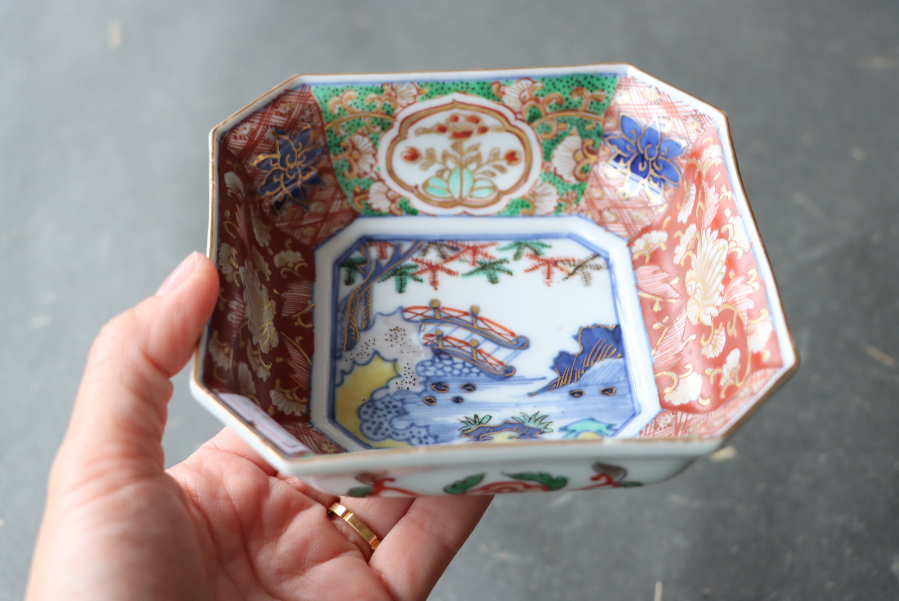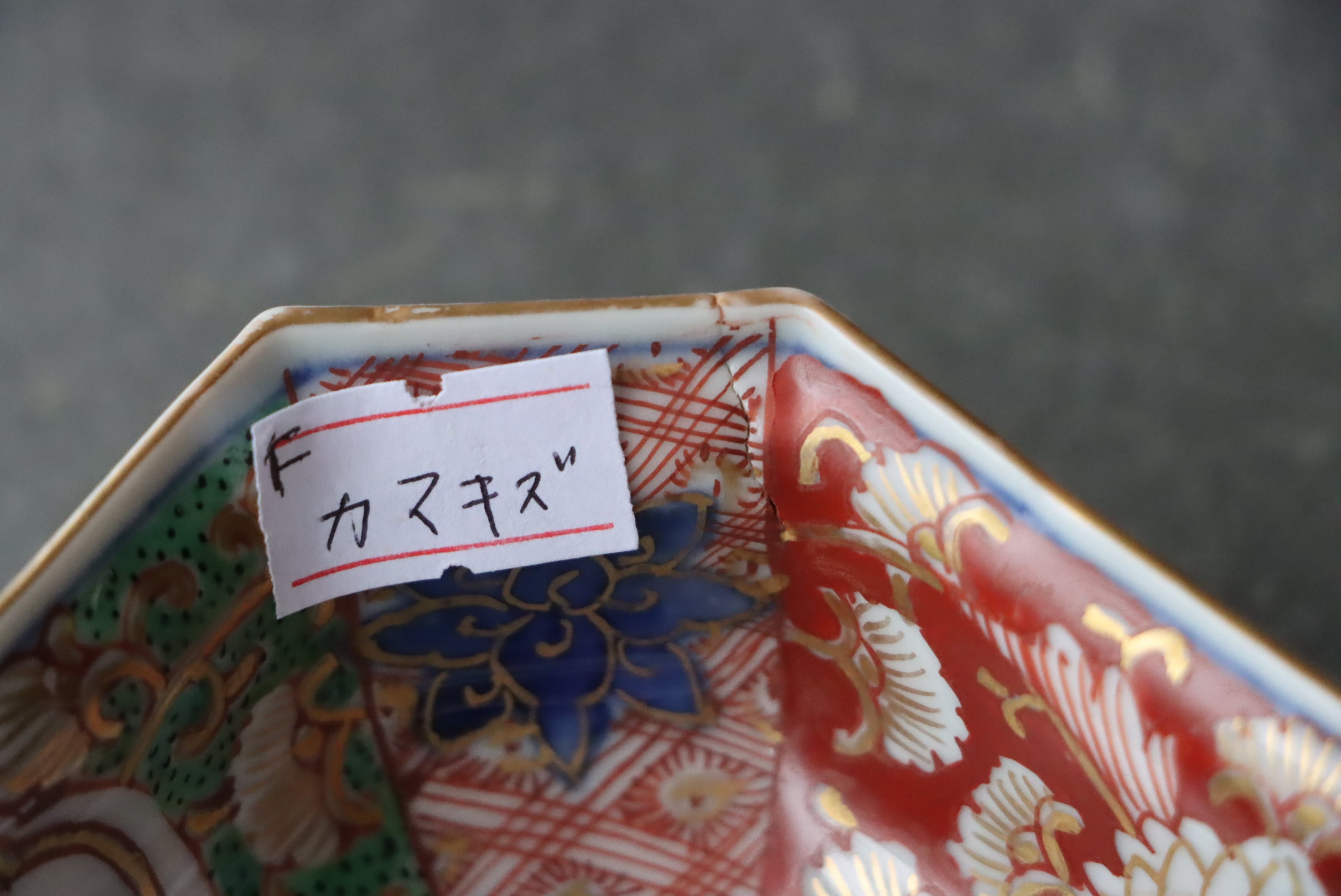 焼成時に窯の中でできる鉄分、くっつき、かまきず、ピンホール、経年による釉薬の薄れがございます。また、一枚一枚手描き、手作りですので器のサイズ(ミリ)、色味、描かれている文様の大きさなど個体差があり、ひとつとして同じものはございません。そういった時代感、個性をご理解いただき、楽しんでくだされば幸いです。電子レンジや食器洗い乾燥機のご使用はお控えください。
