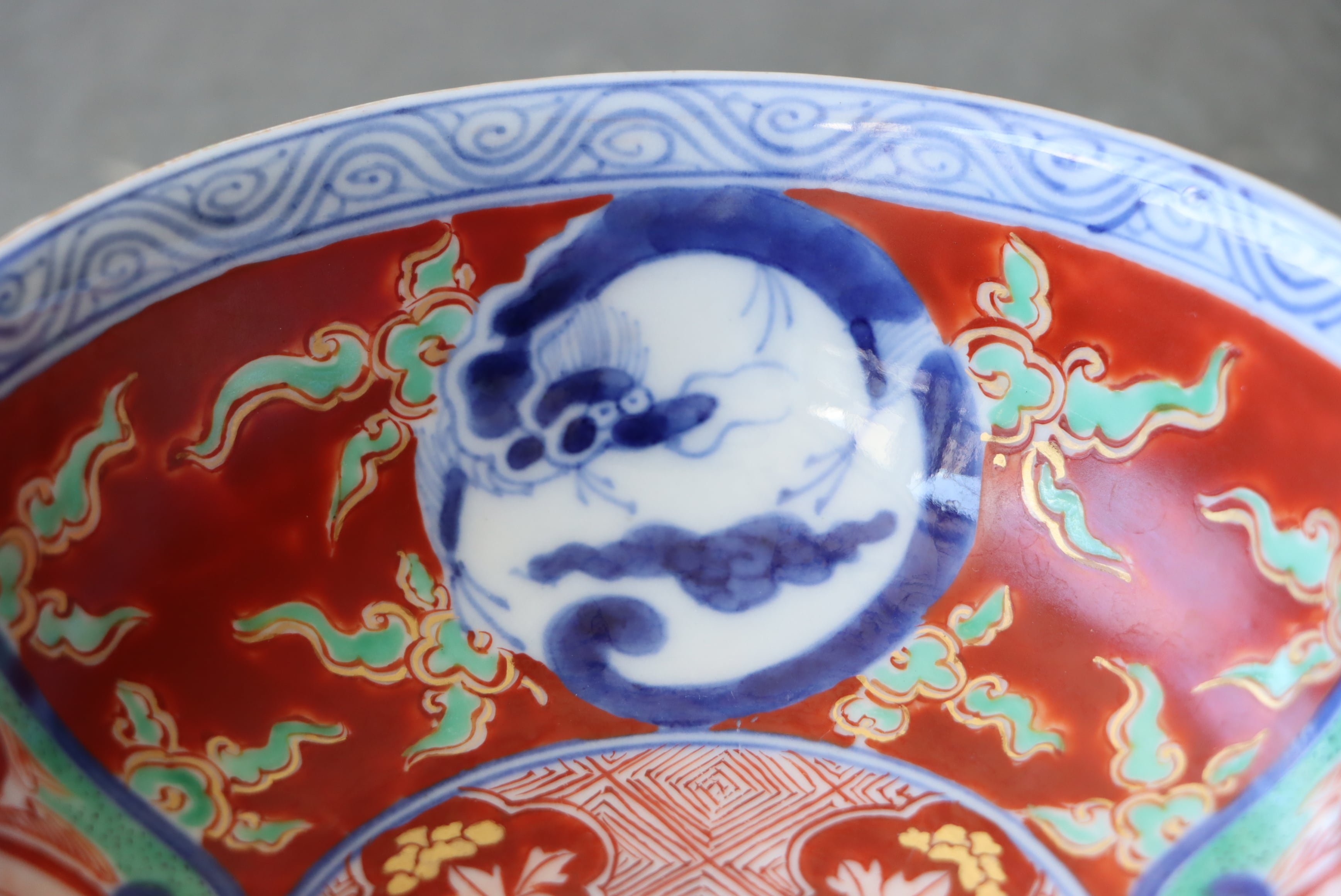 ニュウ 伊万里焼 色絵 赤玉瓔珞龍文 膾皿 M アウトレット
