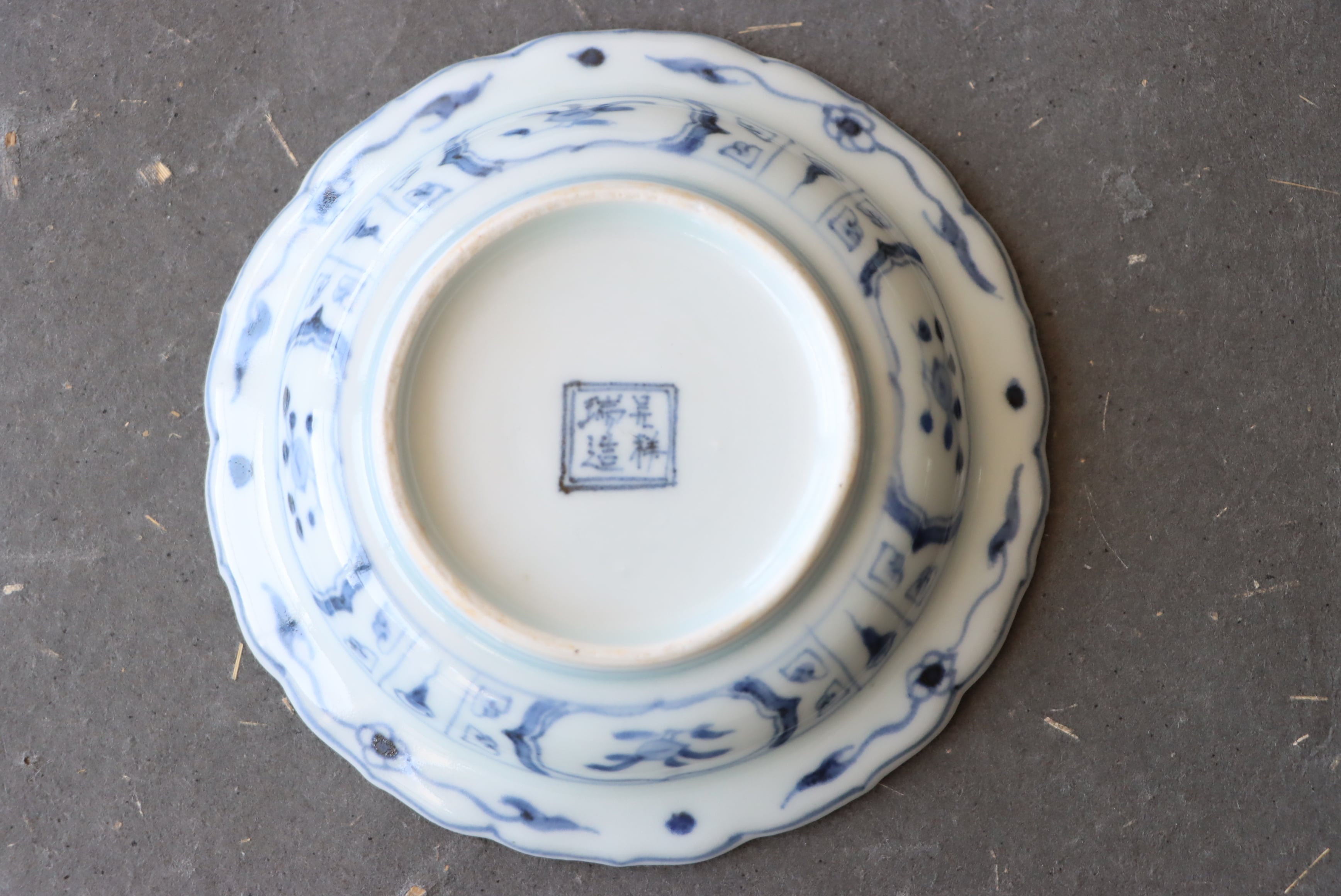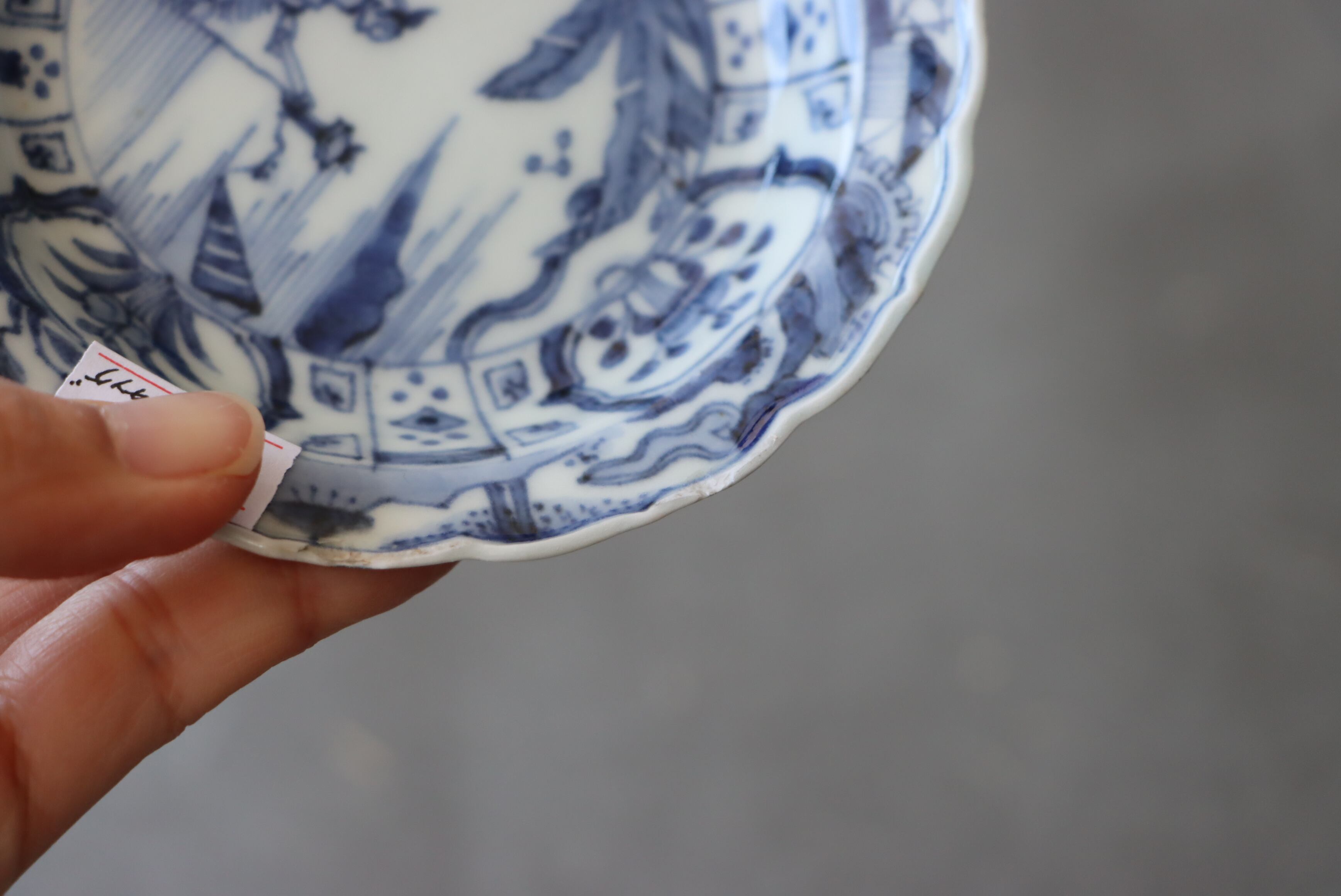 焼成時に窯の中でできる鉄分、くっつき、かまきず、ピンホール、経年による釉薬の薄れがございます。また、一枚一枚手描き、手作りですので器のサイズ(ミリ)、色味、描かれている文様の大きさなど個体差があり、ひとつとして同じものはございません。そういった時代感、個性をご理解いただき、楽しんでくだされば幸いです。電子レンジや食器洗い乾燥機のご使用はお控えください。
