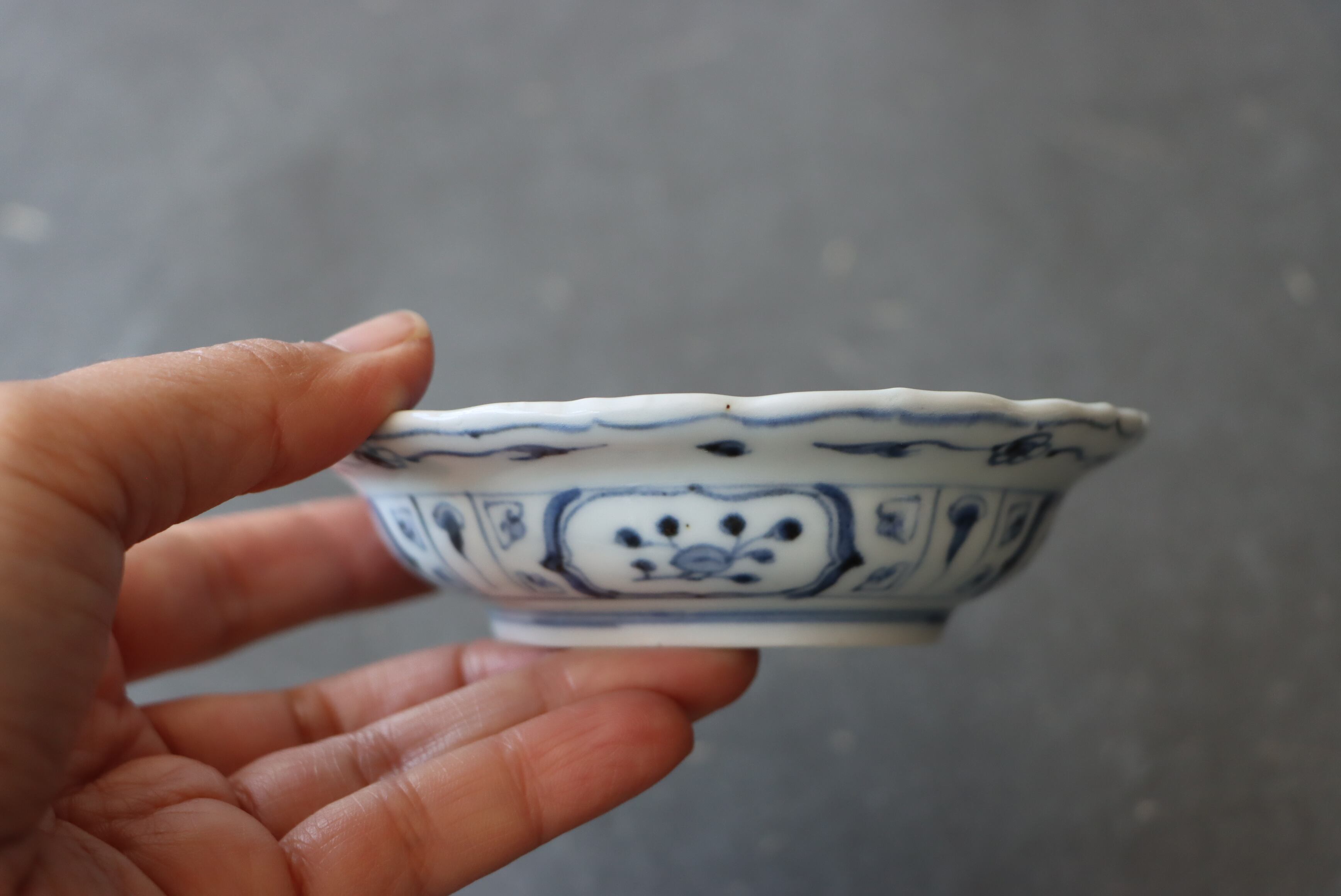 焼成時に窯の中でできる鉄分、くっつき、かまきず、ピンホール、経年による釉薬の薄れがございます。また、一枚一枚手描き、手作りですので器のサイズ(ミリ)、色味、描かれている文様の大きさなど個体差があり、ひとつとして同じものはございません。そういった時代感、個性をご理解いただき、楽しんでくだされば幸いです。電子レンジや食器洗い乾燥機のご使用はお控えください。
