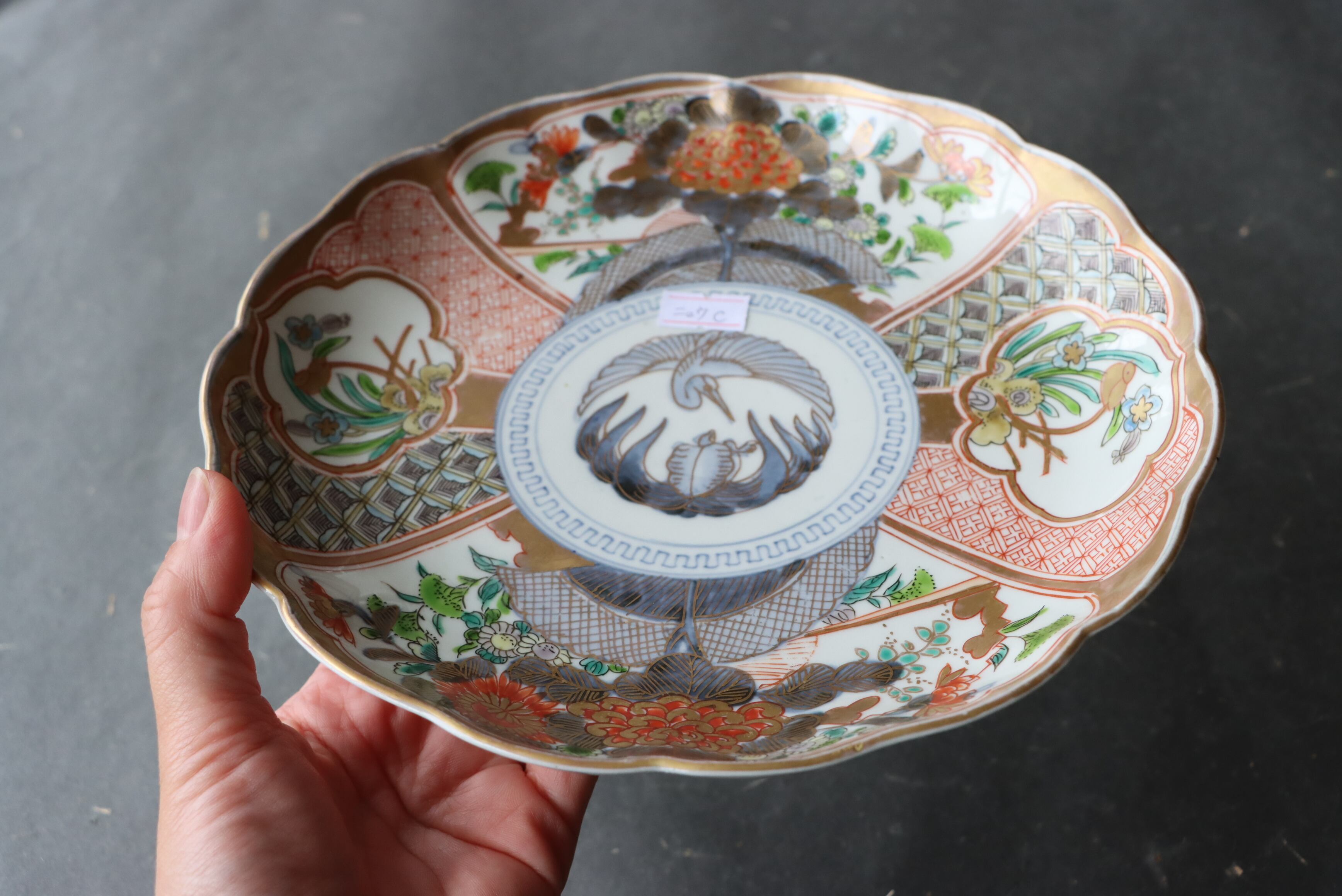 ニュウ 伊万里焼 色絵 鶴亀花鳥文 中皿 七寸 通りもの C アウトレット