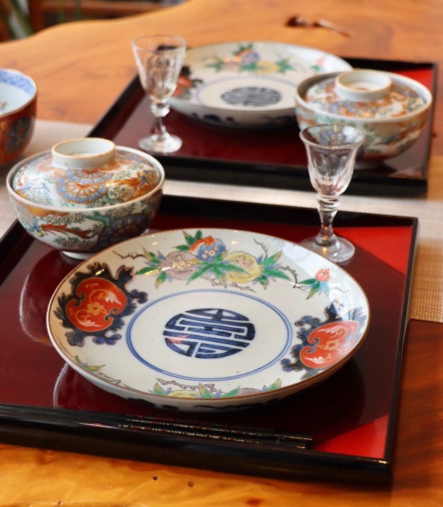 古伊万里 色絵 壽柘榴文 中皿 七寸皿