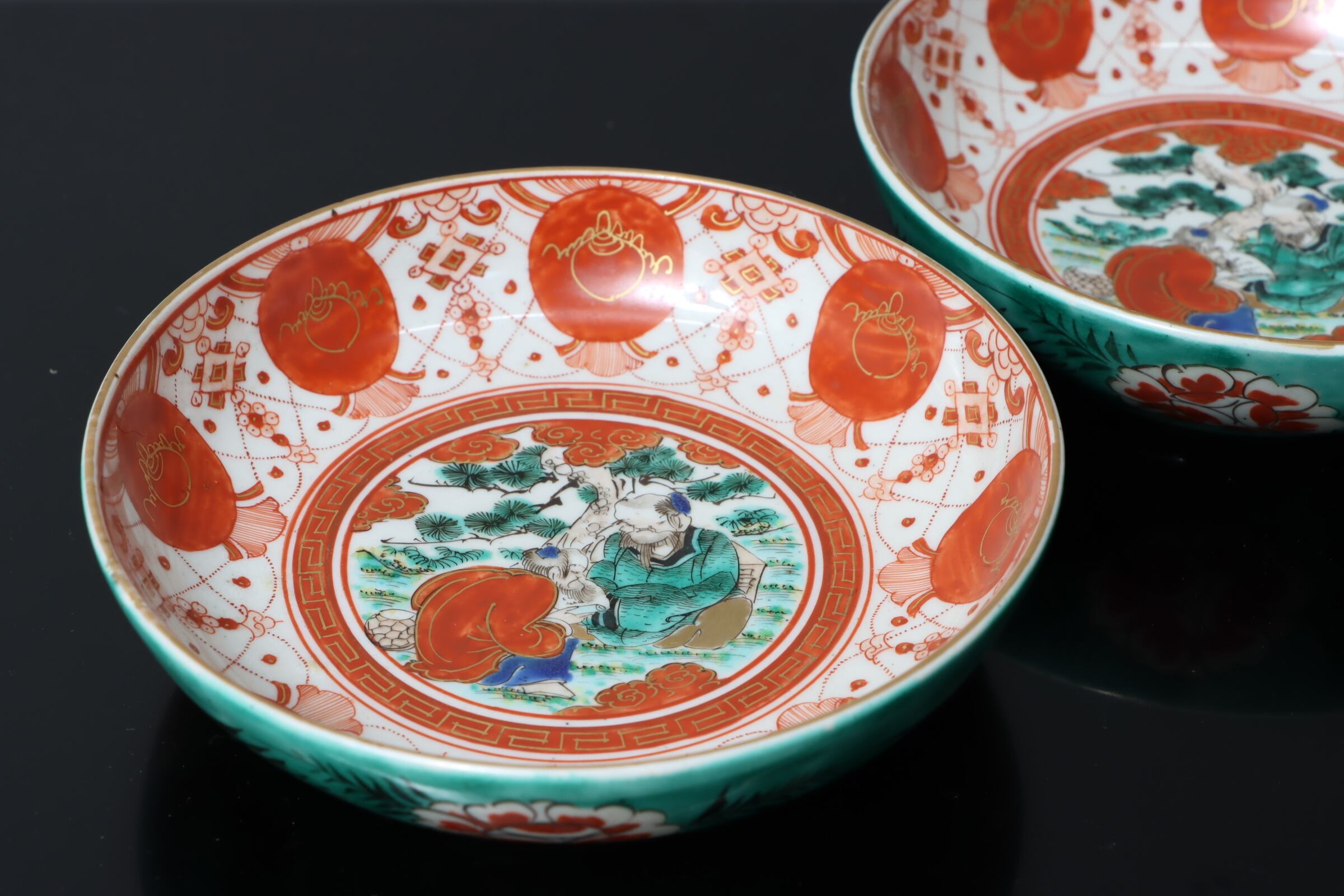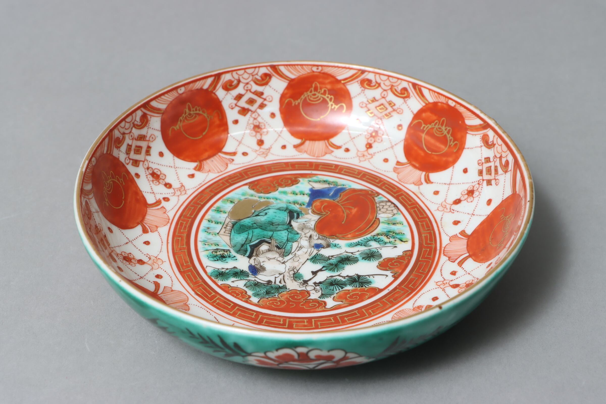 九谷焼 色絵 赤玉瓔珞人物文 膾皿