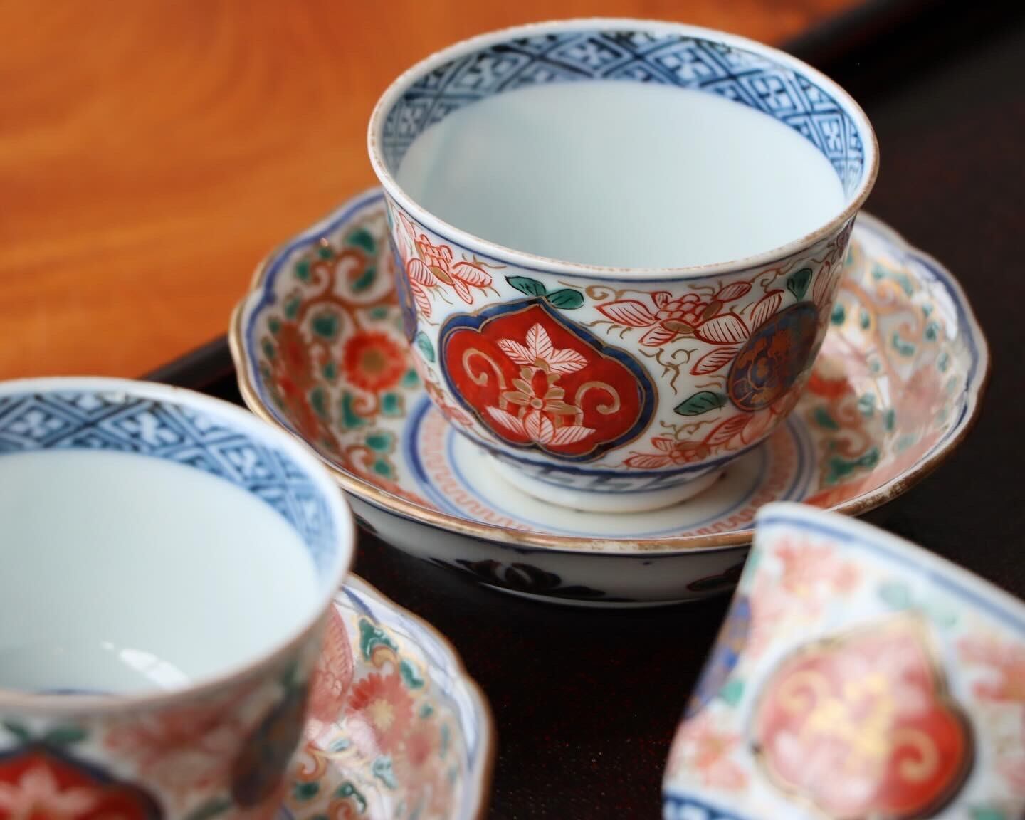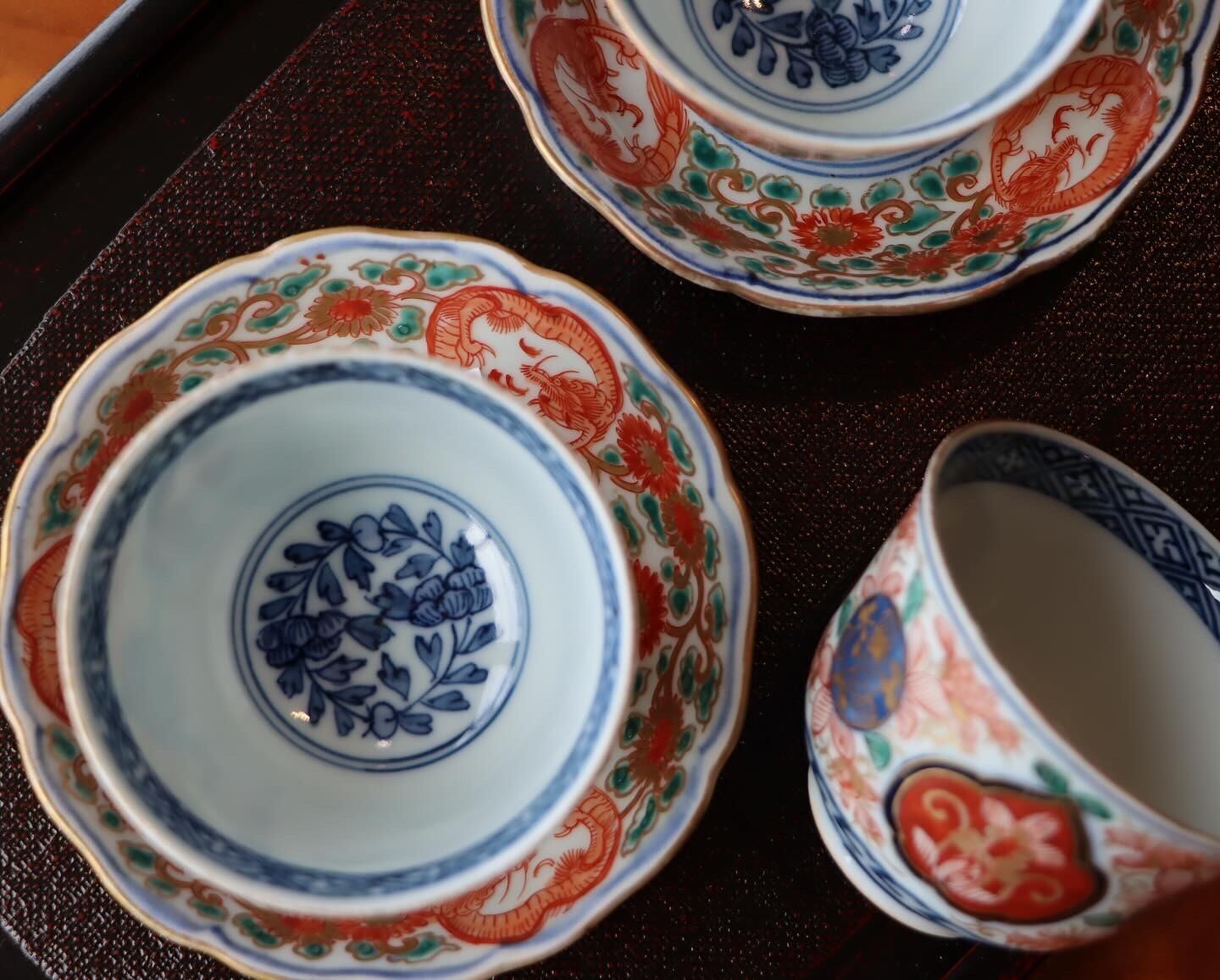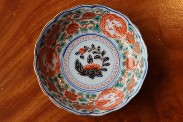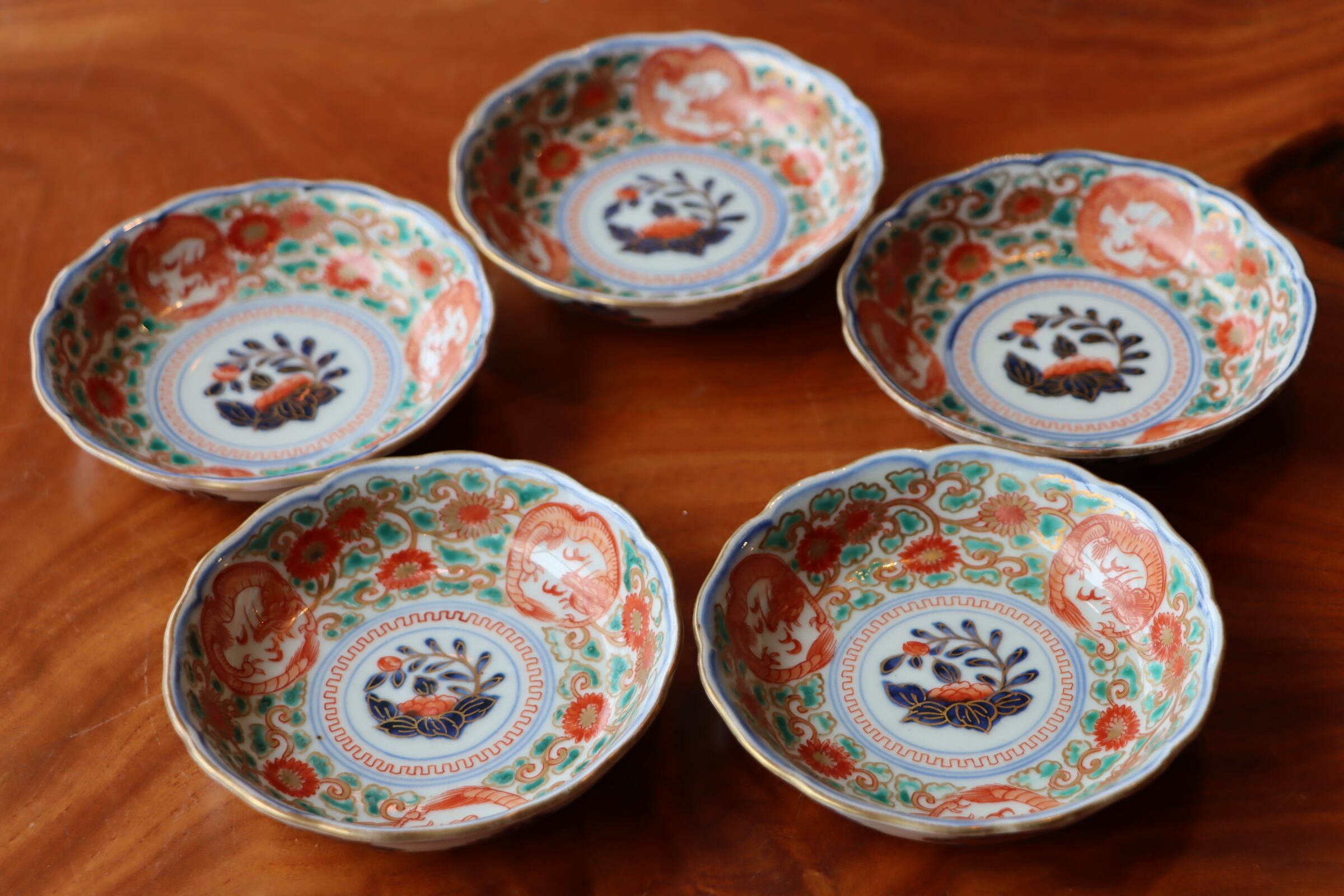 伊万里焼 色絵 龍花文 小皿 五枚組