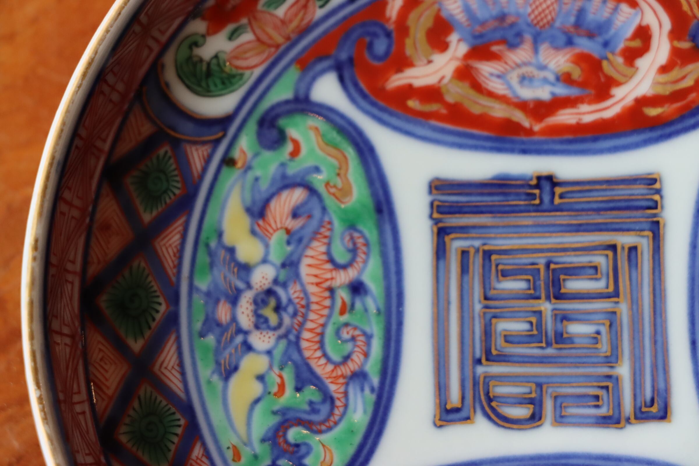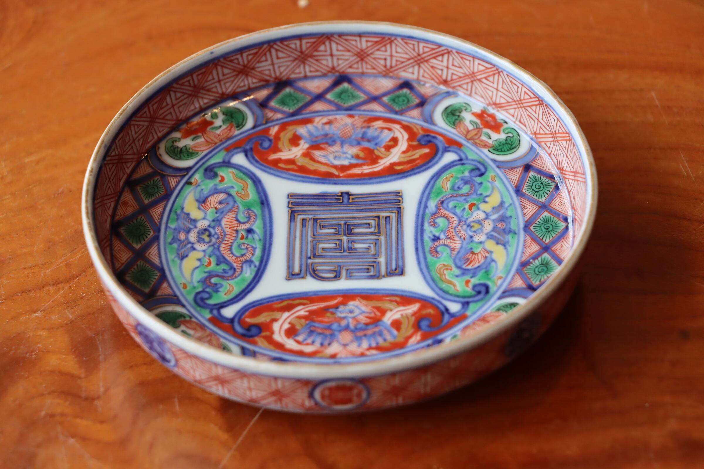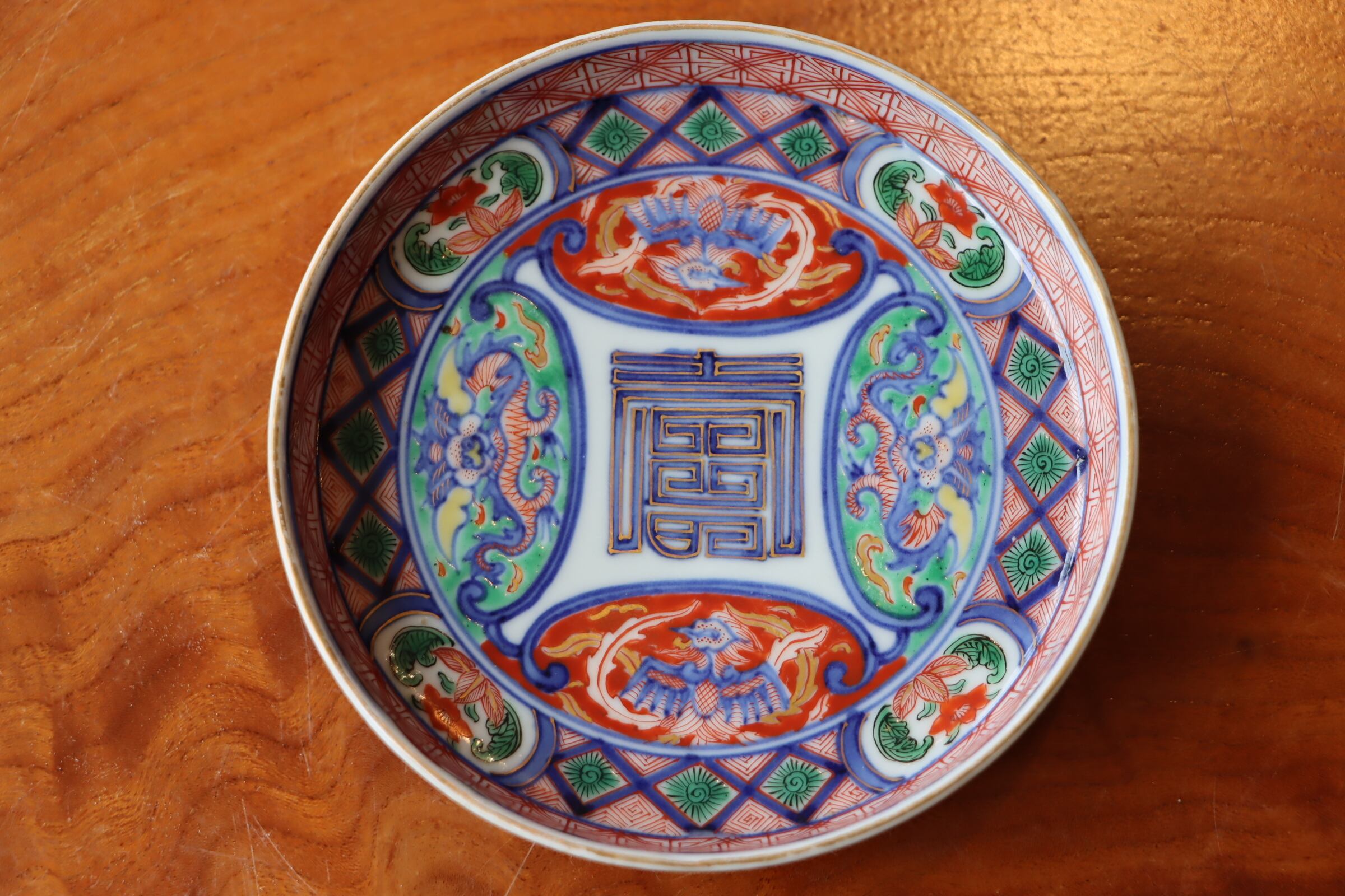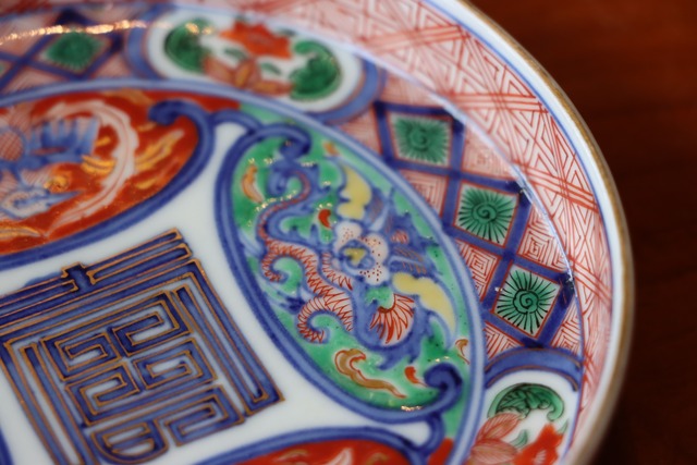 大聖寺伊万里 色絵 龍鳳凰壽文 小皿