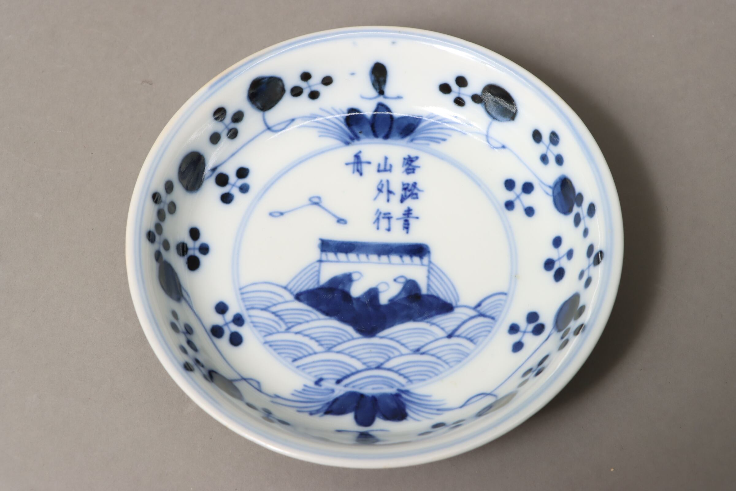 大聖寺伊万里 染付 舟人物文 中皿 五寸皿