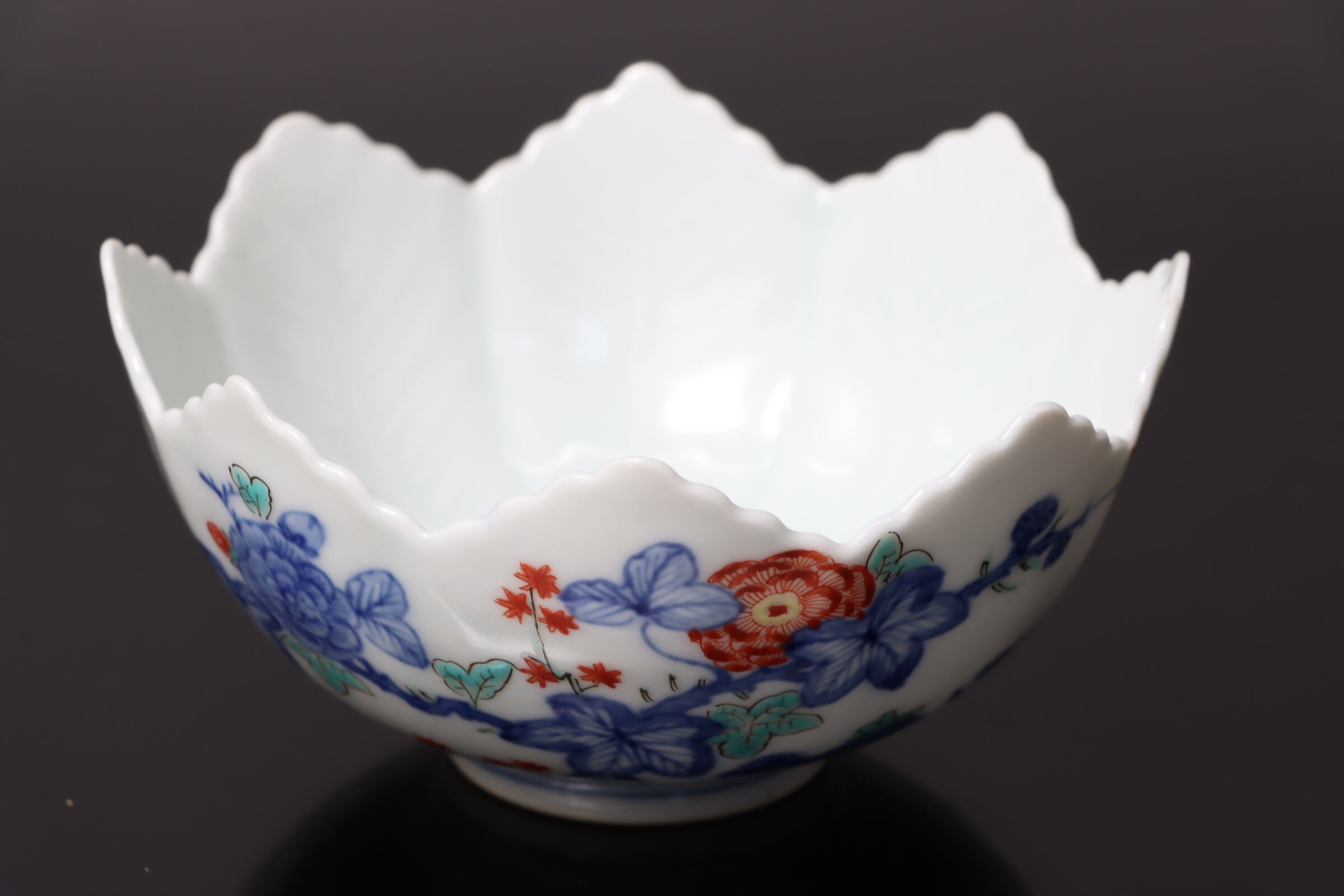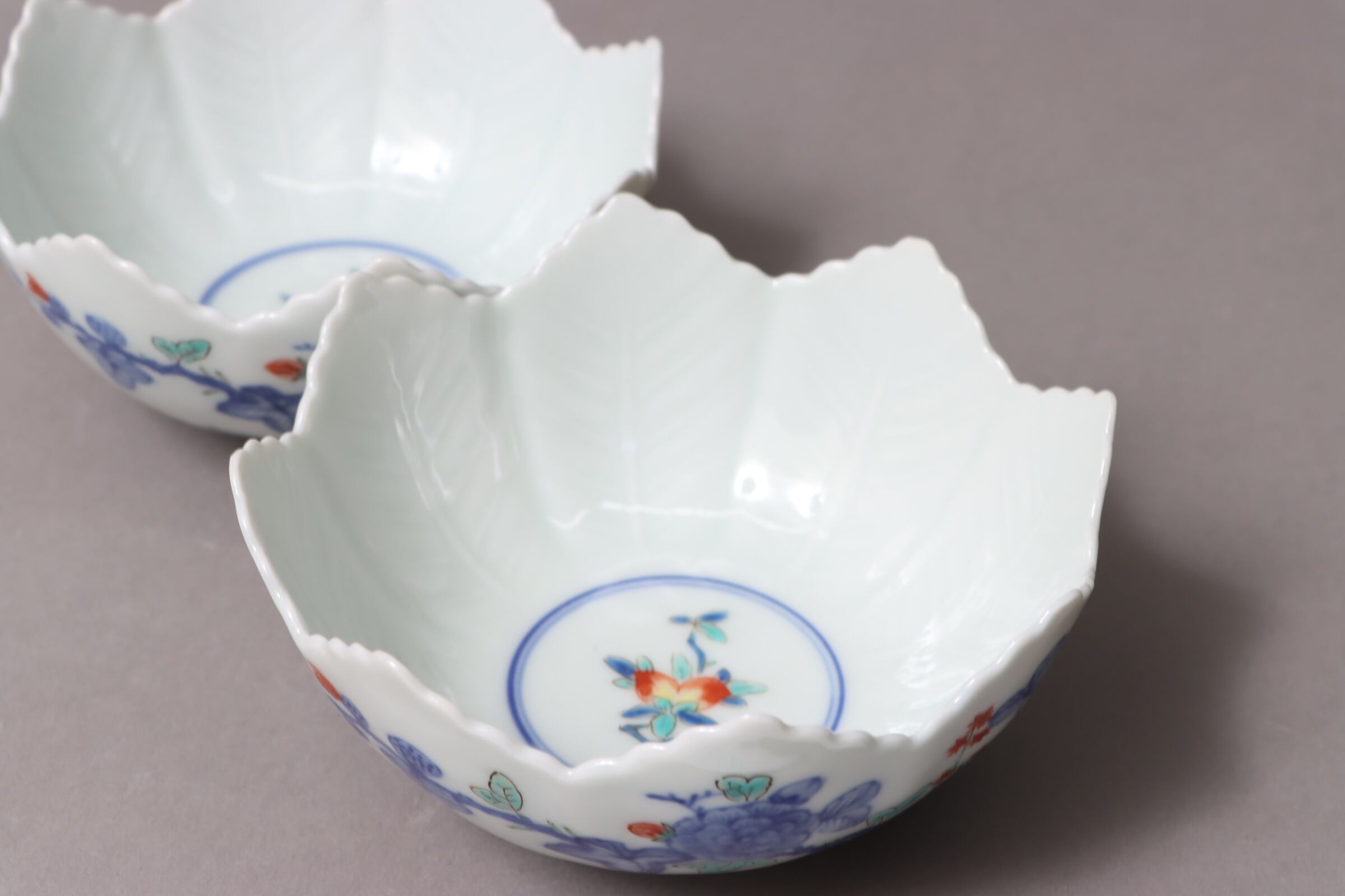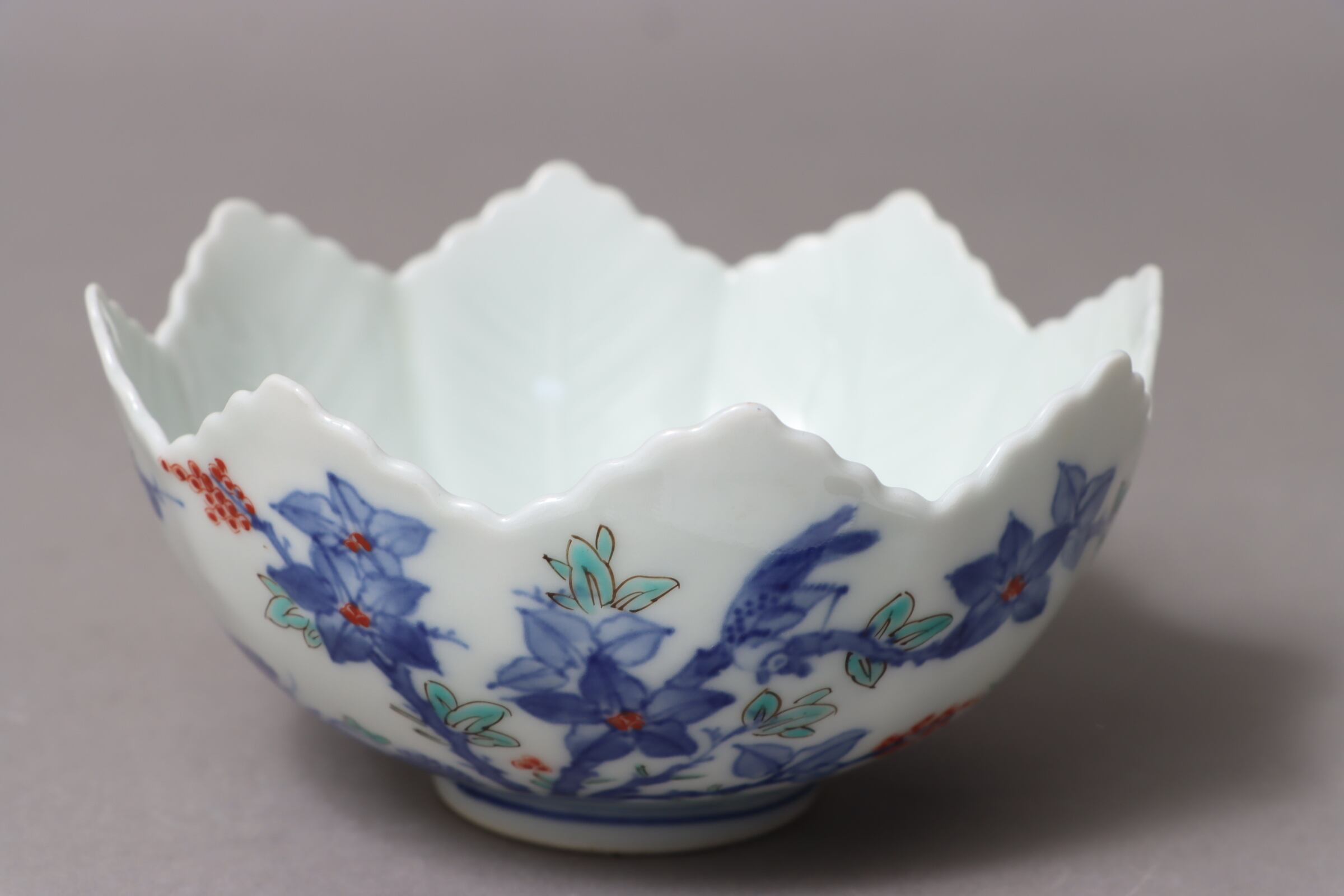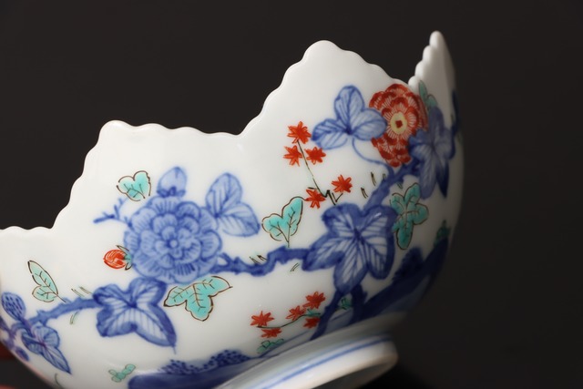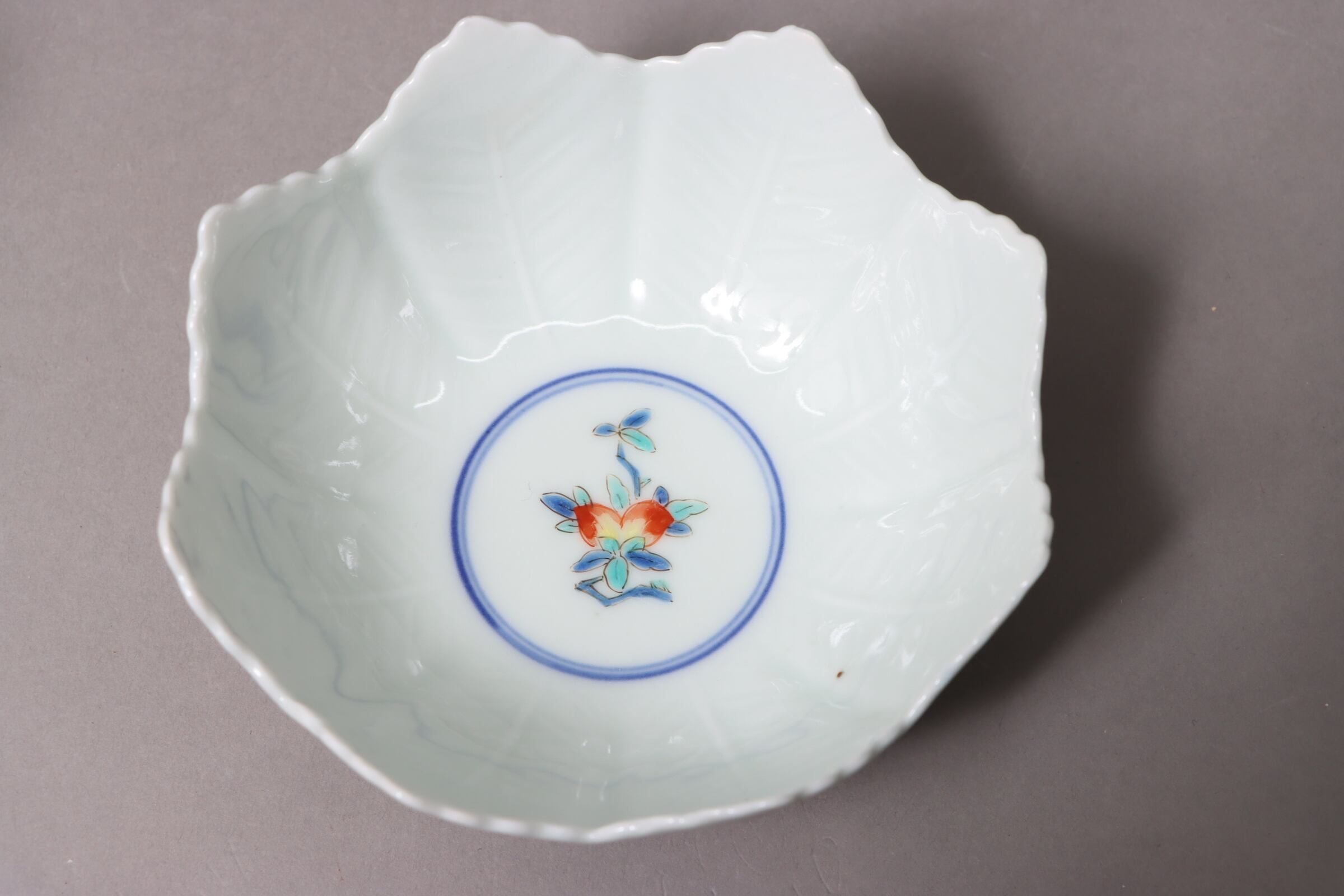 柿右衛門手 色絵 柘榴花文 葉形 向付
