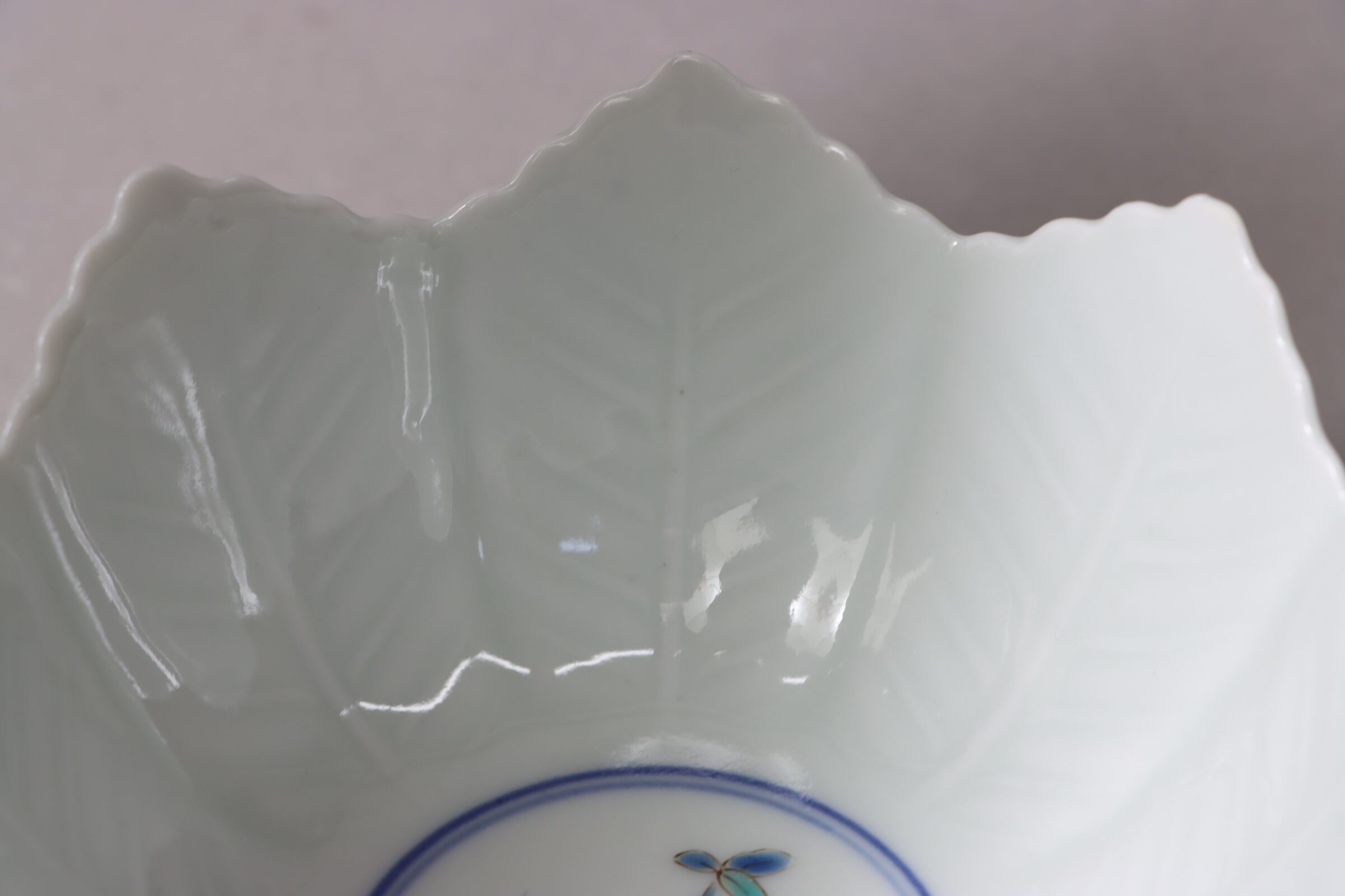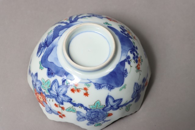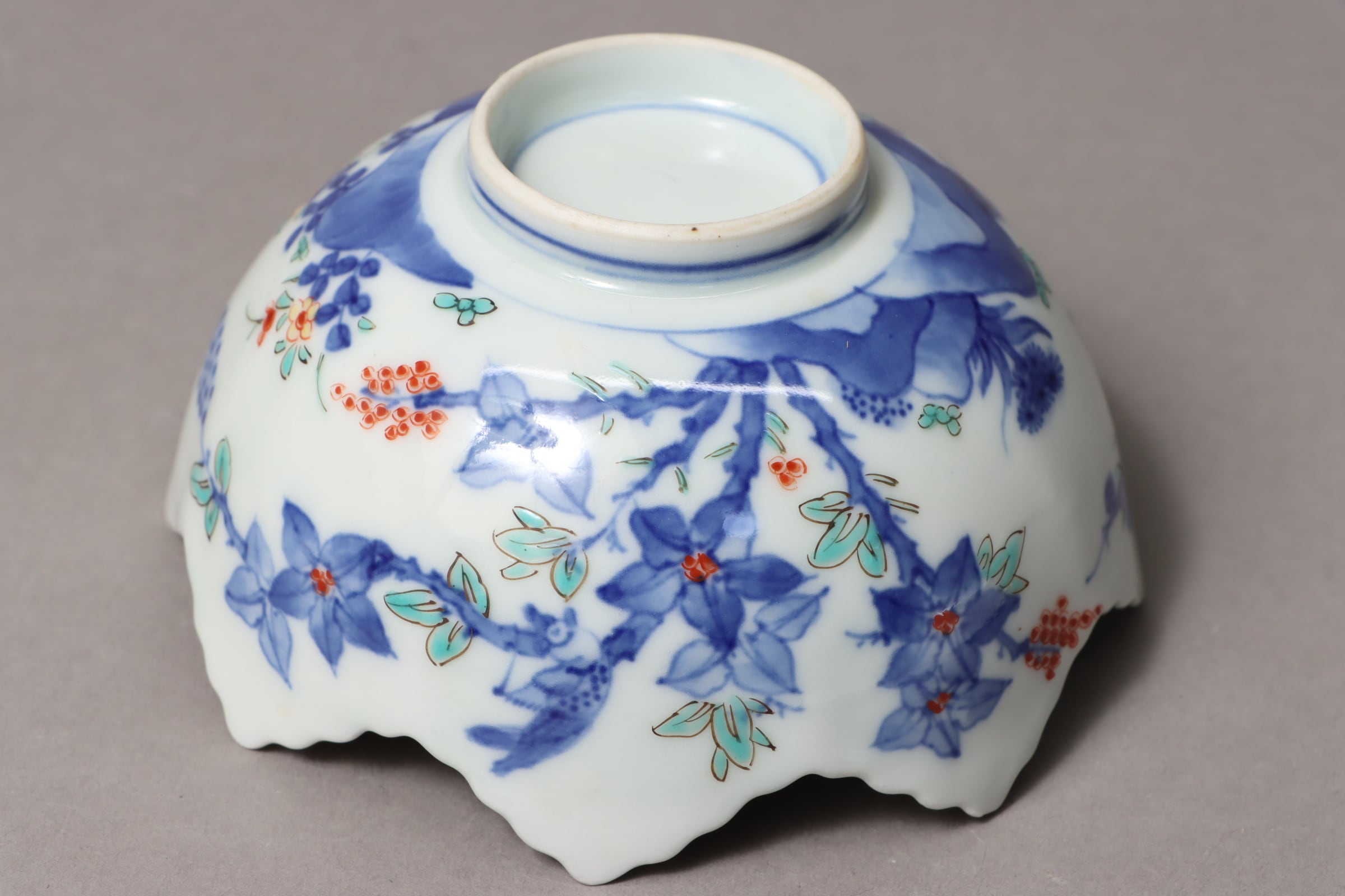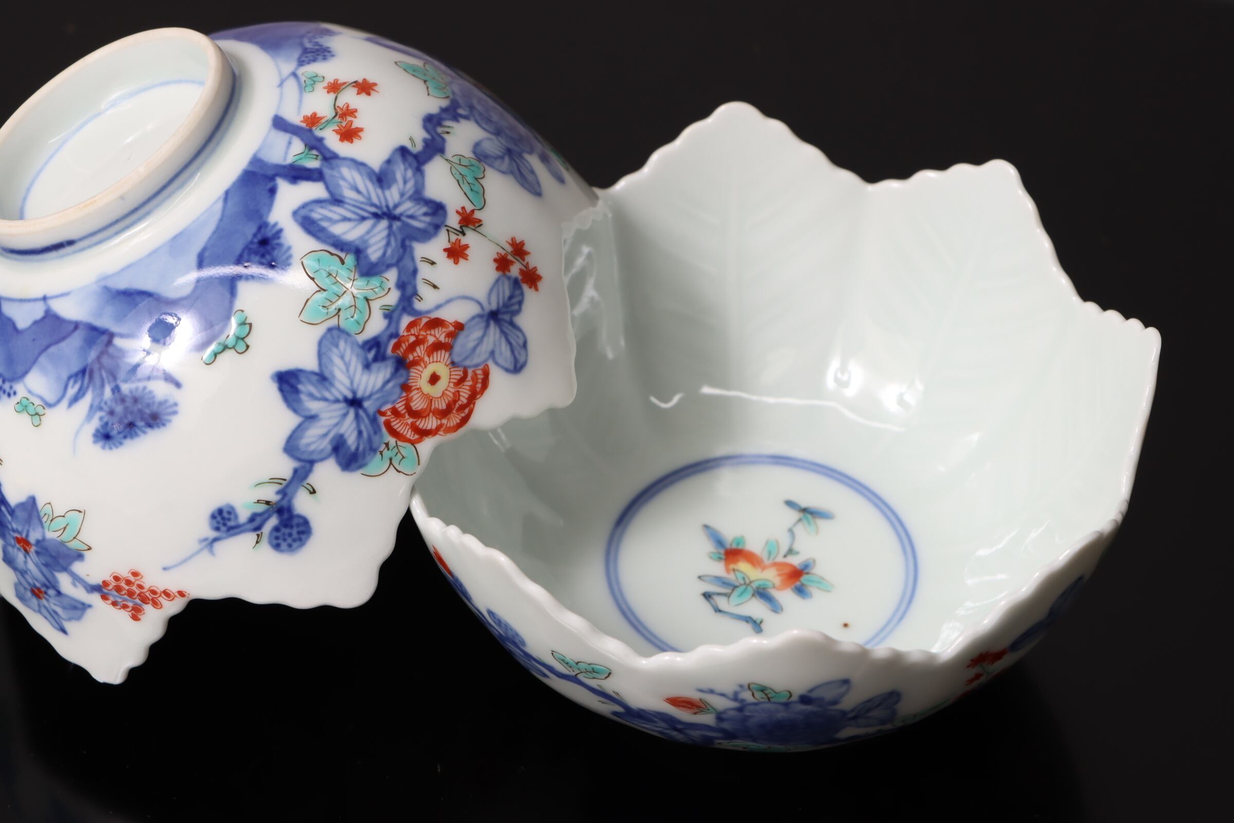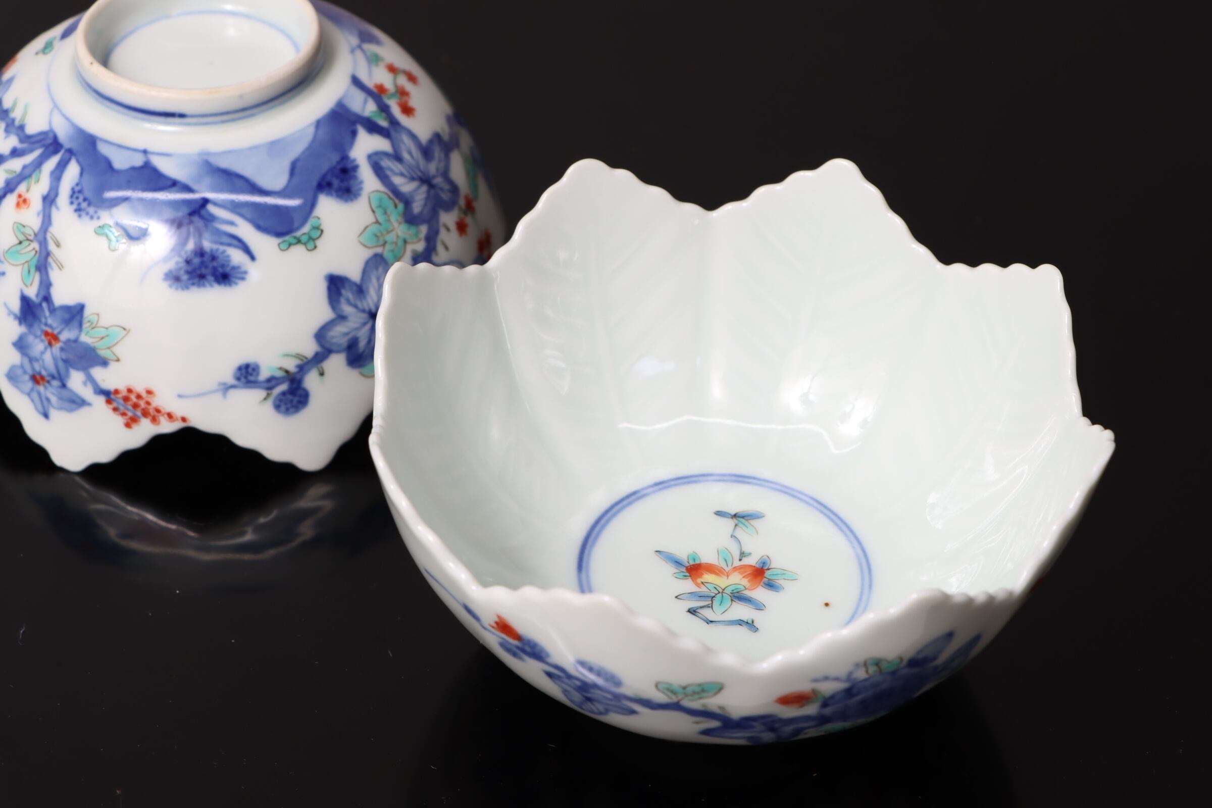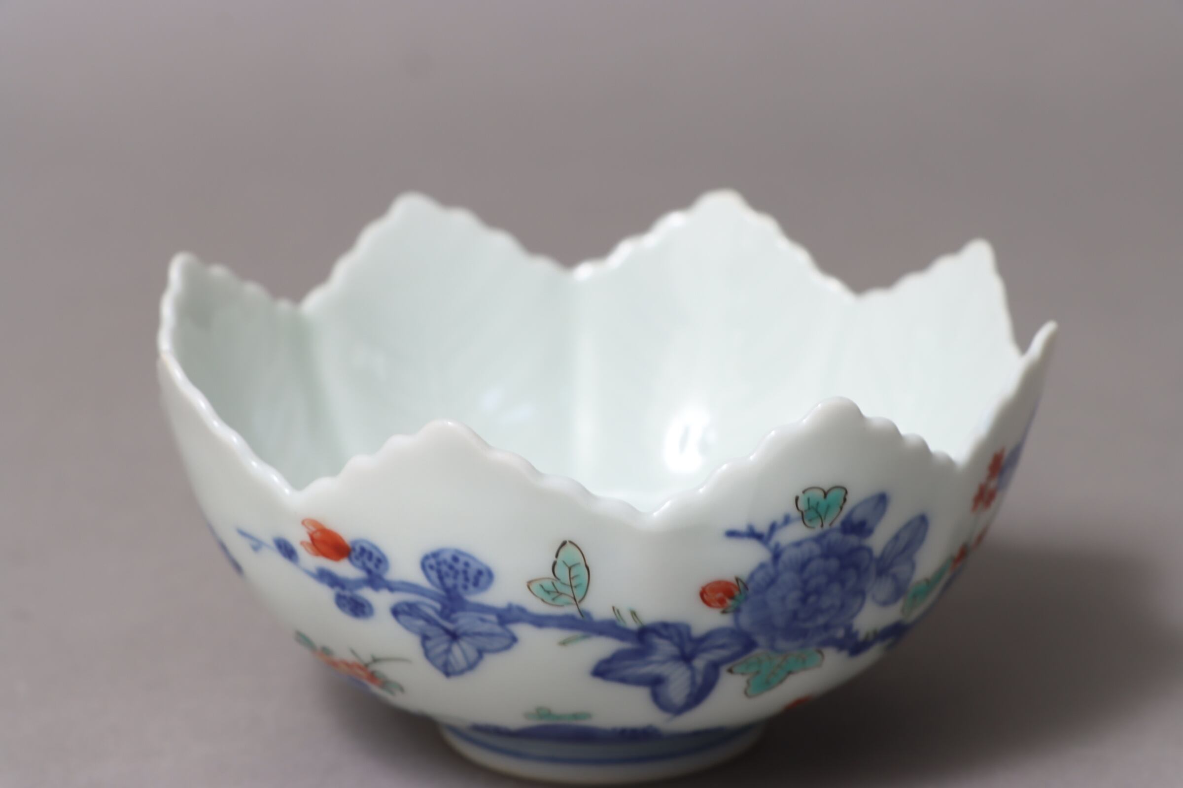 柿右衛門手 色絵 柘榴花文 葉形 向付
