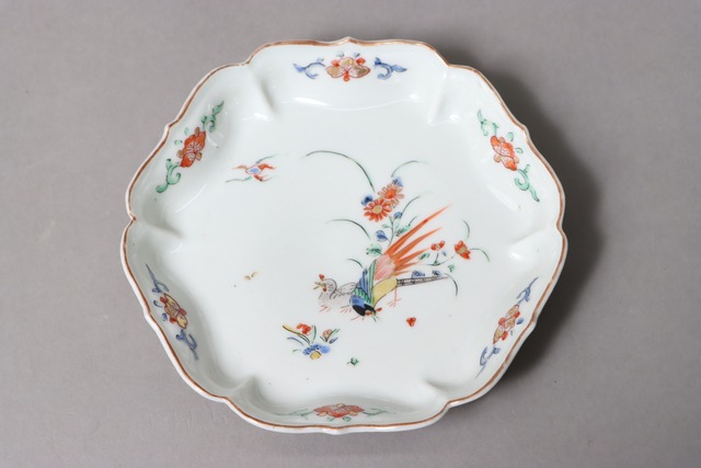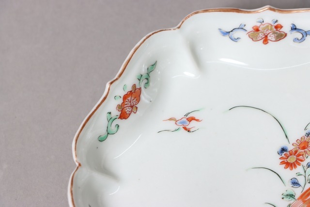 柿右衛門手 色絵 花鳥文 稜花形 小皿
