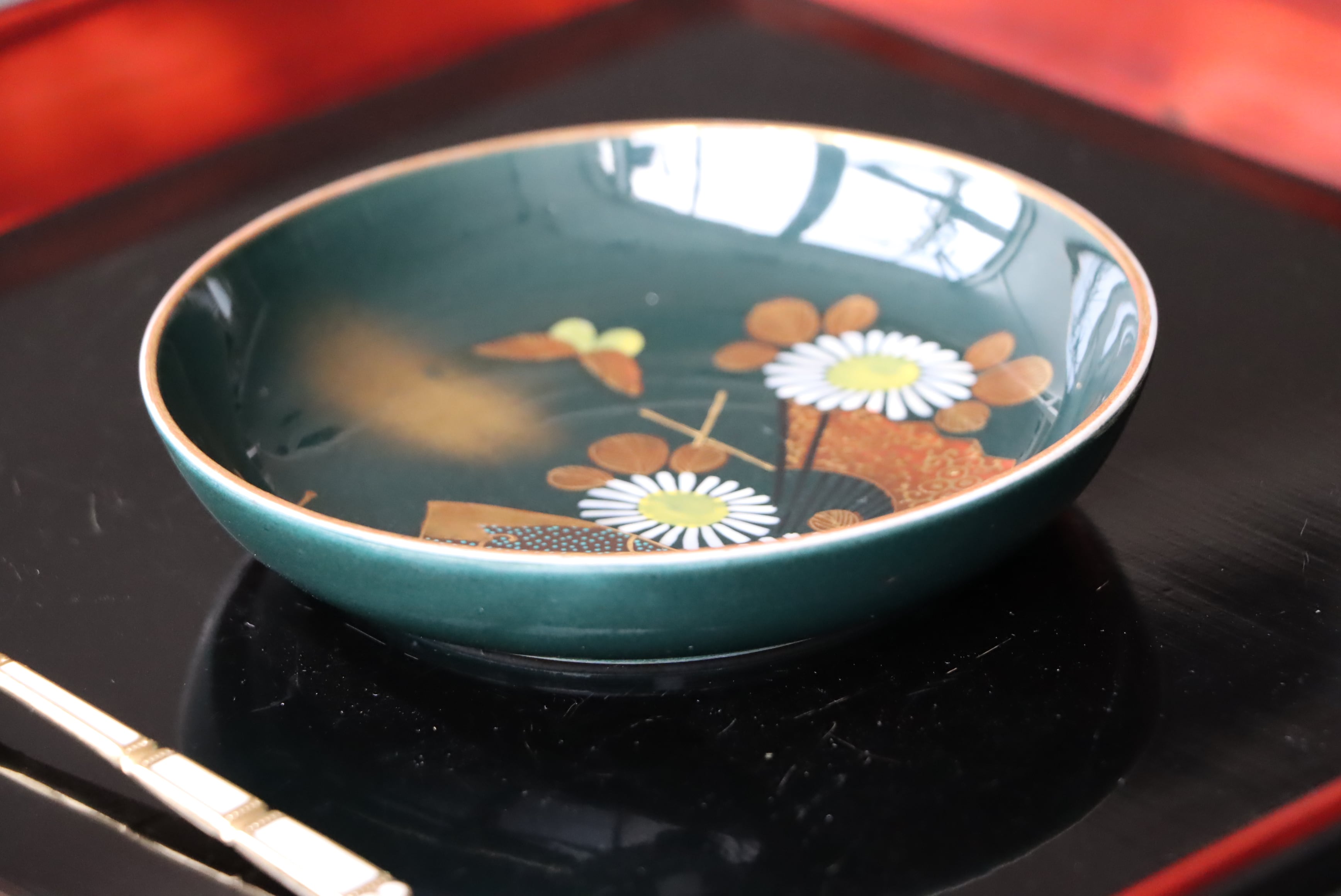菊は不老長寿、蝶は幸せを運ぶ存在とも。静かに整った美しさ。