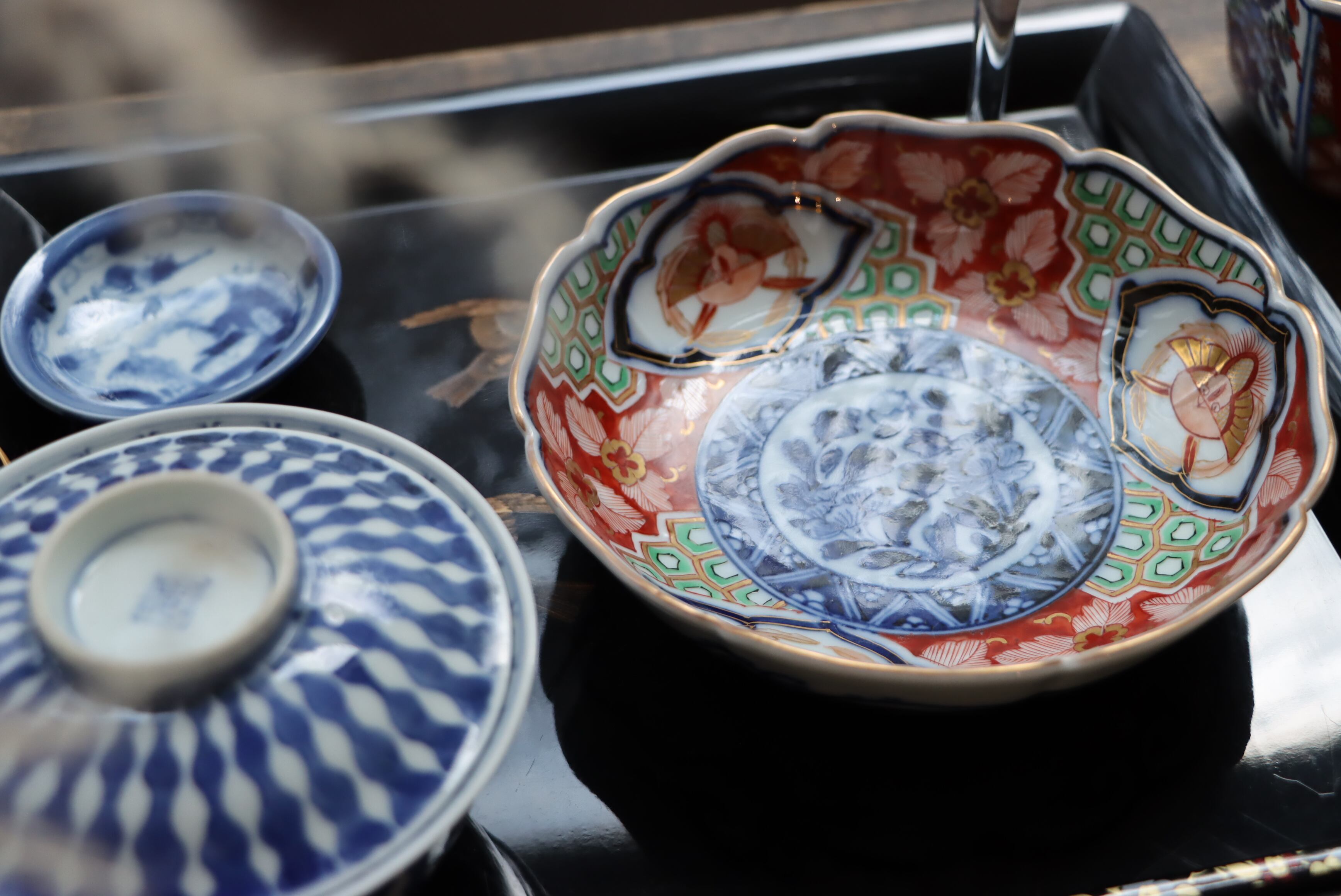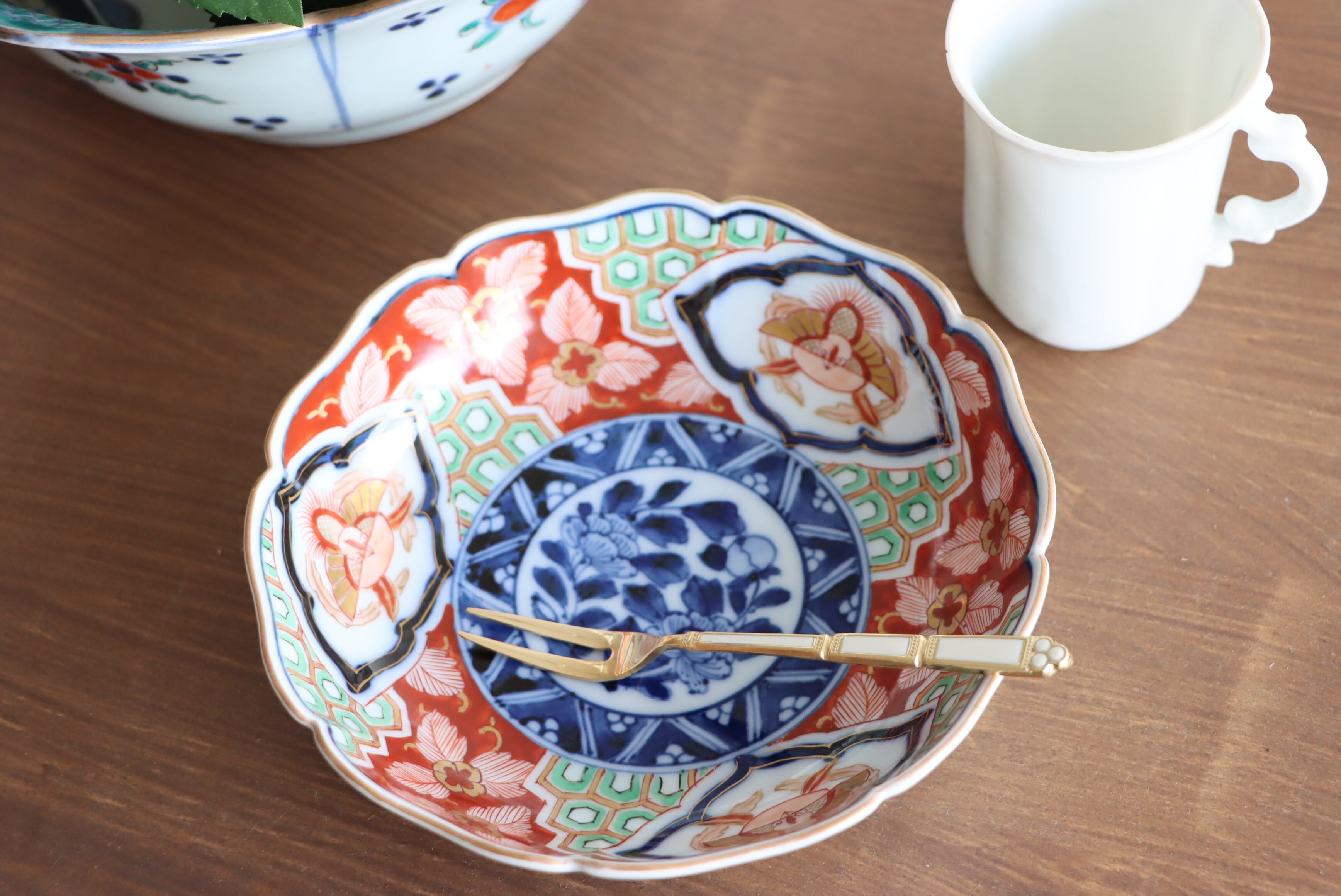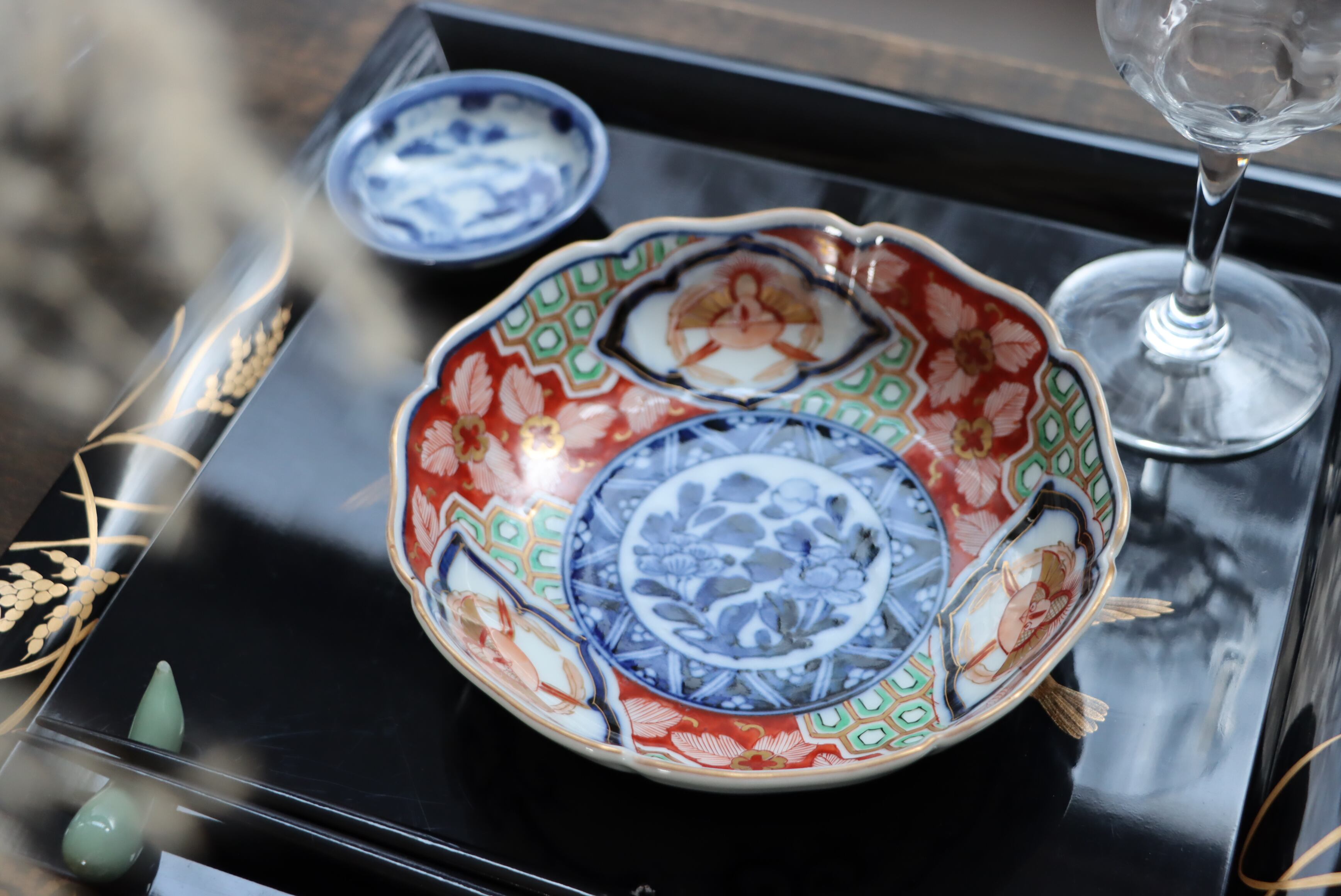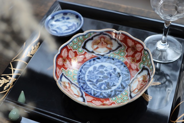 華やかな色絵と端正な染付が美しく調和した一枚。