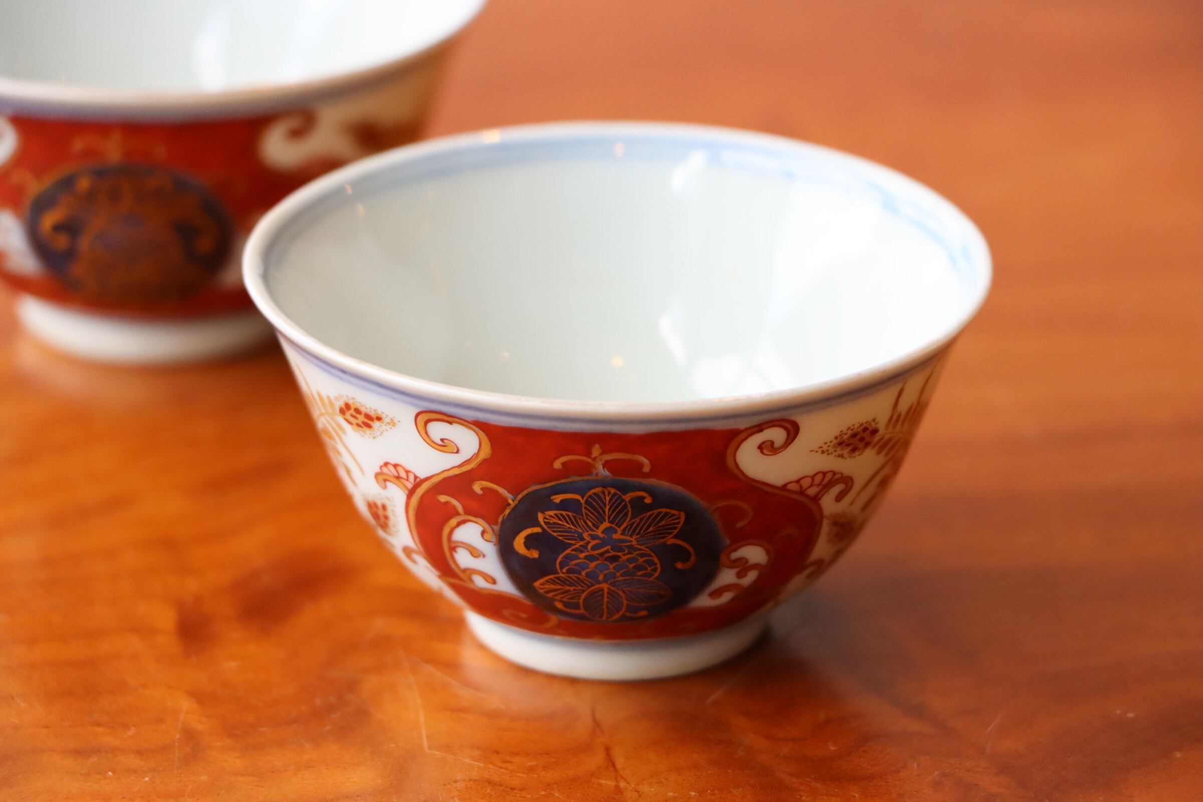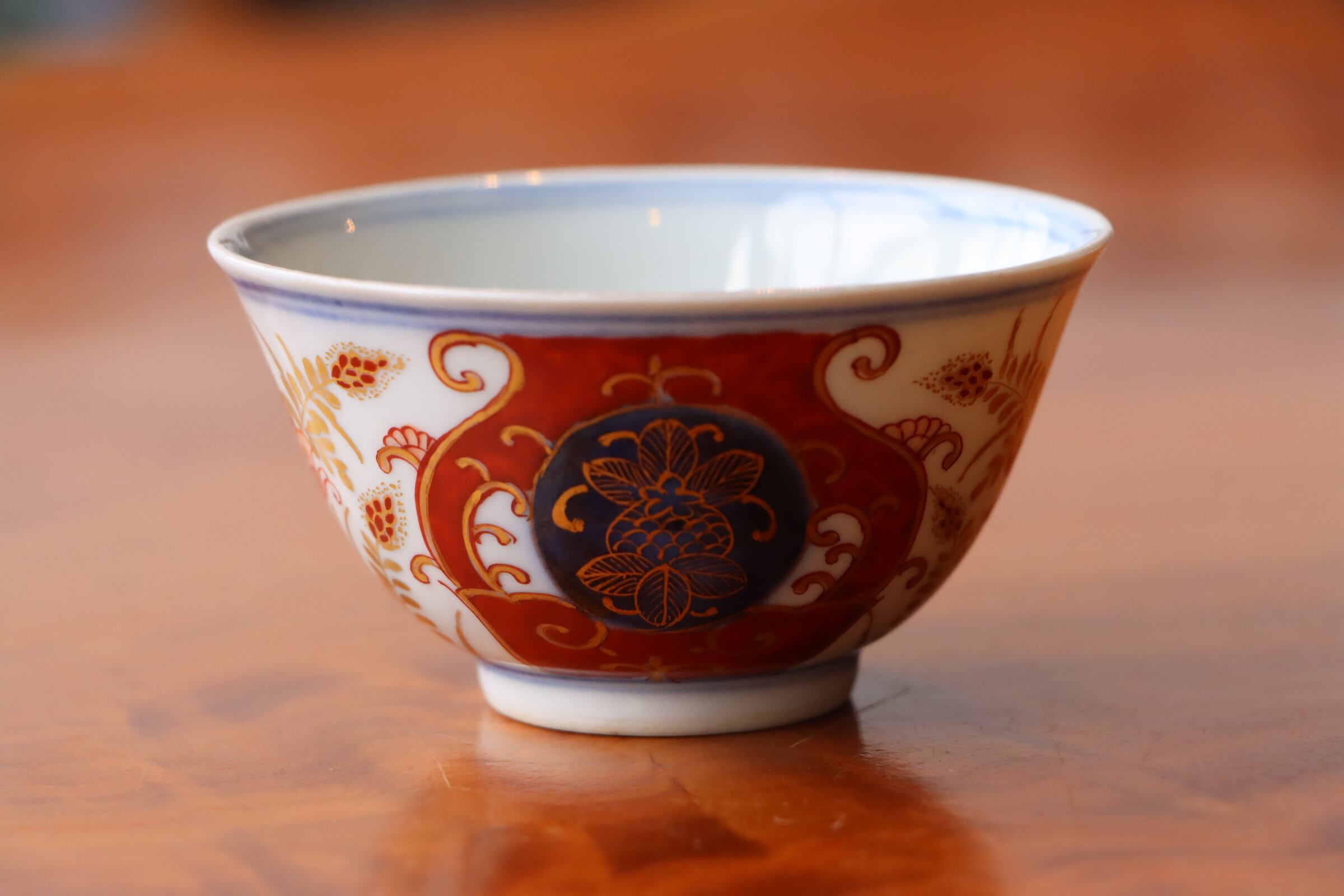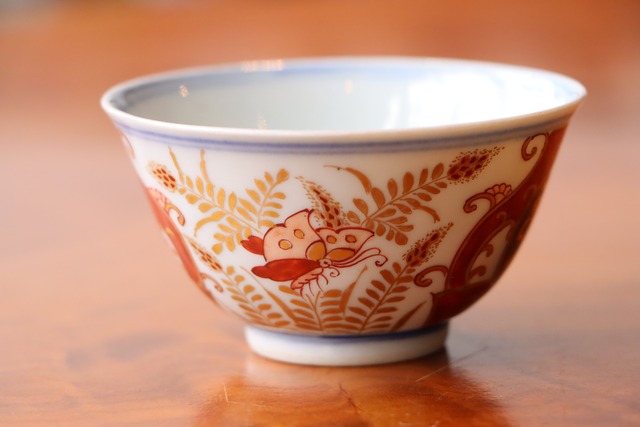 大聖寺伊万里 色絵 蝶柘榴文 湯呑