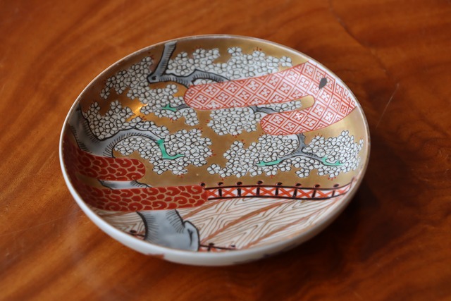 伊万里焼 金彩色絵 桜文 小皿