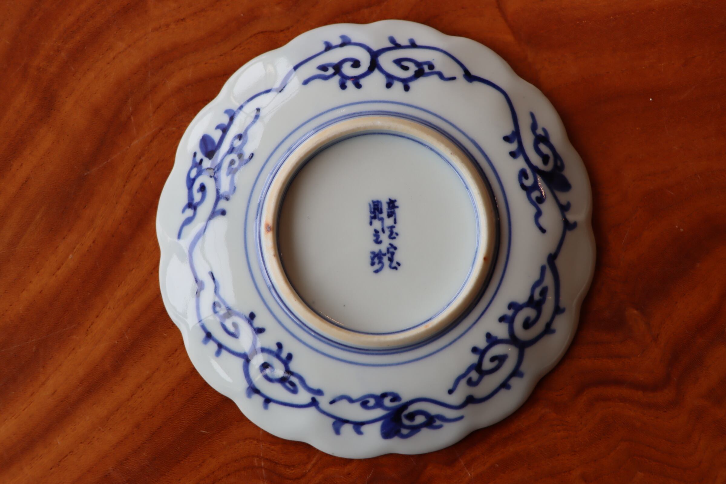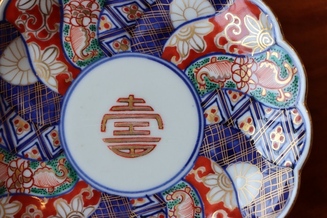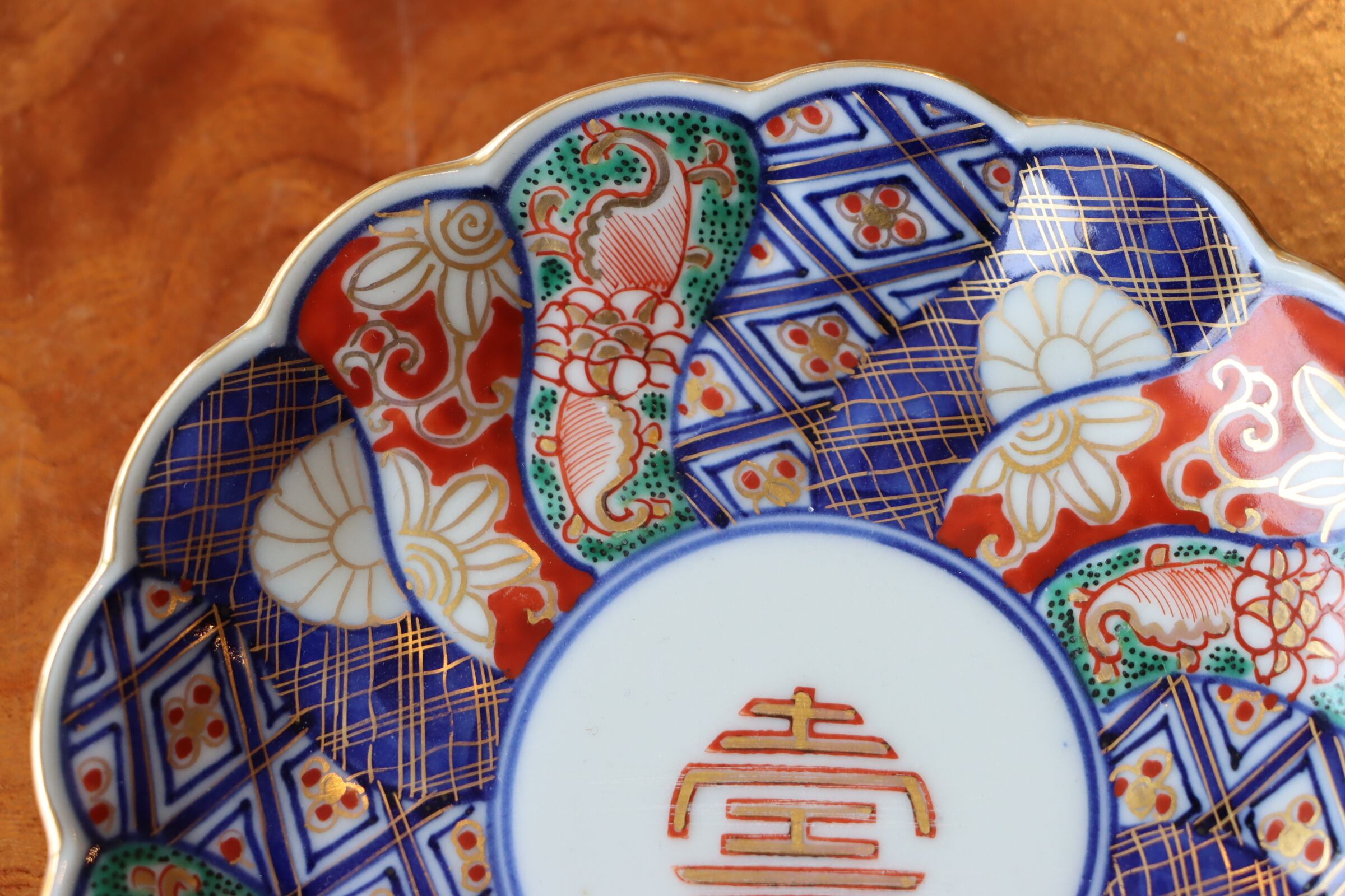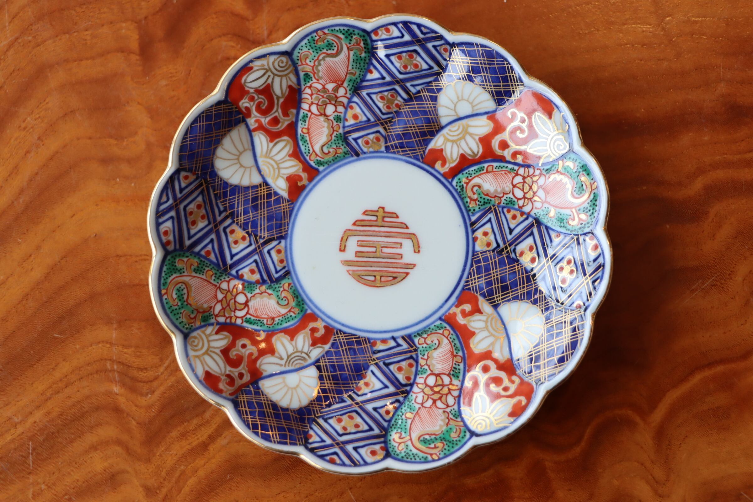 大聖寺伊万里 色絵 捻り壽文 小皿