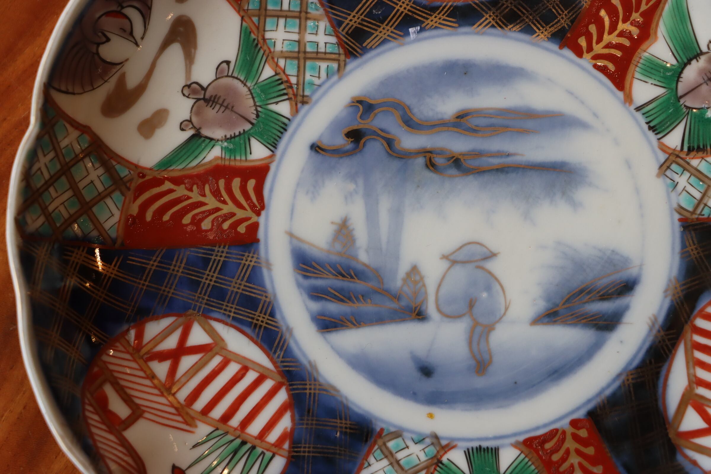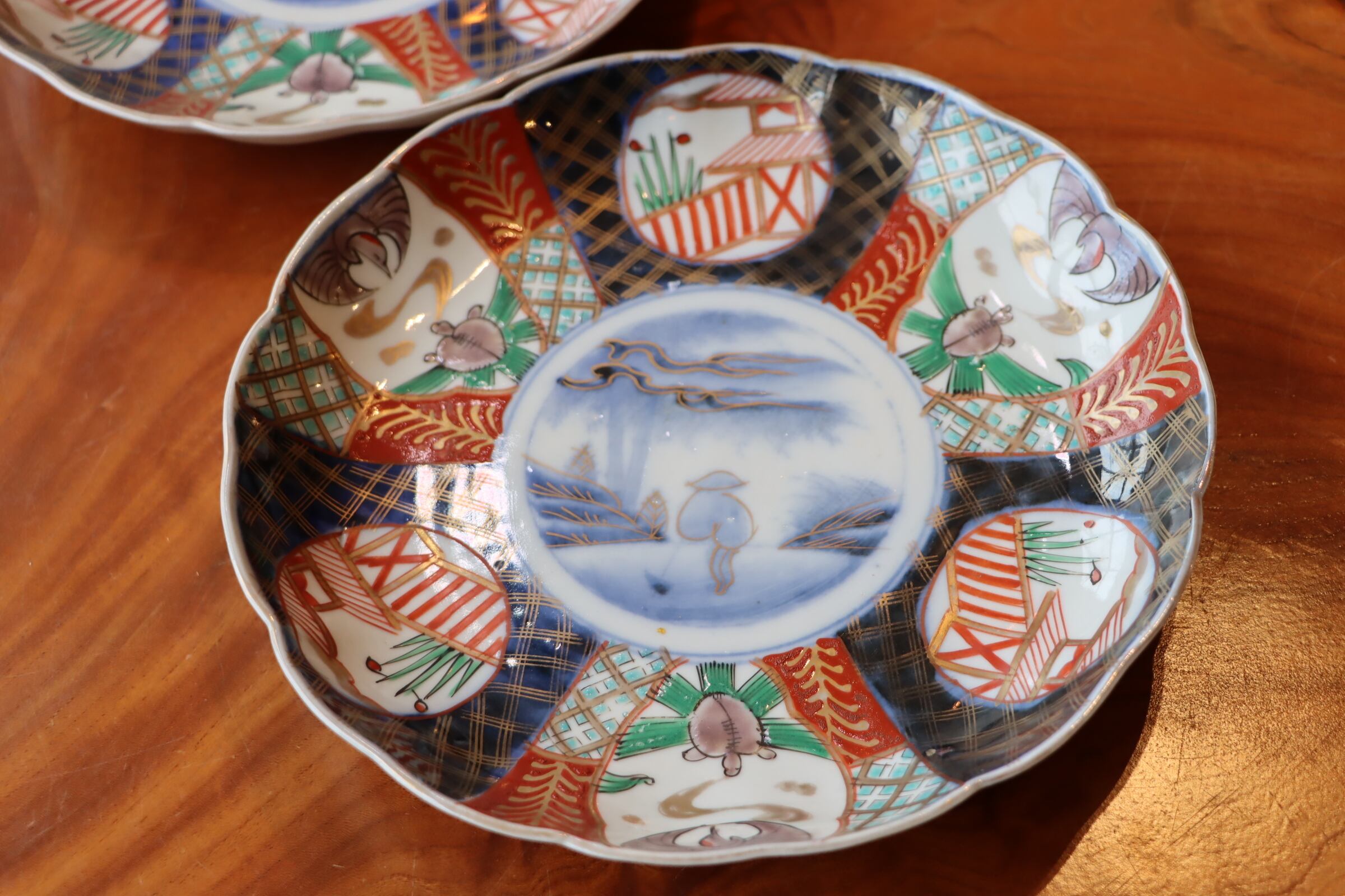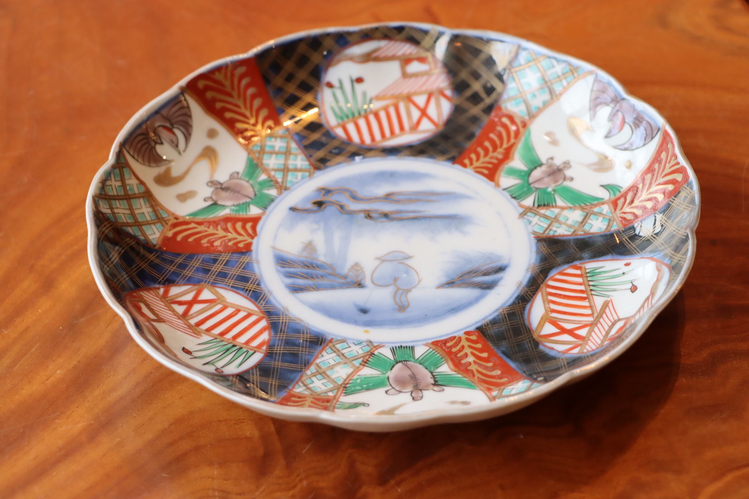 伊万里焼 色絵 人物鶴亀文 中皿 七寸