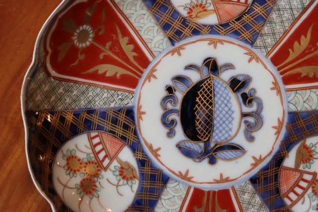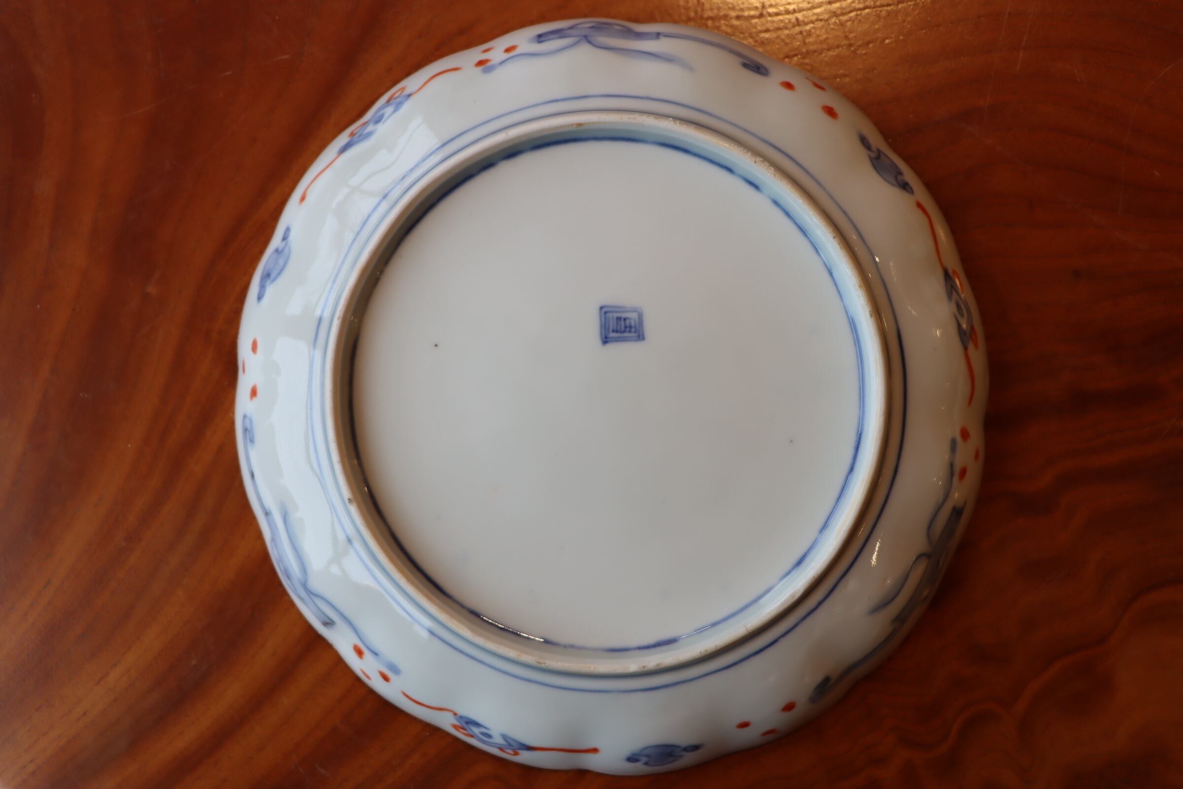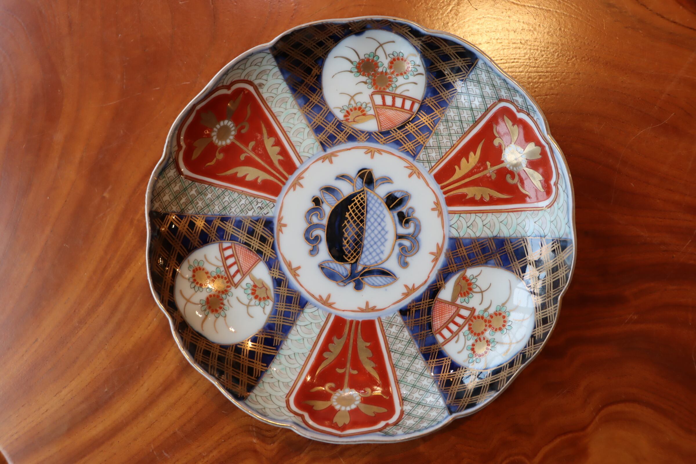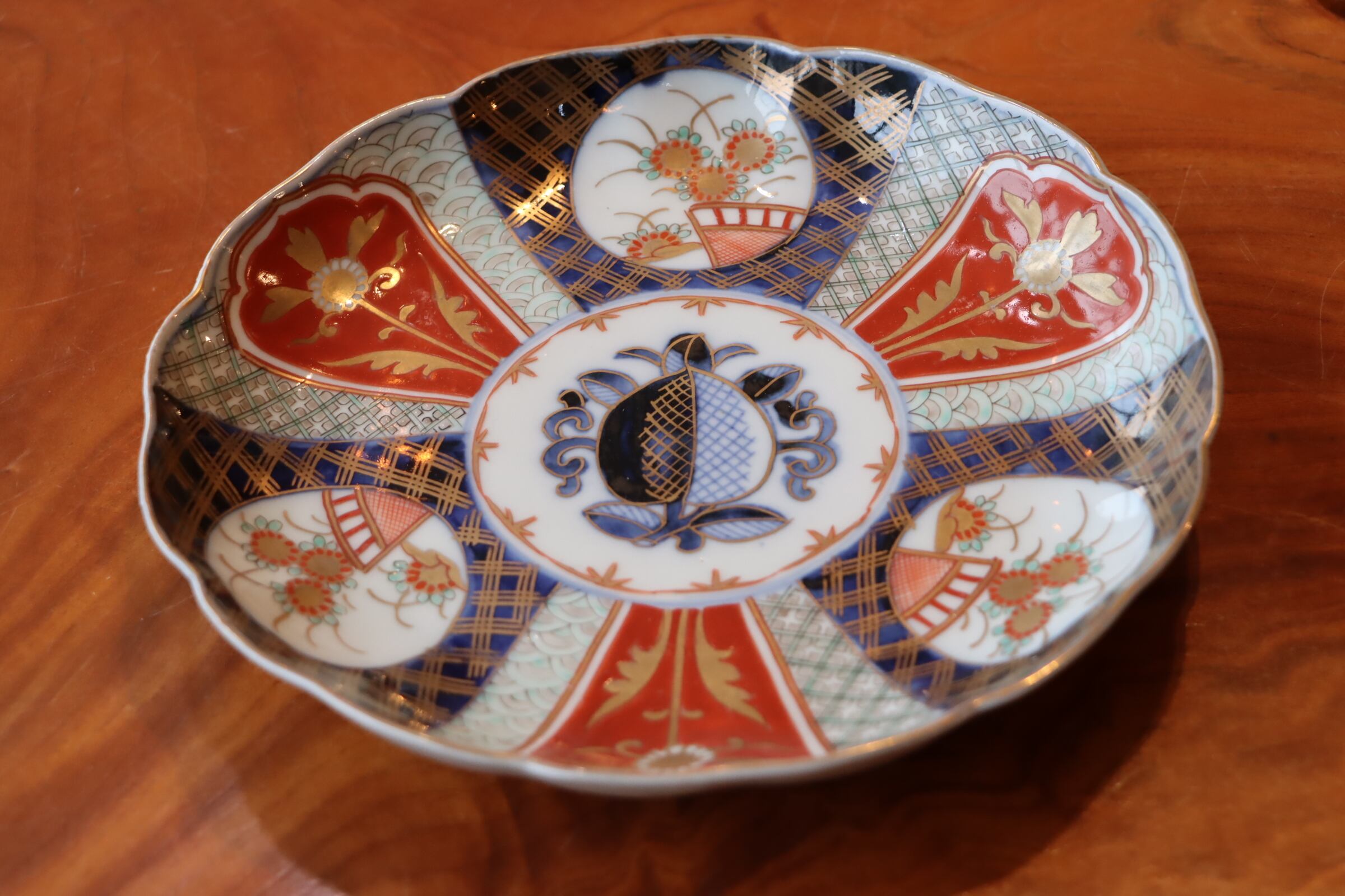 伊万里焼 色絵 花文 桃手 中皿 七寸